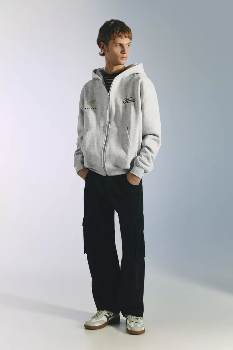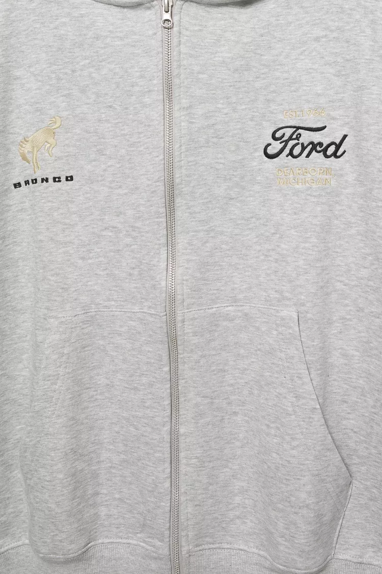 Лицензированная толстовка Ford с контрастным графическим рисунком, передним карманом-кенгуру, застежкой на молнию и изготовлена из смесовой хлопковой ткани.