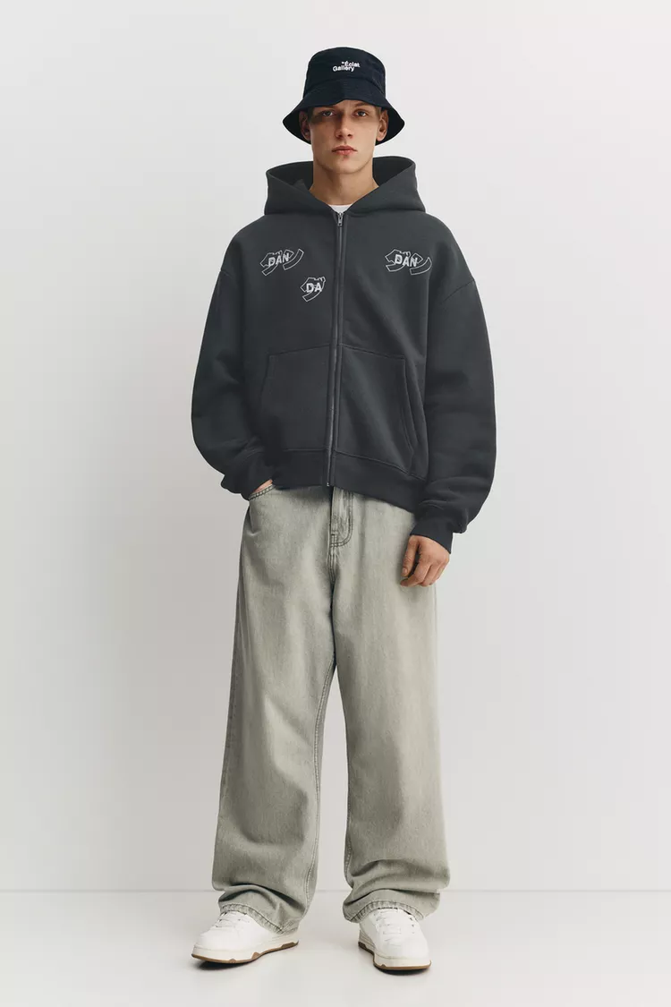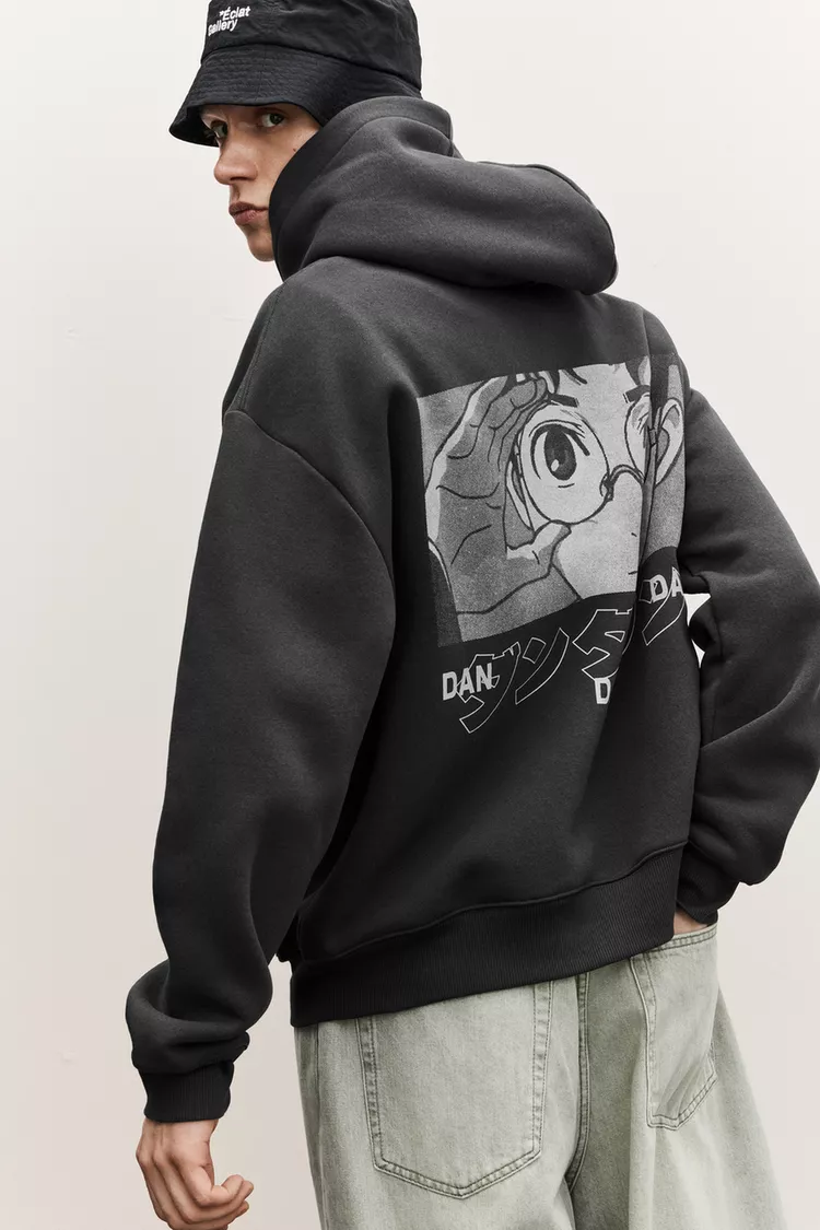 PULL&BEAR Толстовка с капюшоном Dan Da Dan, темно-серый