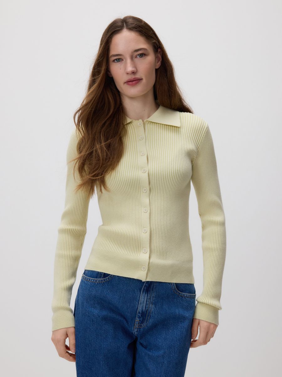 RESERVED Кардиган с воротником, свето-зеленый
