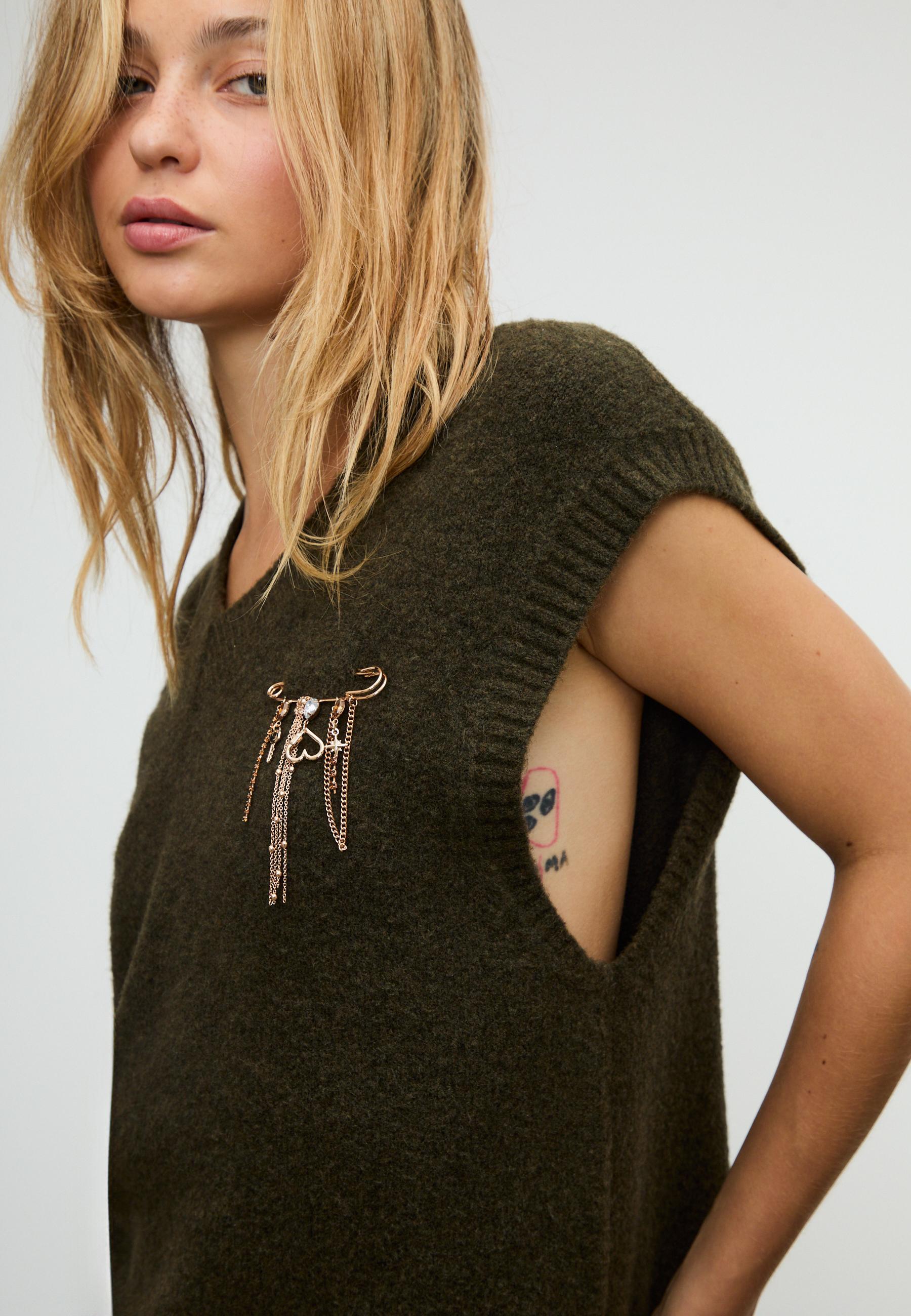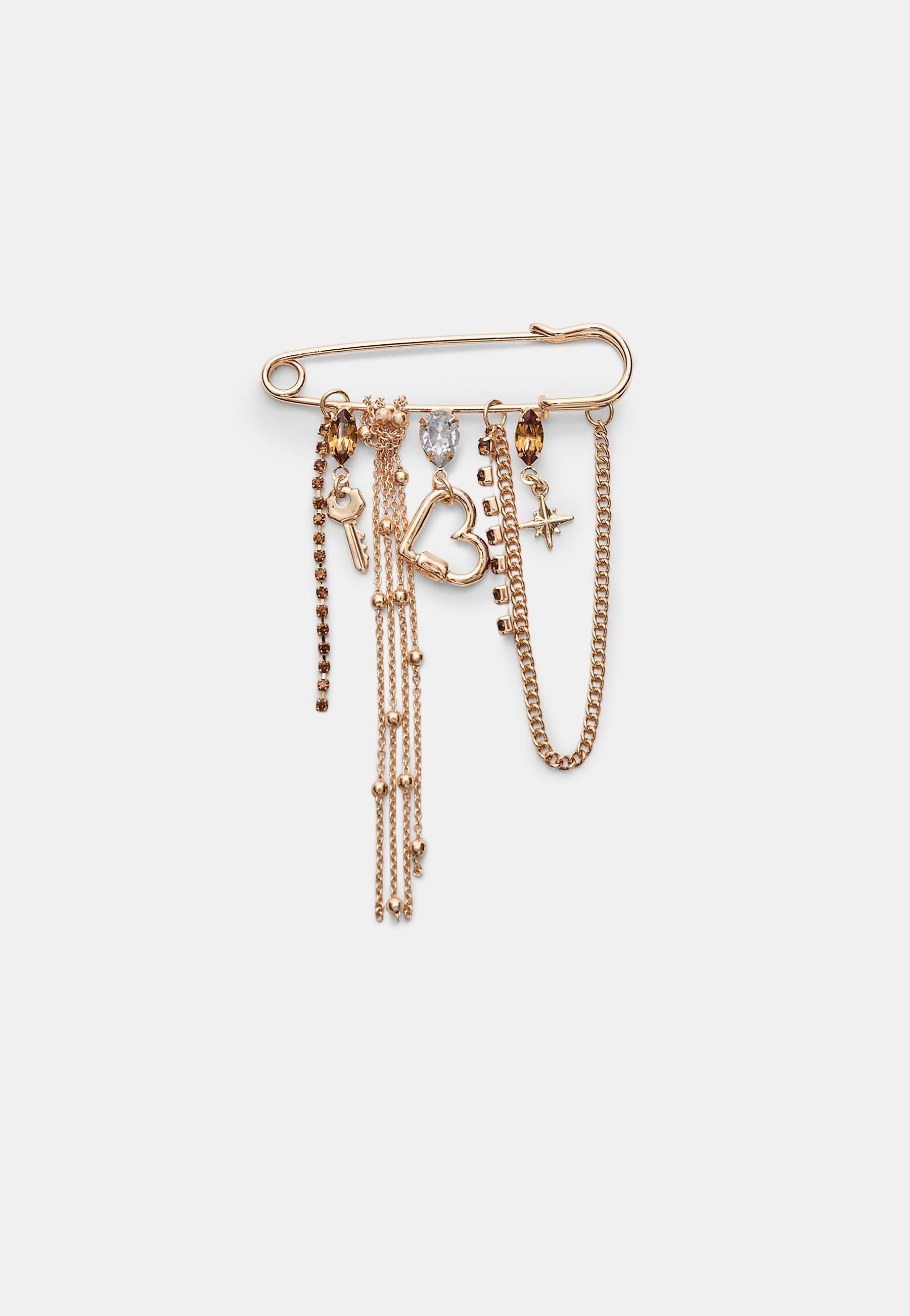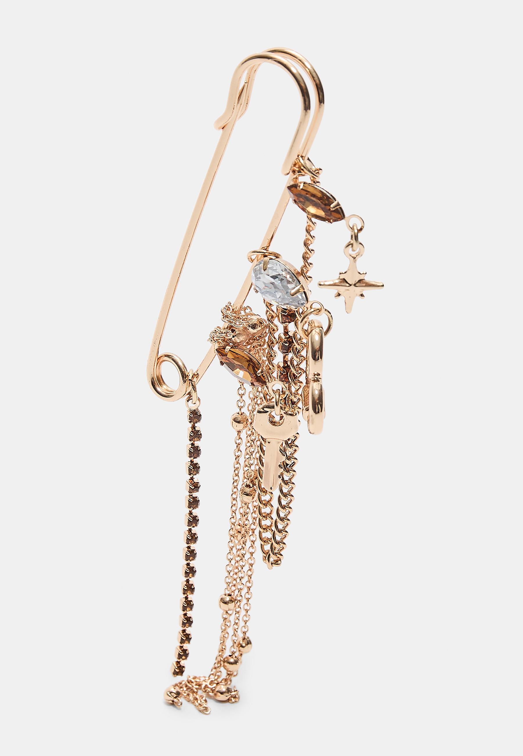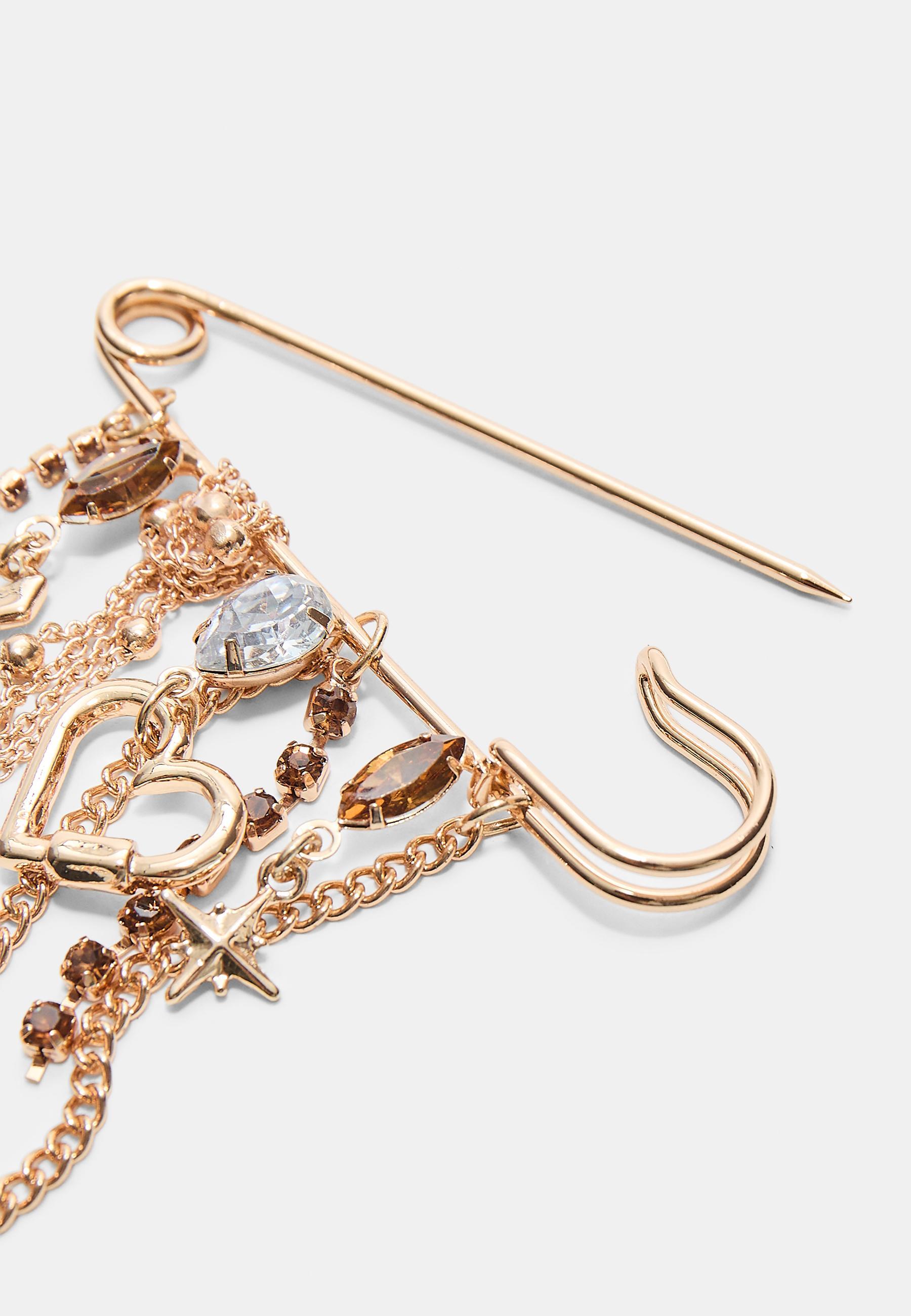 Stradivarius Брошь-цепочка со стразами, золотой