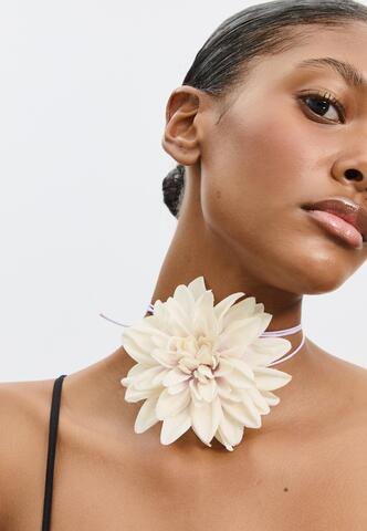 STRADIVARIUS Чокер тканевый с цветочком, белый