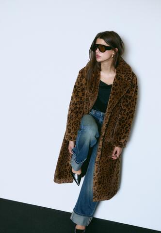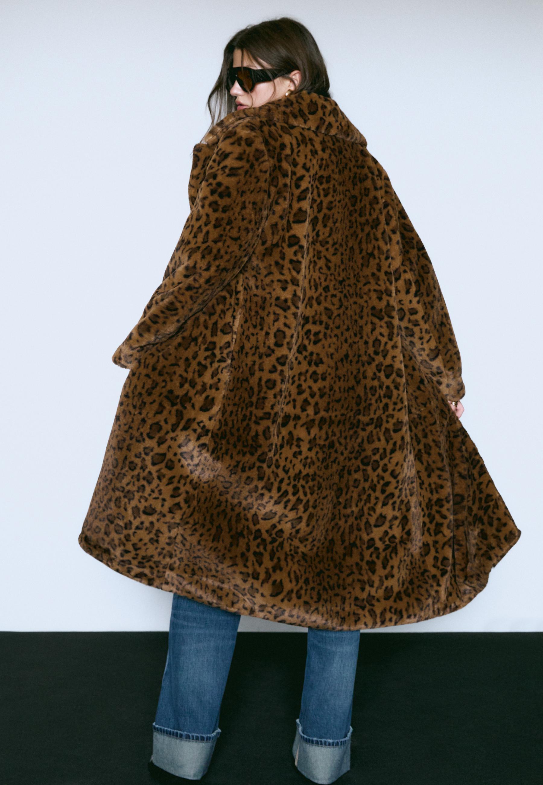 STRADIVARIUS Длинная шуба из искусственного меха с анималистическим принтом, бежевый