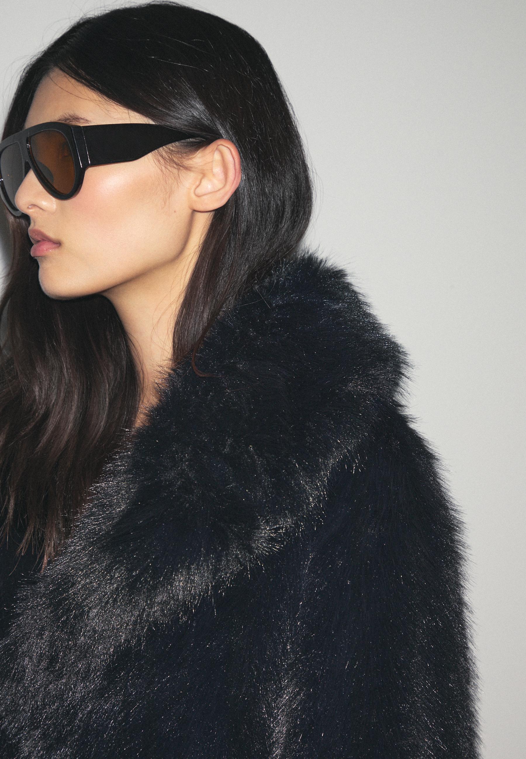 STRADIVARIUS Искусственная шуба стандартного кроя, черный