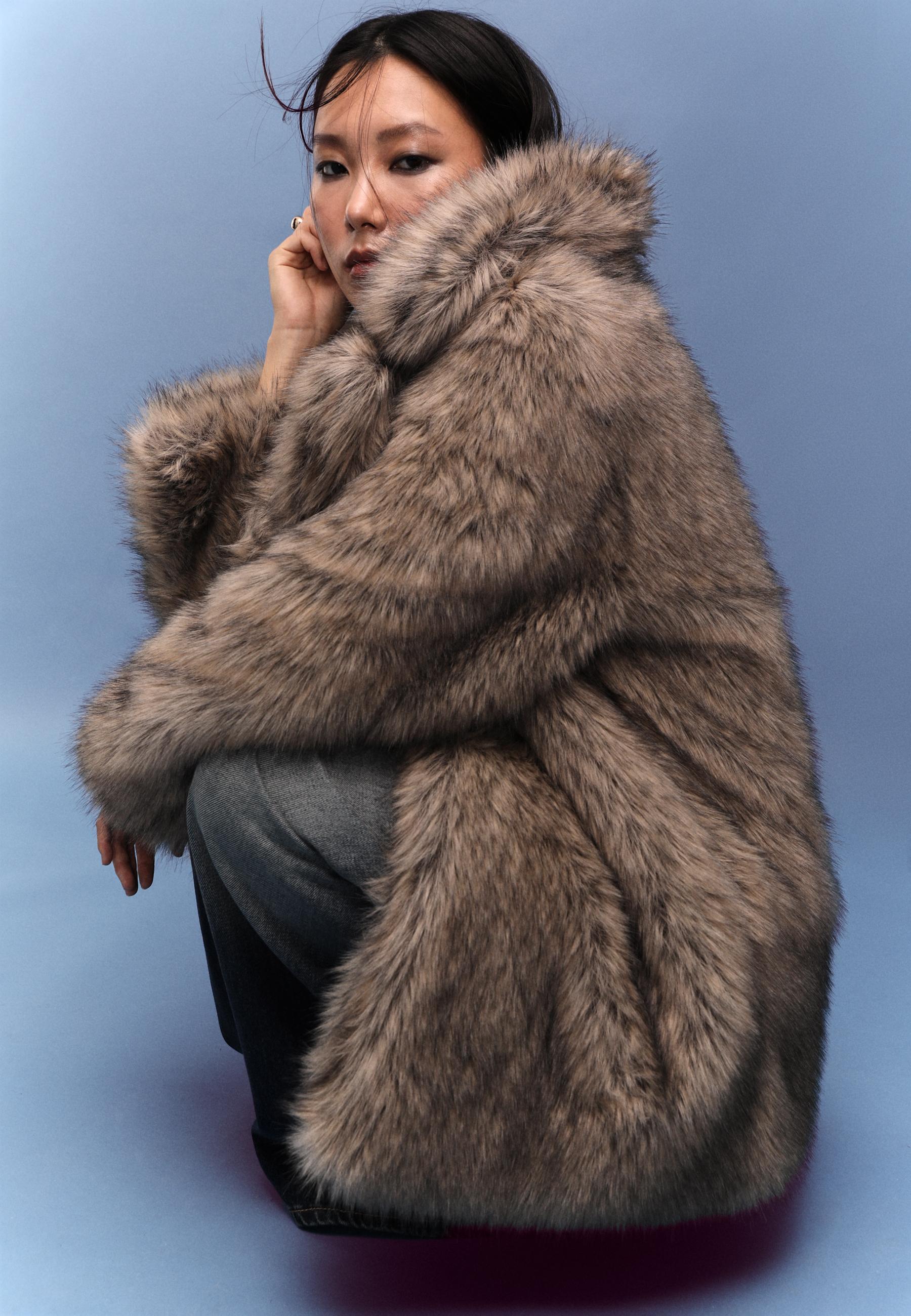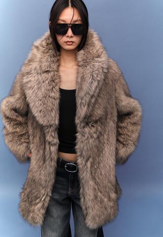 STRADIVARIUS Искусственная шуба стандартного кроя, каменный