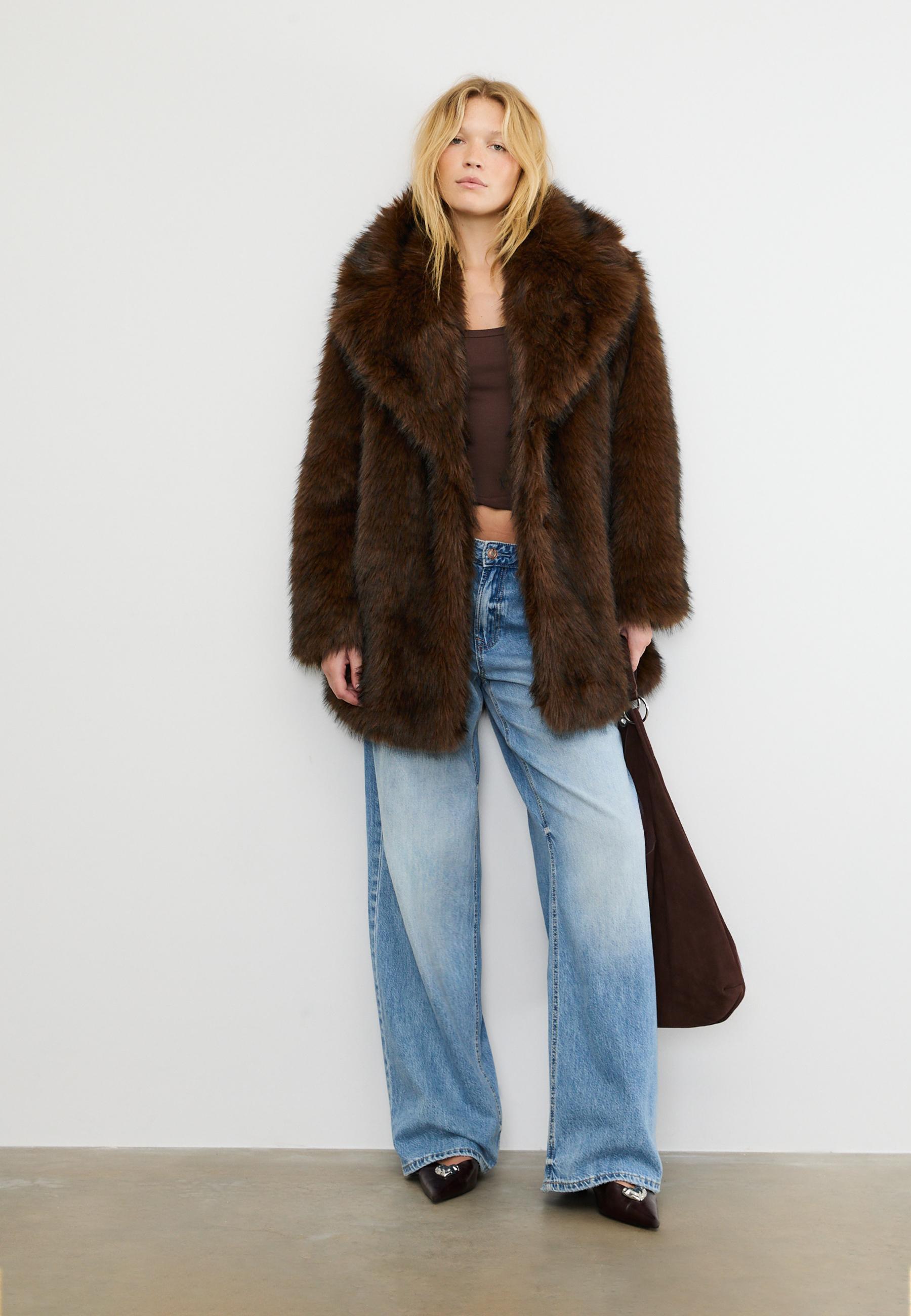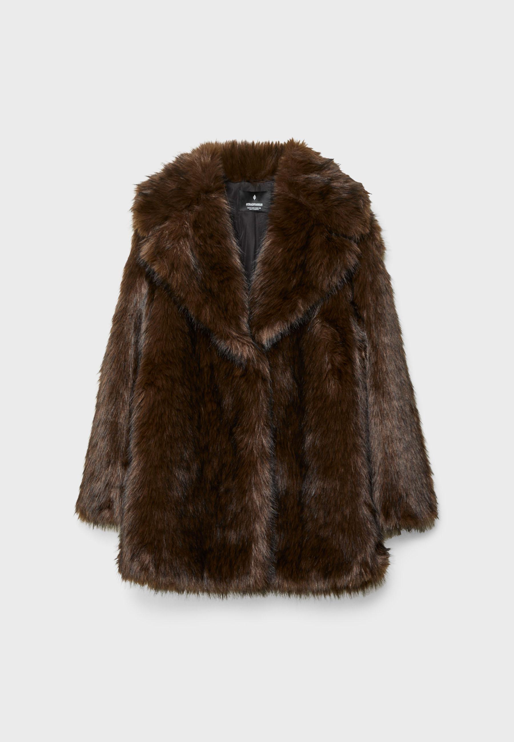 STRADIVARIUS Искусственная шуба стандартного кроя, коричневый