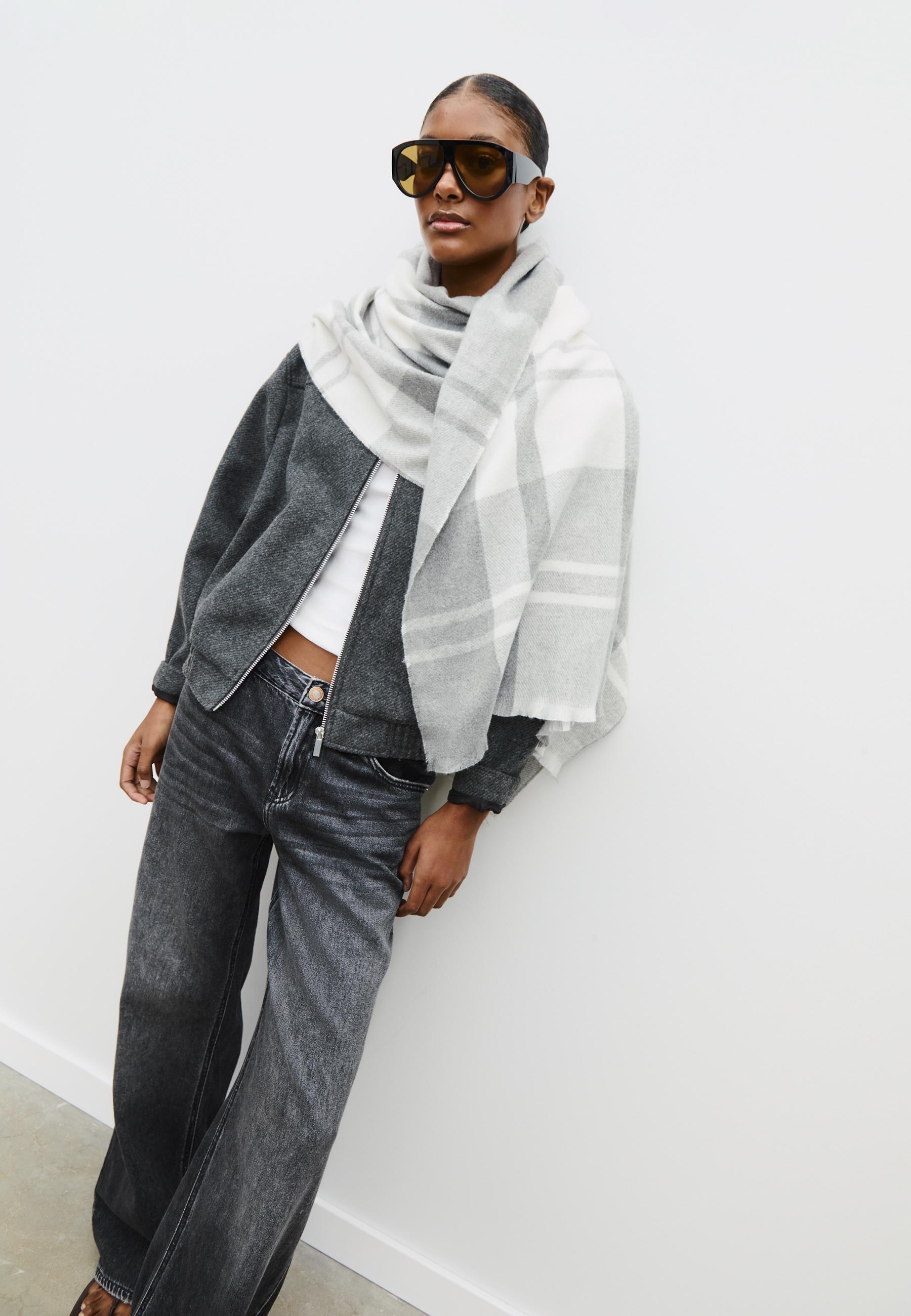 STRADIVARIUS Клетчатый шарф, серый меланж