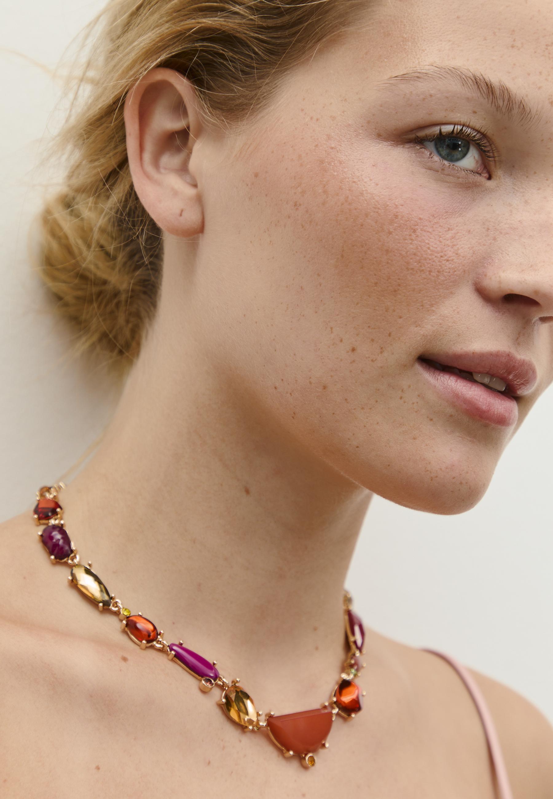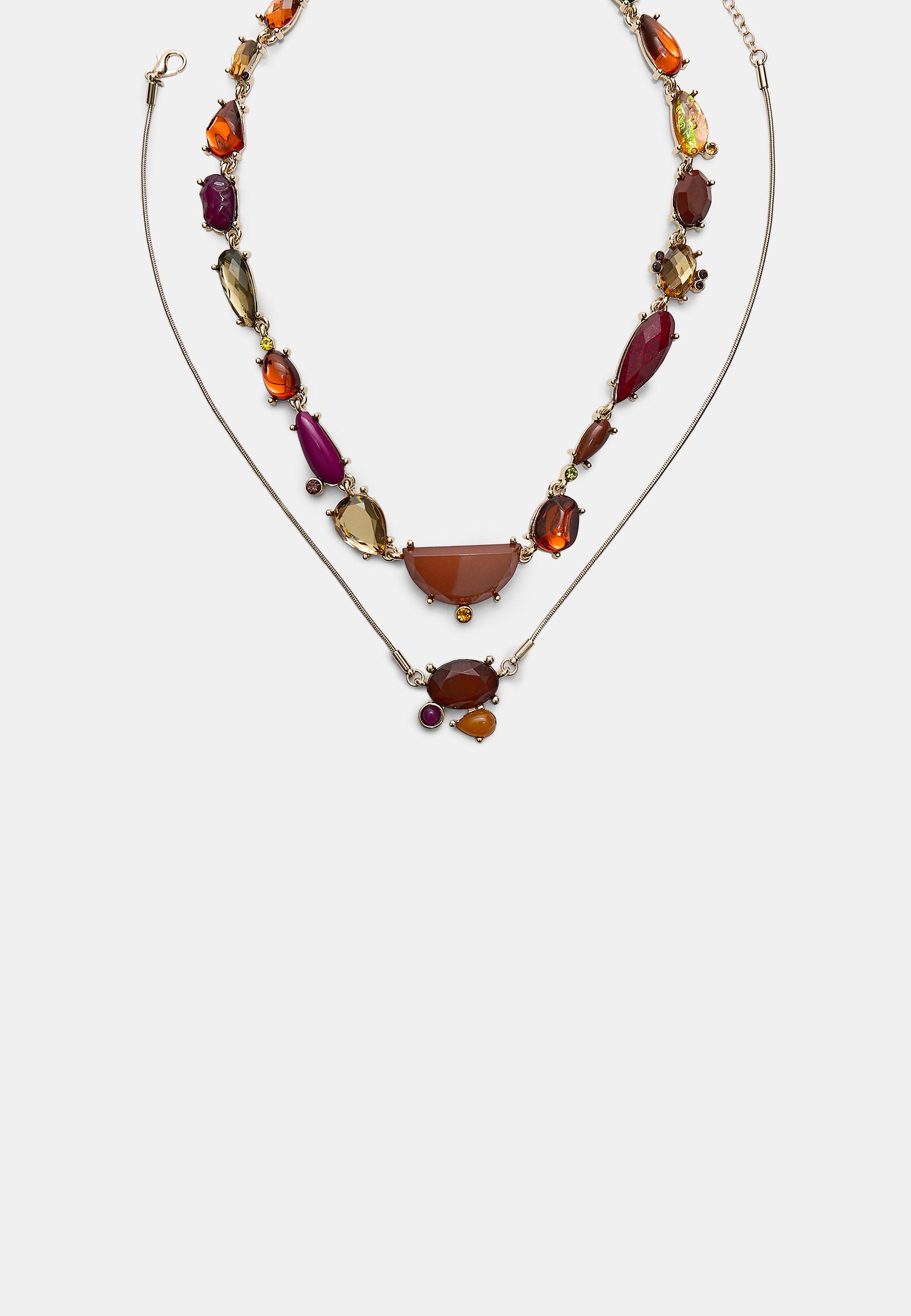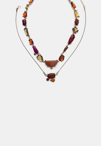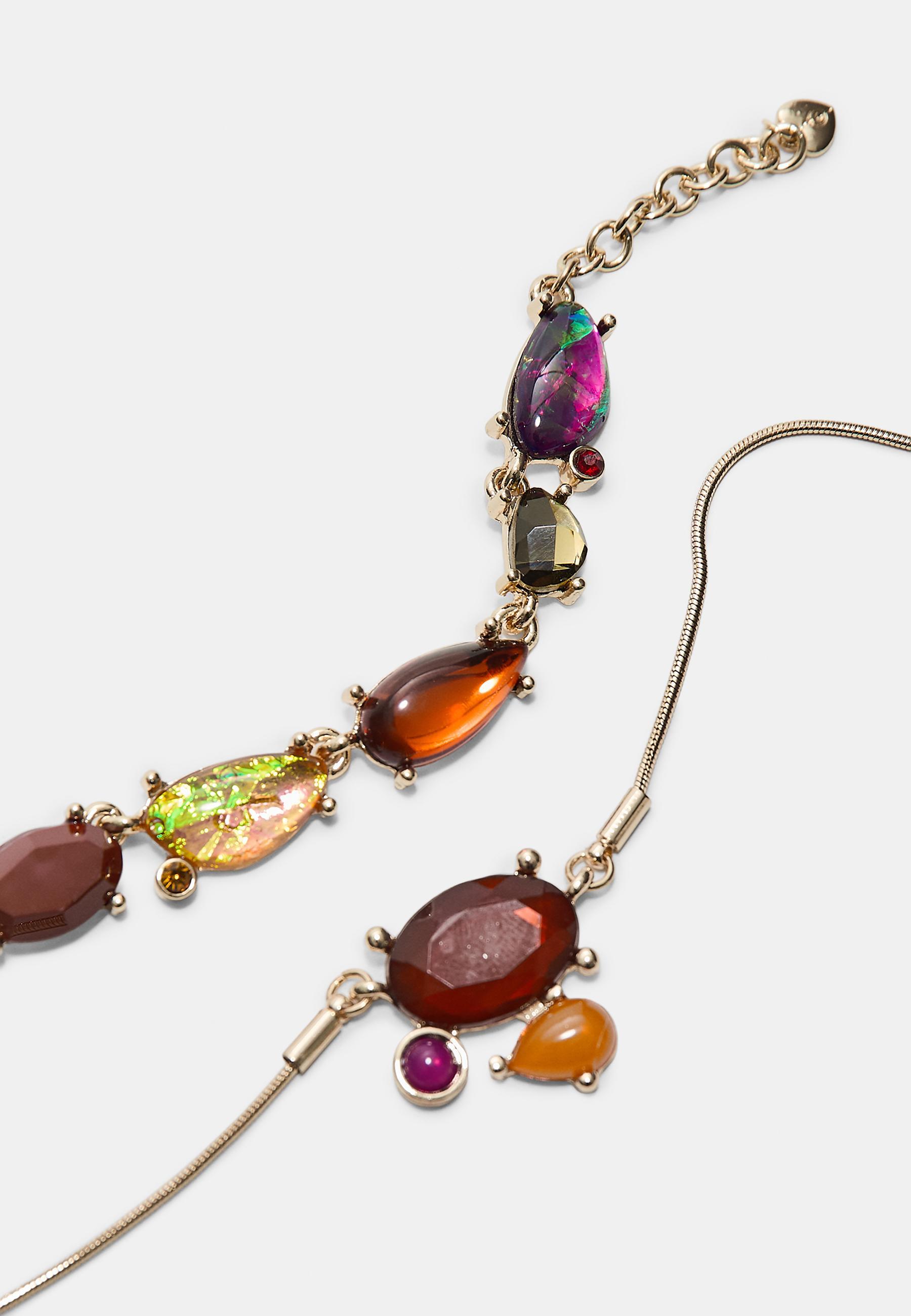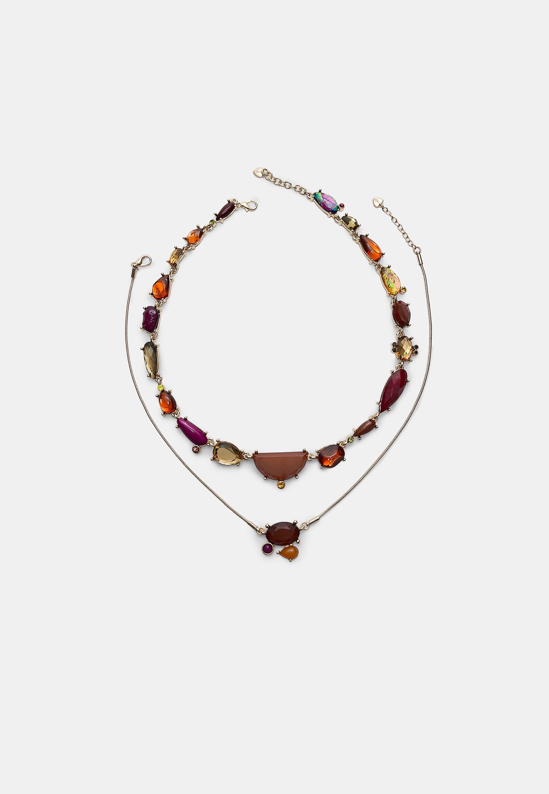 STRADIVARIUS Комплект из 2 многорядных ожерелий со стразами, золотой