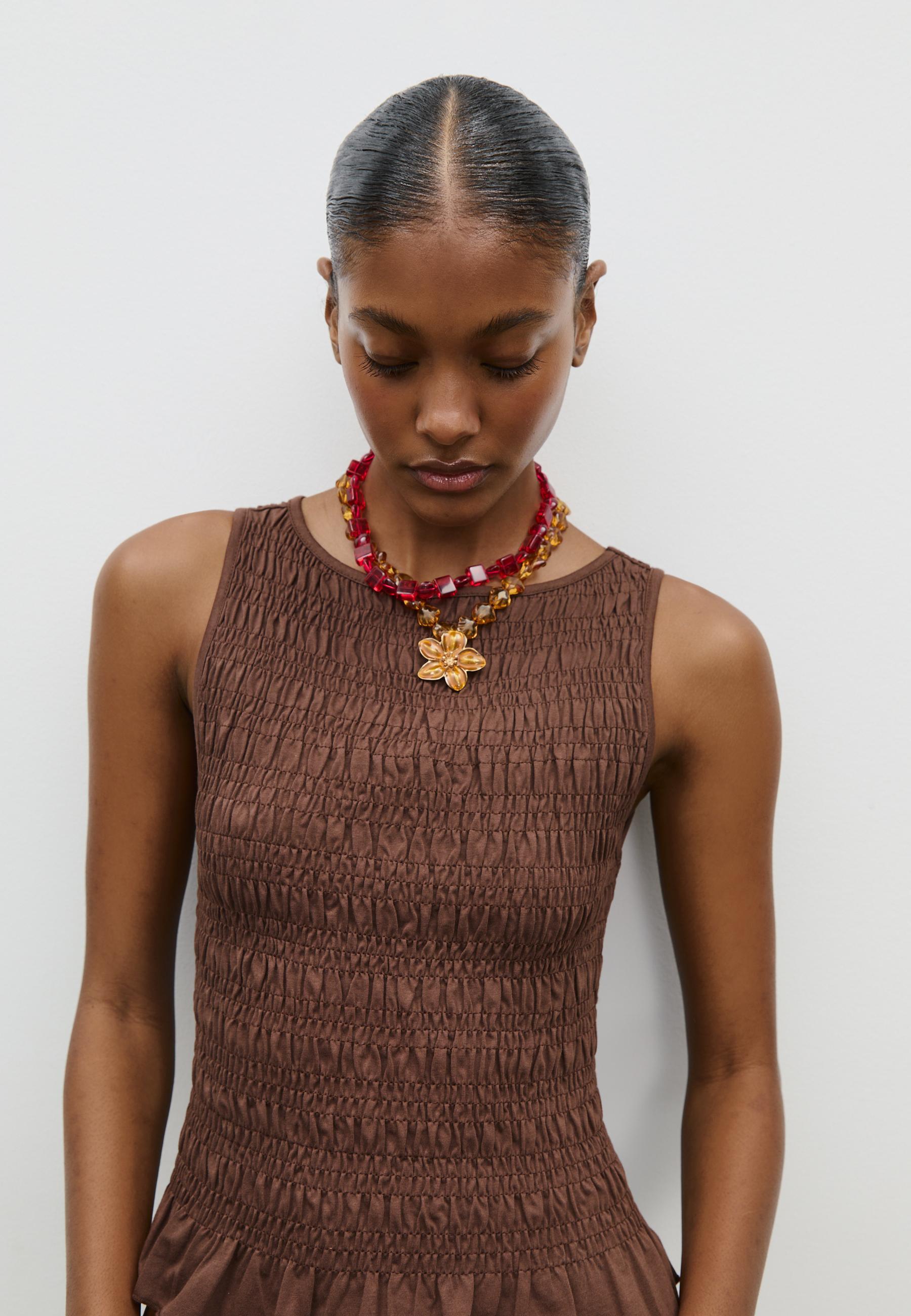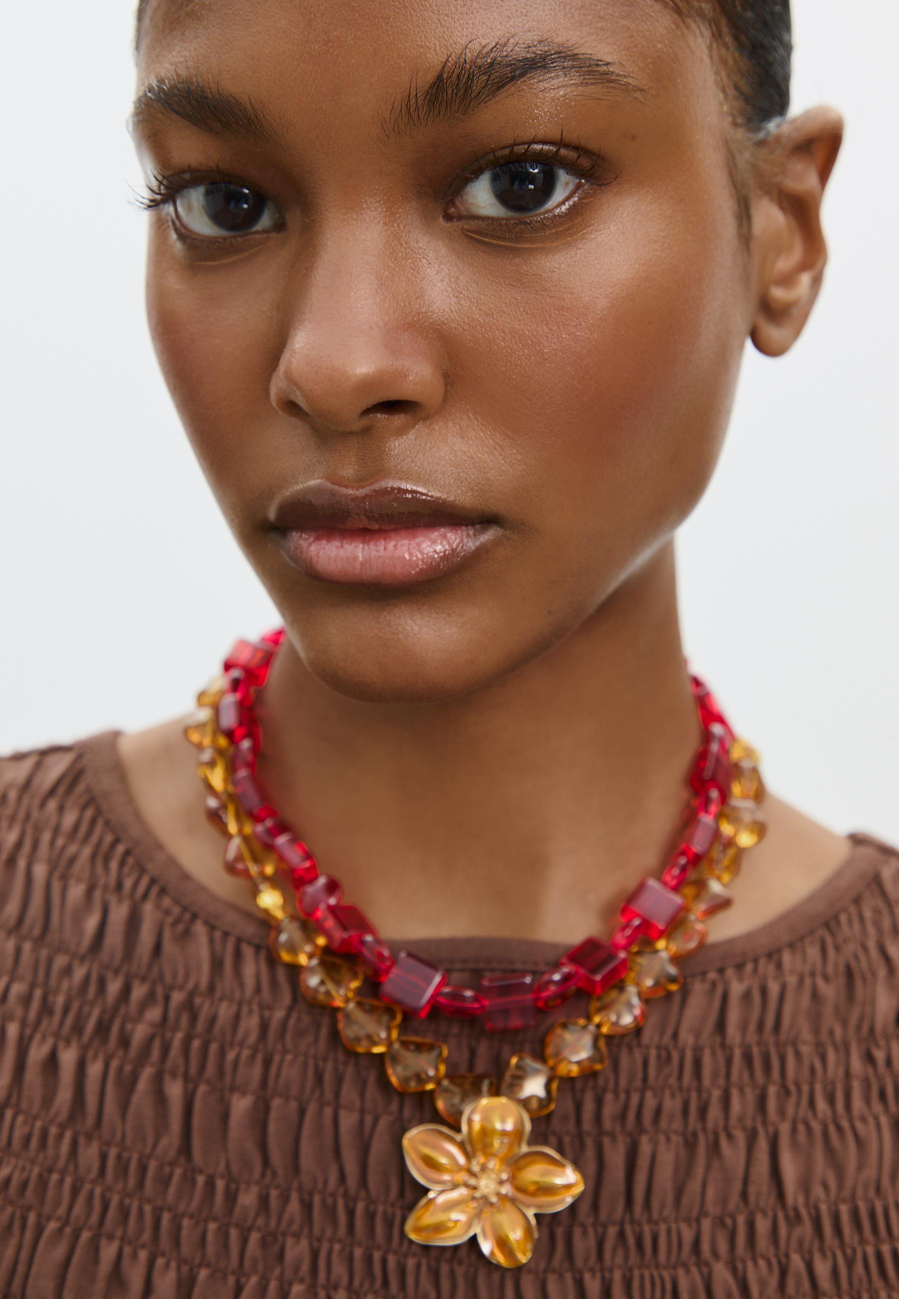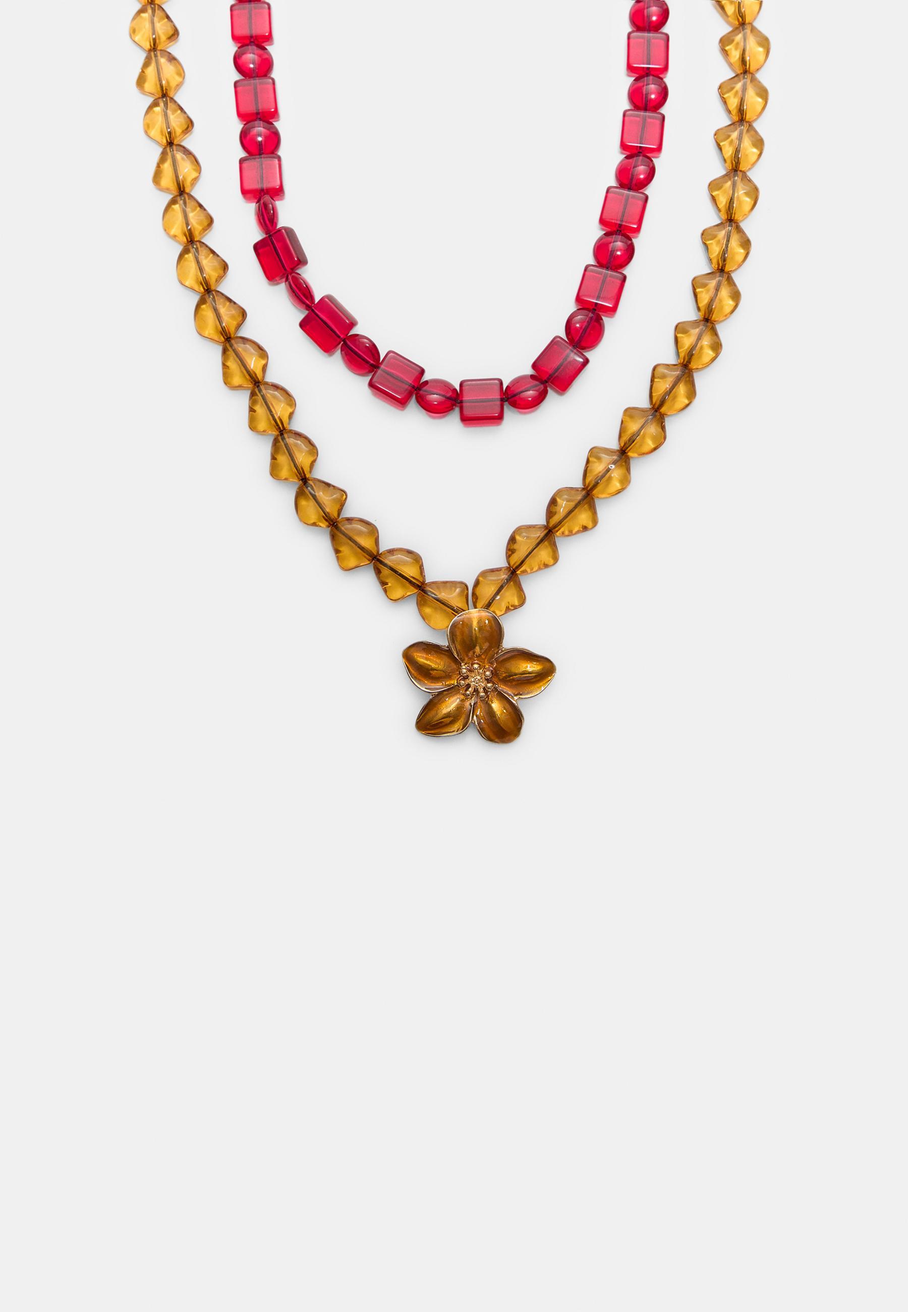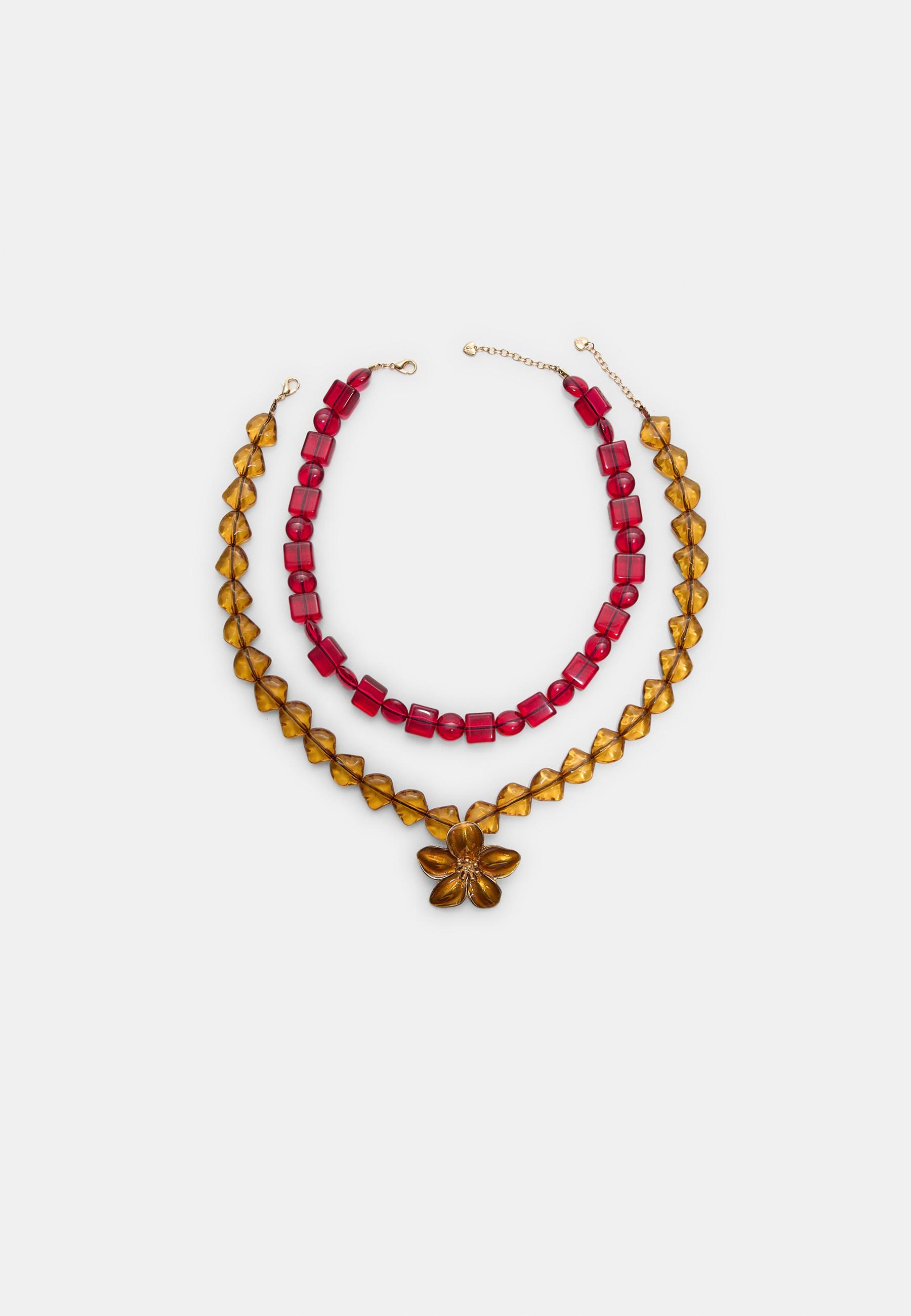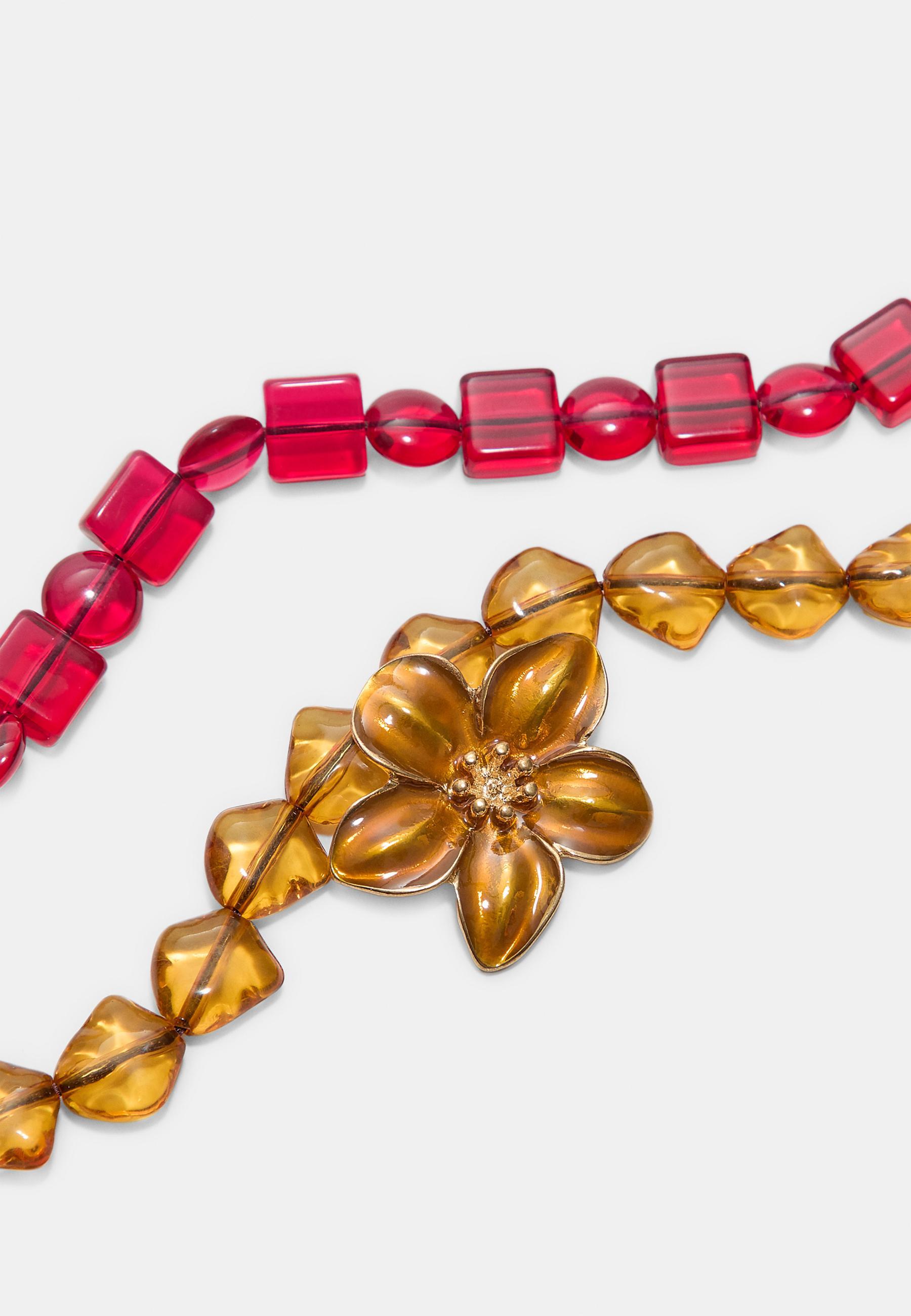 STRADIVARIUS Комплект из 2 ожерелий из бусин и цветов, горчичный