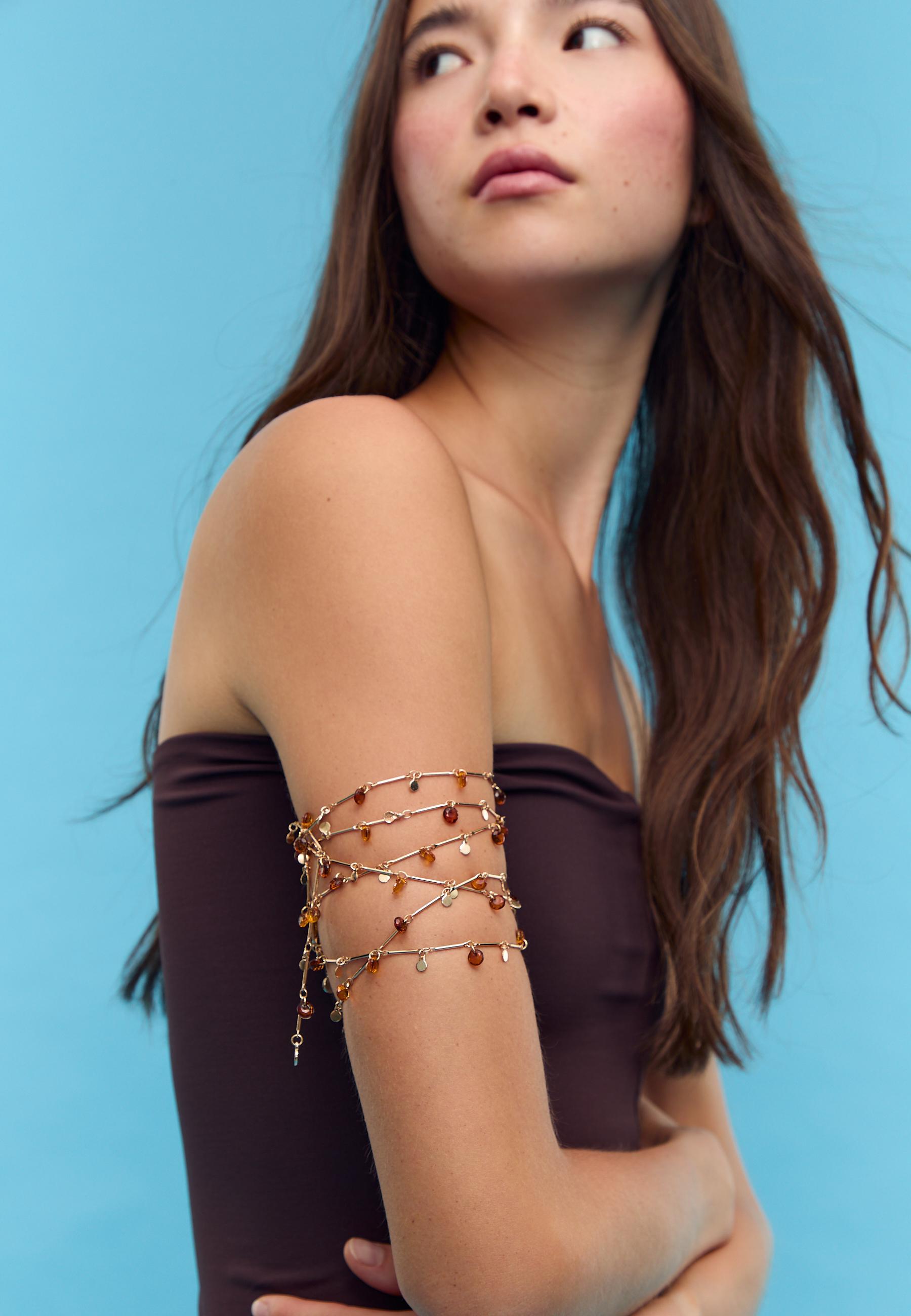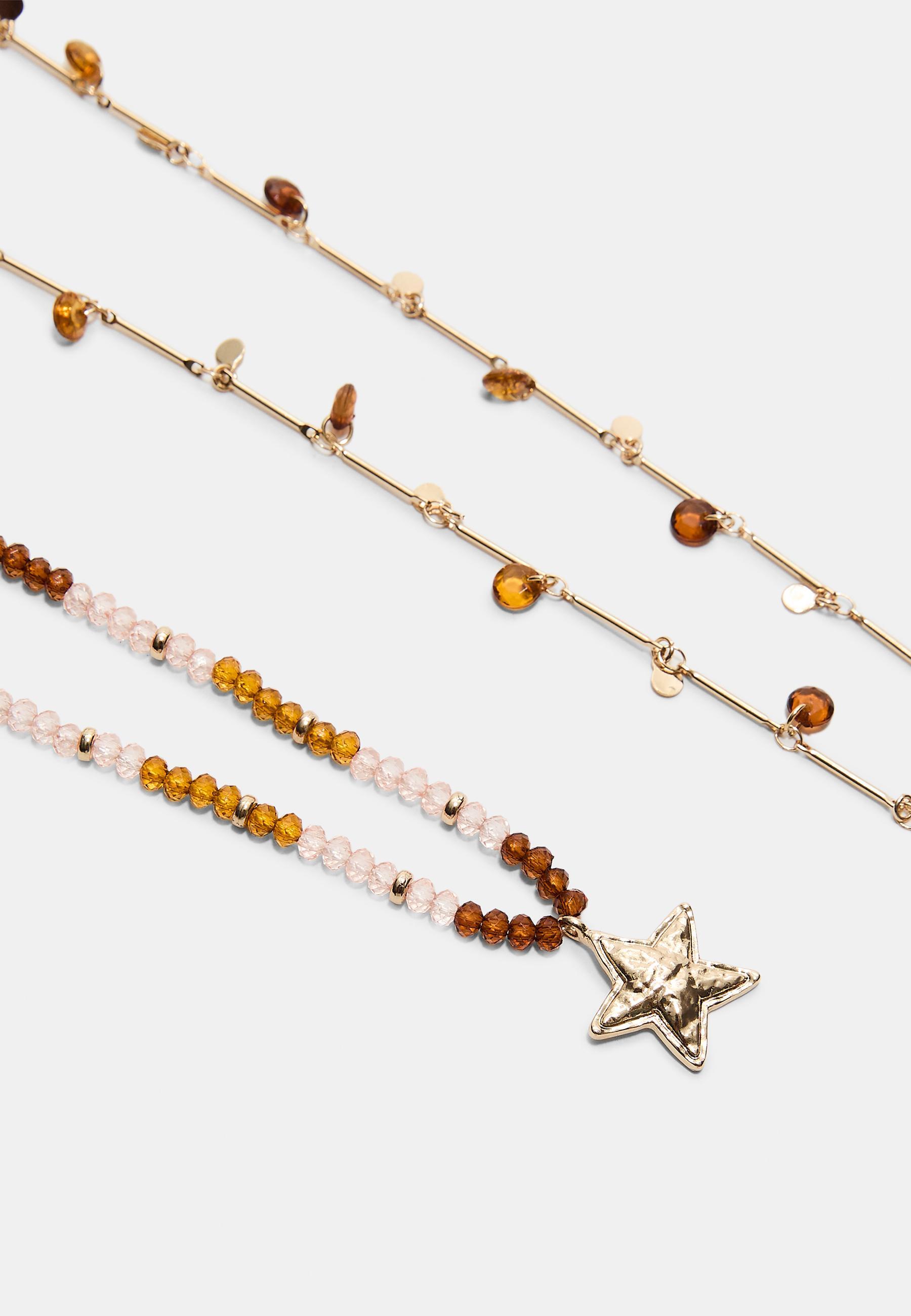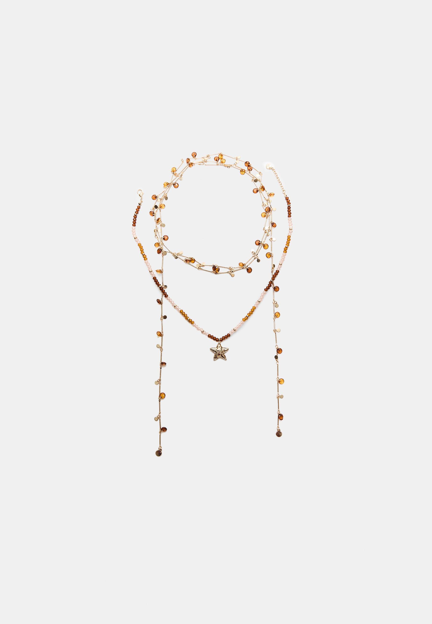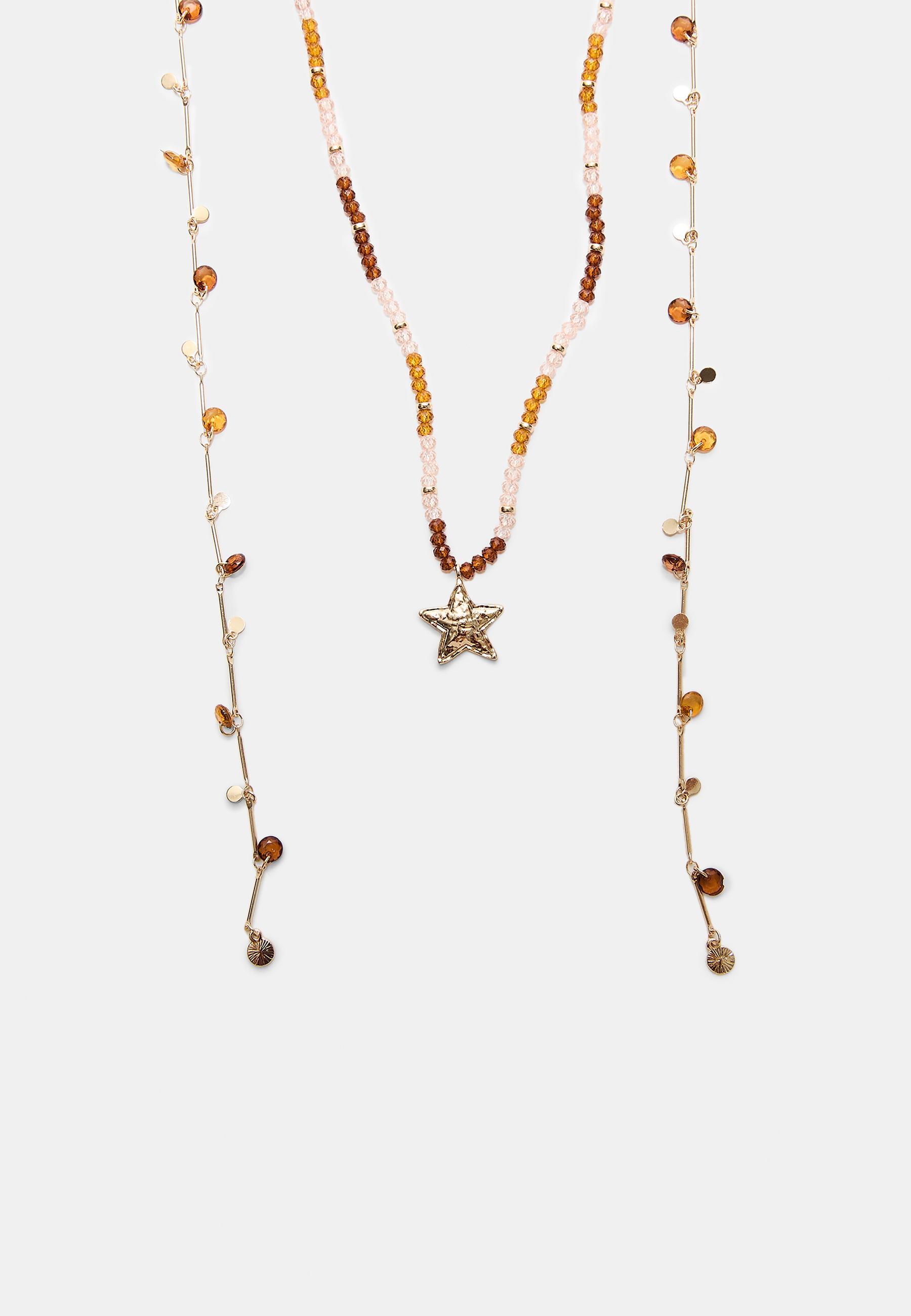 STRADIVARIUS Комплект из 2 ожерелий из бусин и звезд, золотой