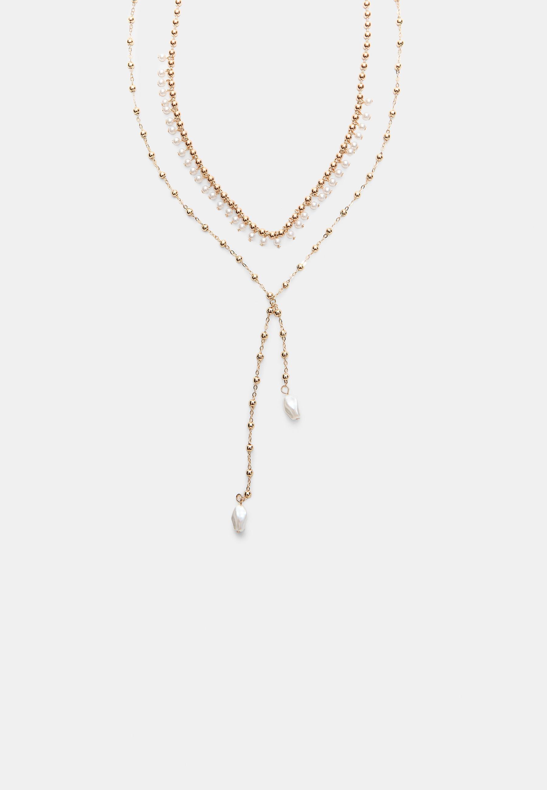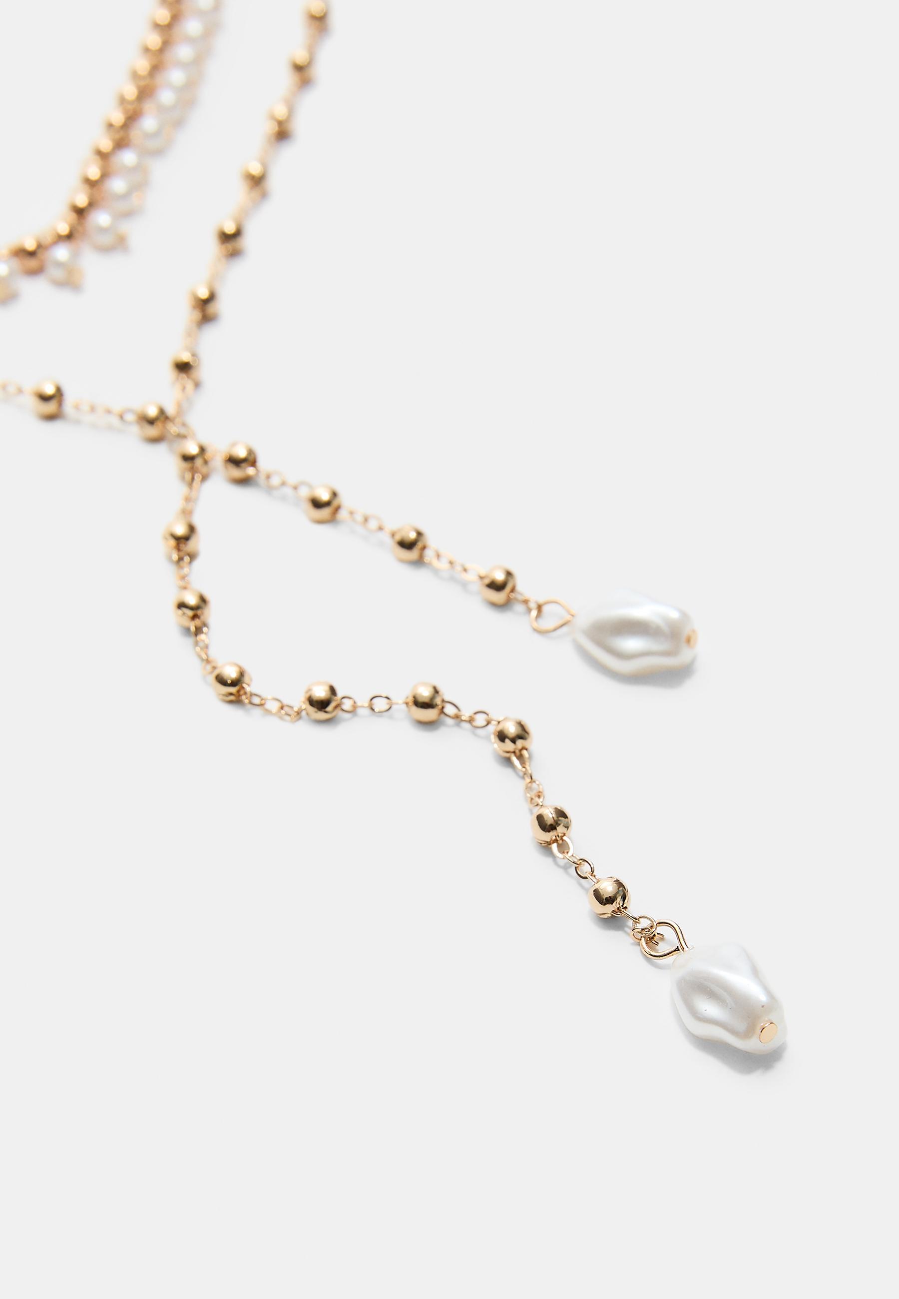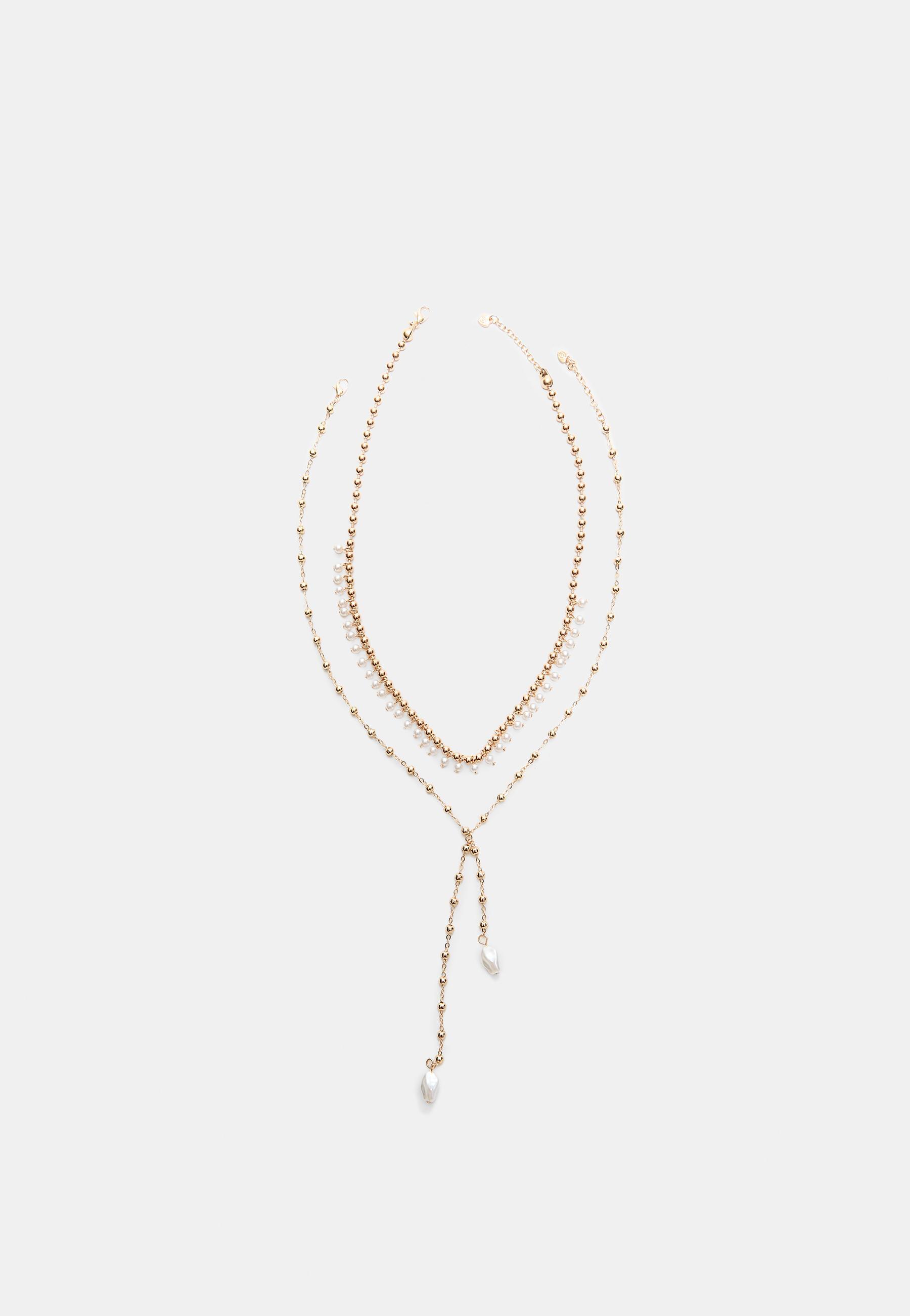 STRADIVARIUS Комплект из 2 ожерелий-лариатов из искусственного жемчуга, золотой