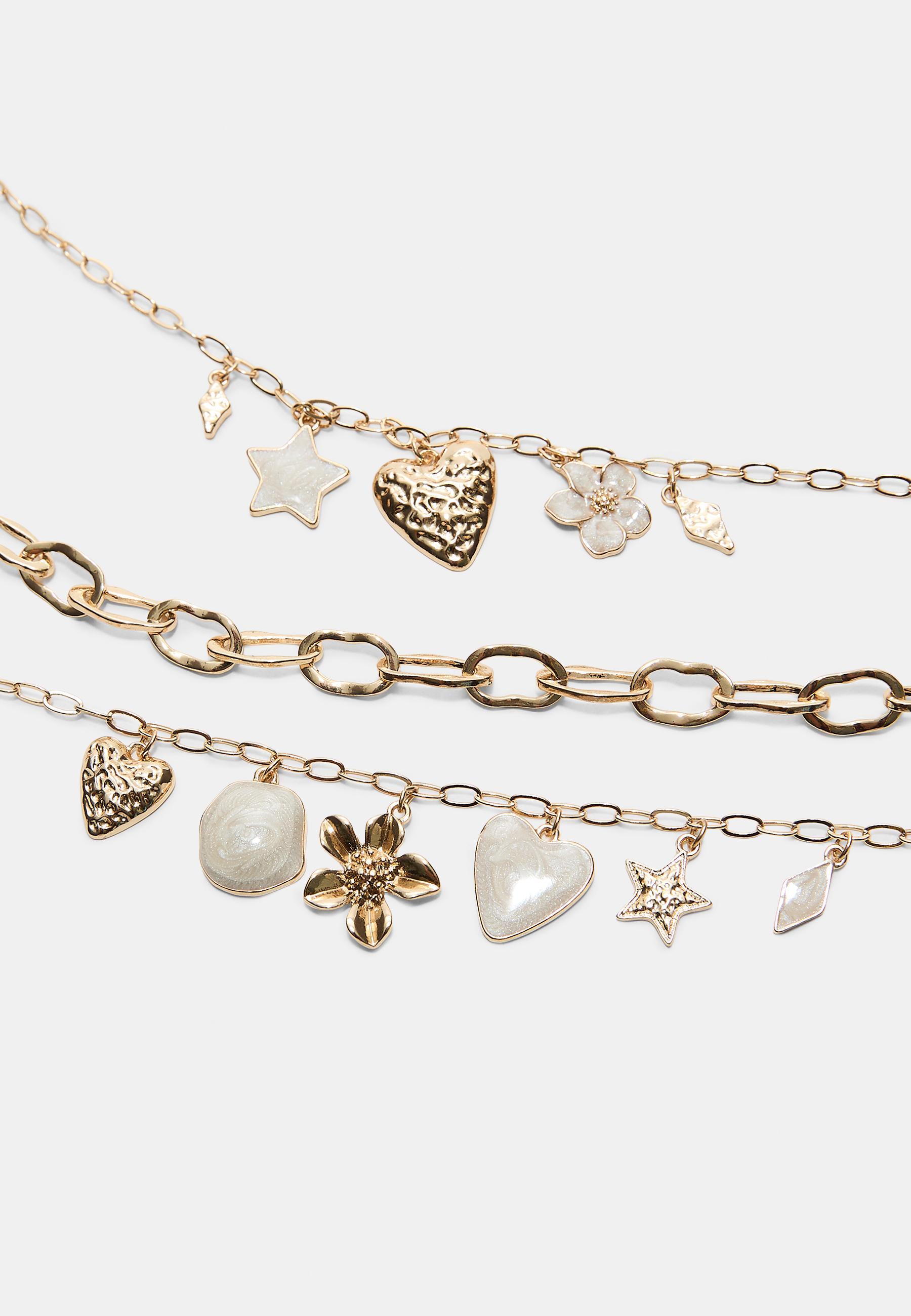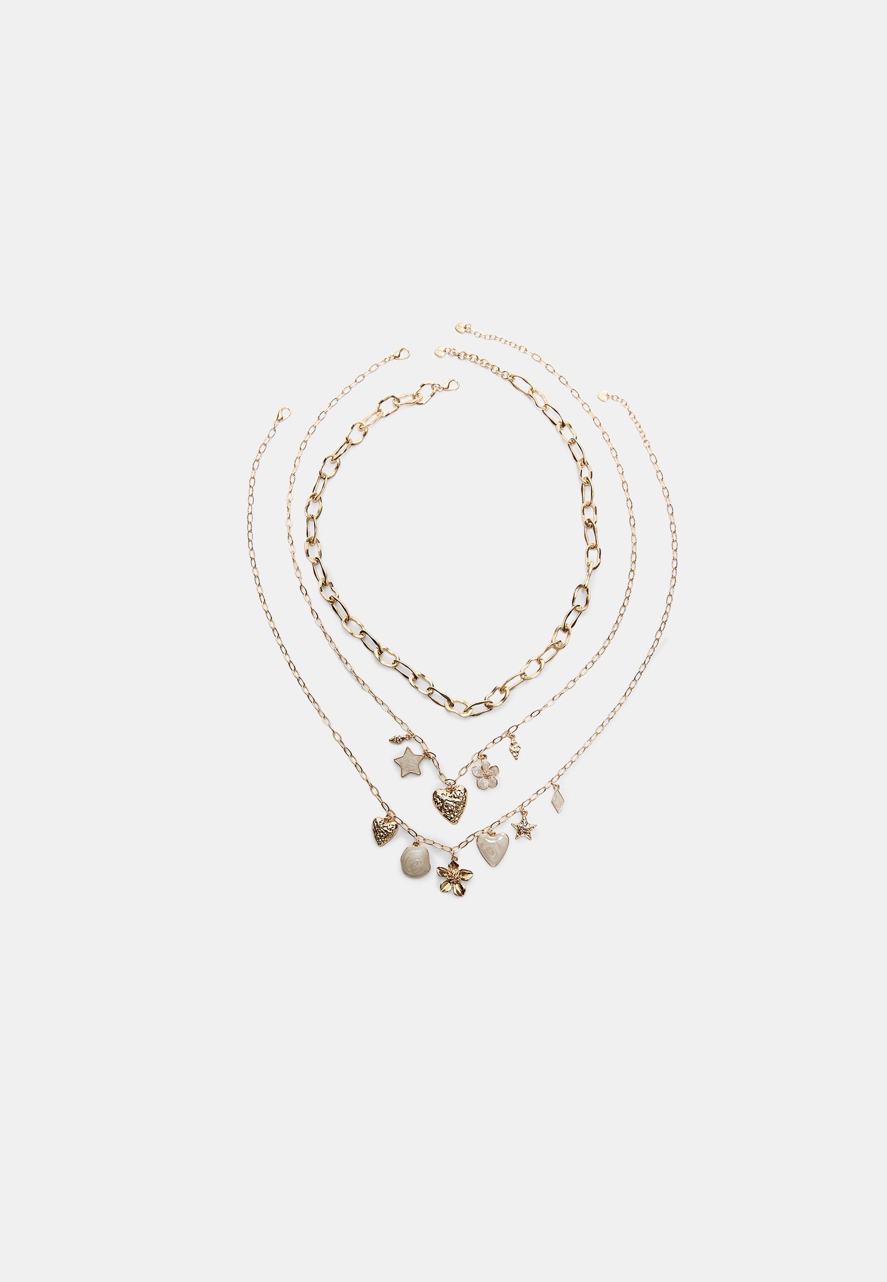 STRADIVARIUS Комплект из 3 многоцветных ожерелий, золотой