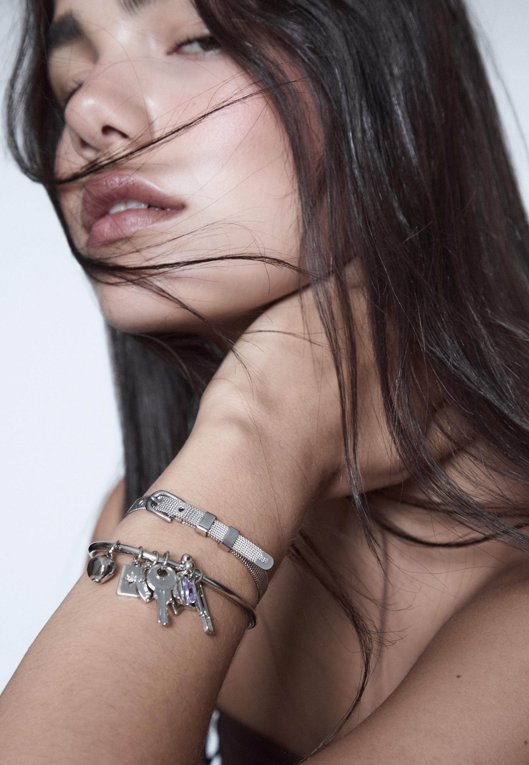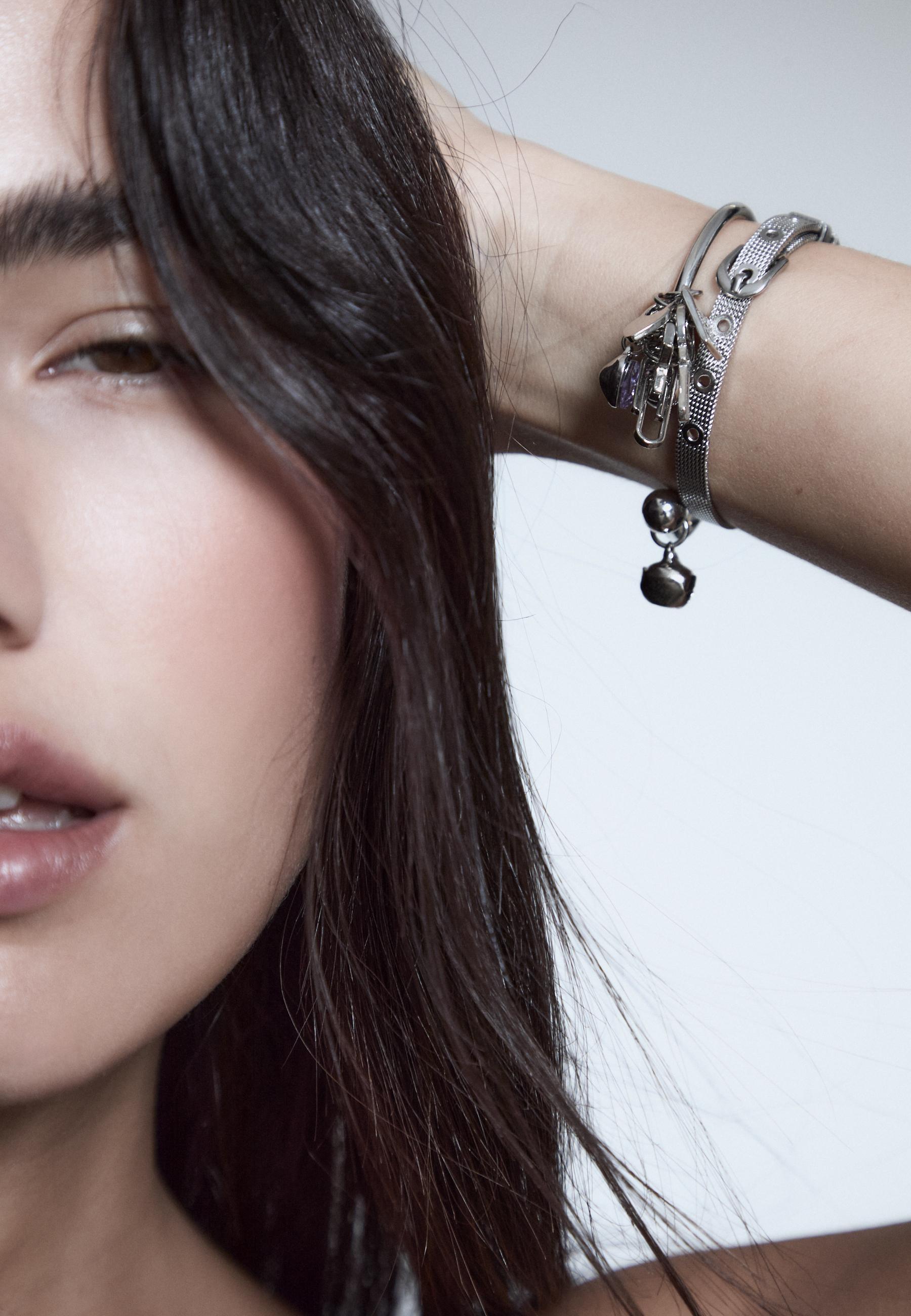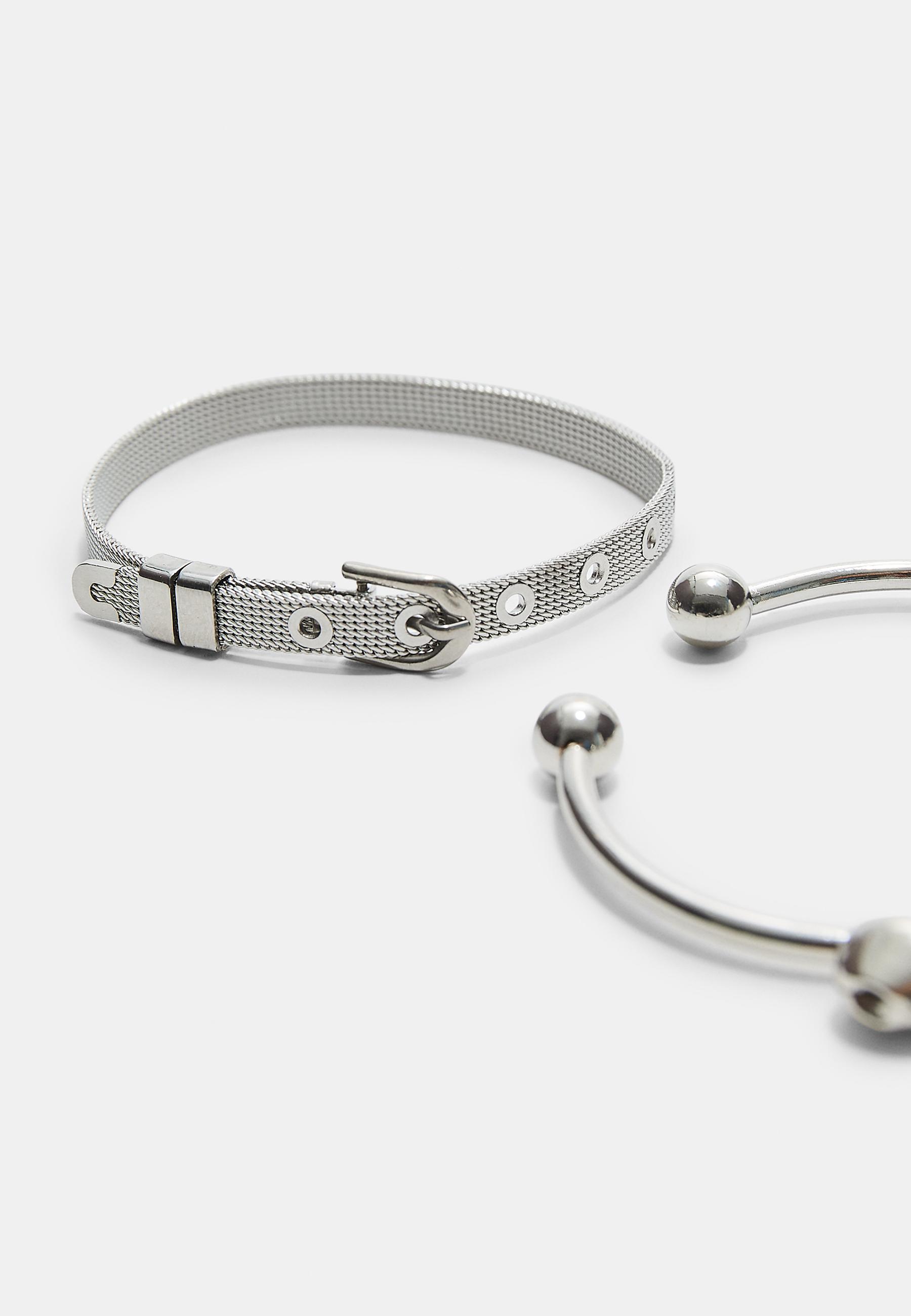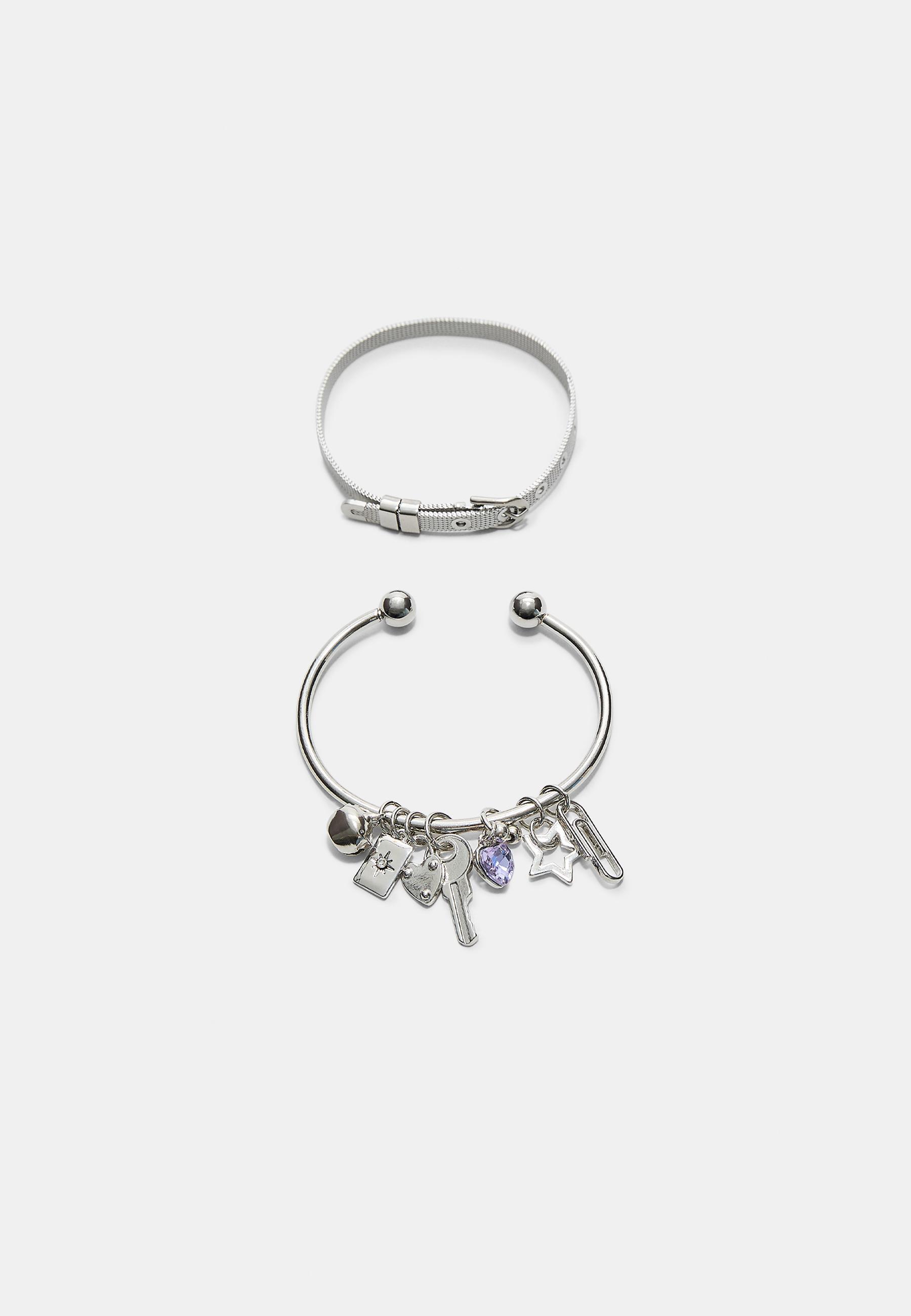 STRADIVARIUS Набор из 2 браслетов с подвесками, серый