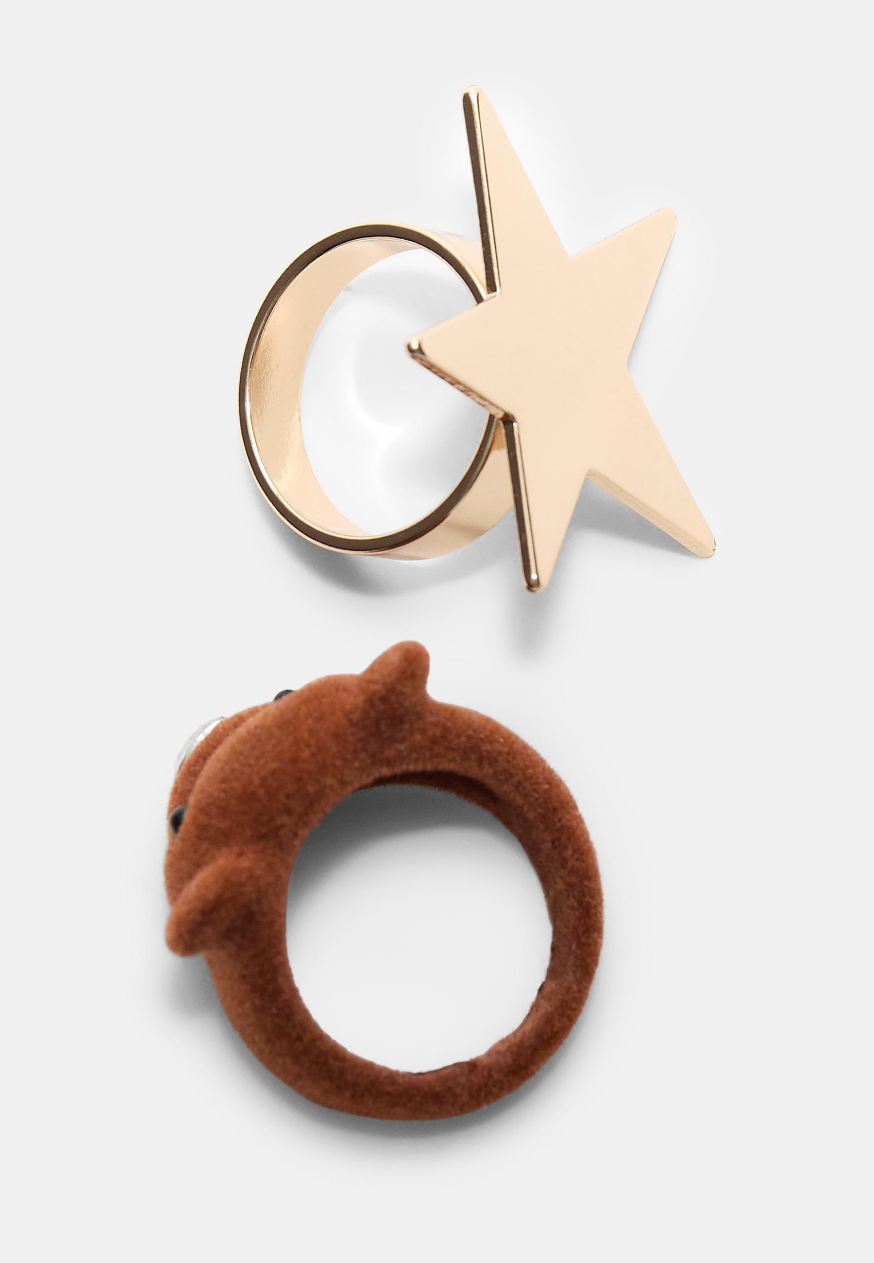 STRADIVARIUS Набор из 2 колец разной формы, коричневый