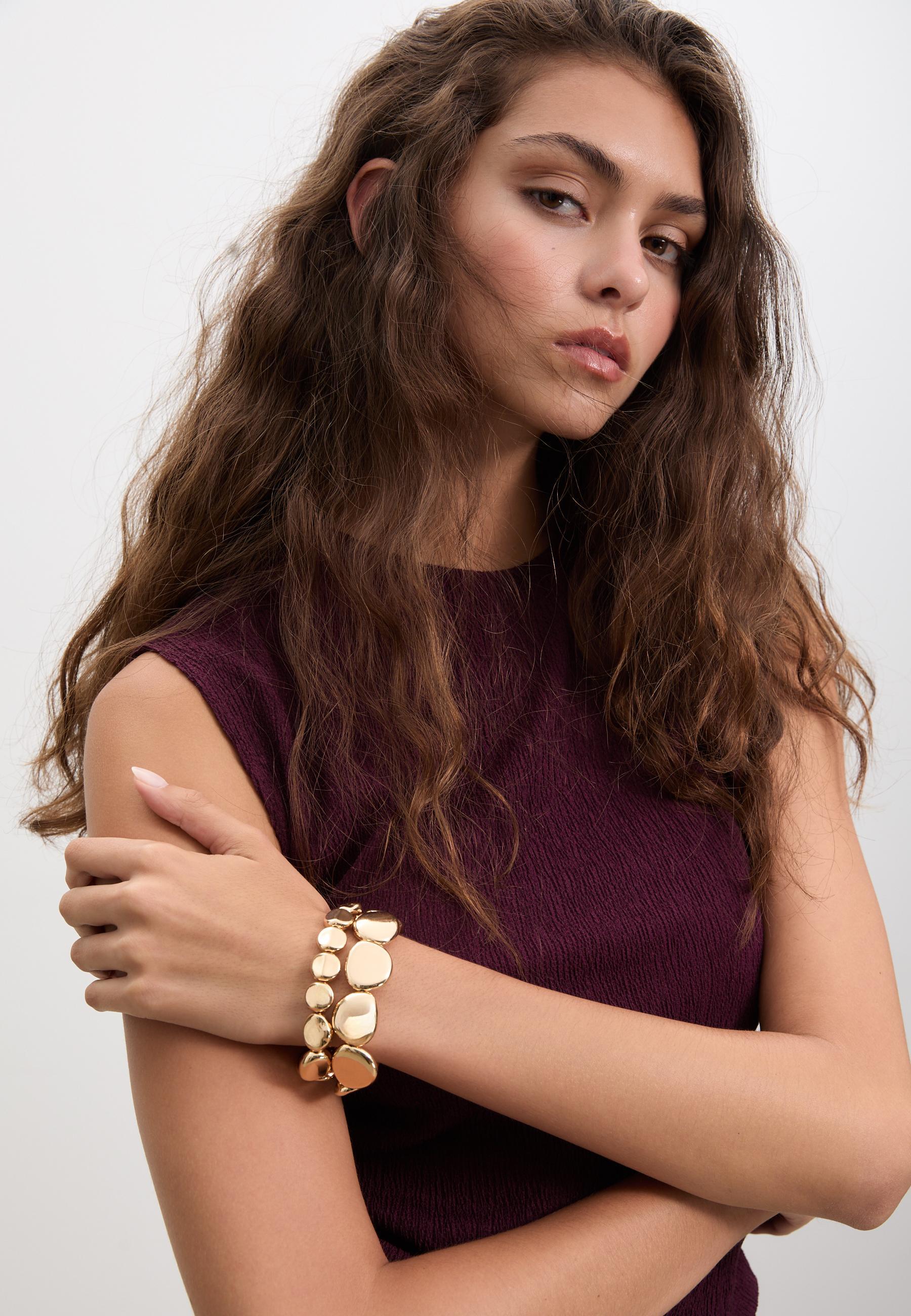 STRADIVARIUS Набор из 2 объемных браслетов, золотой