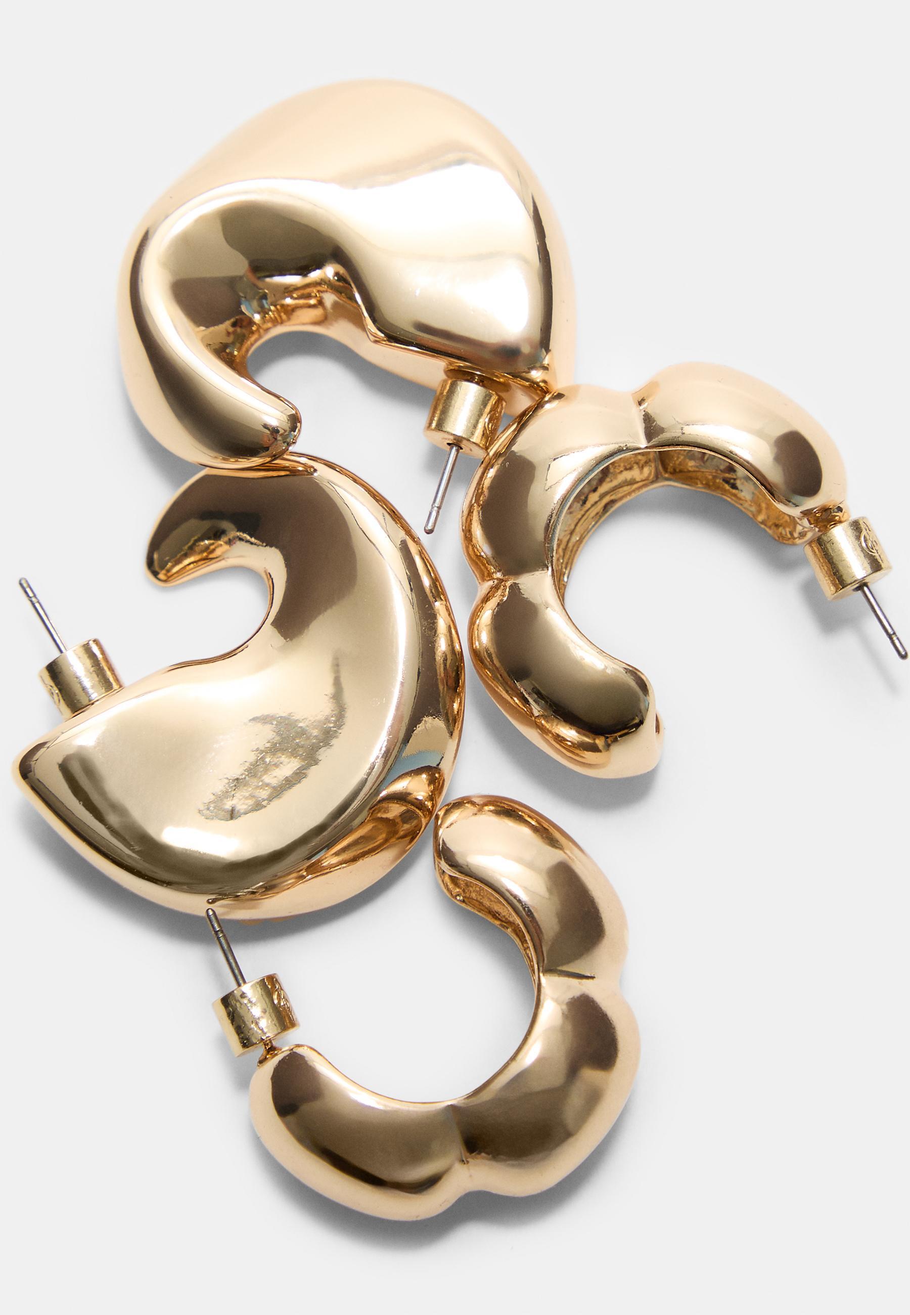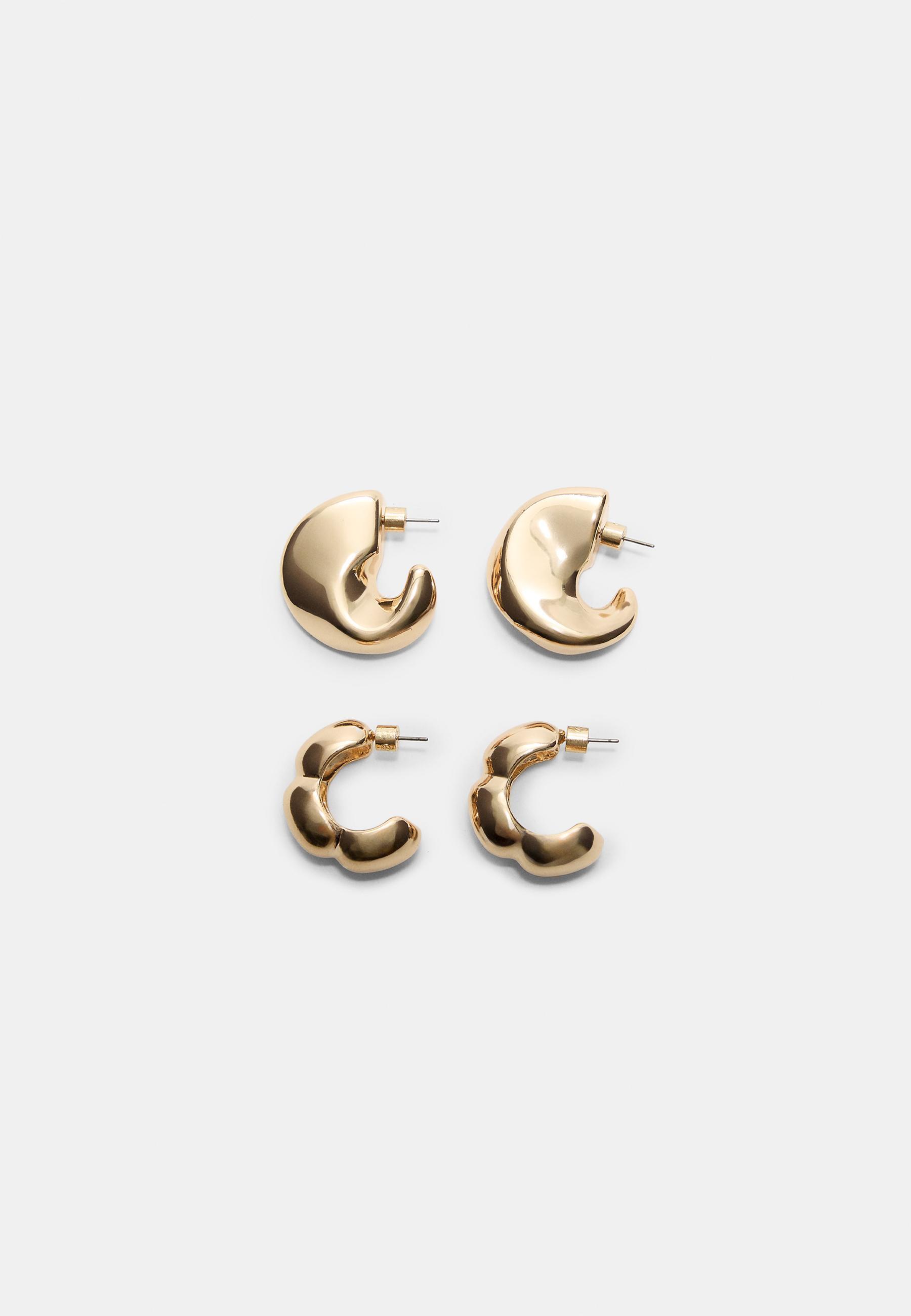 STRADIVARIUS Набор из 2 пар фактурных сережек, золотой