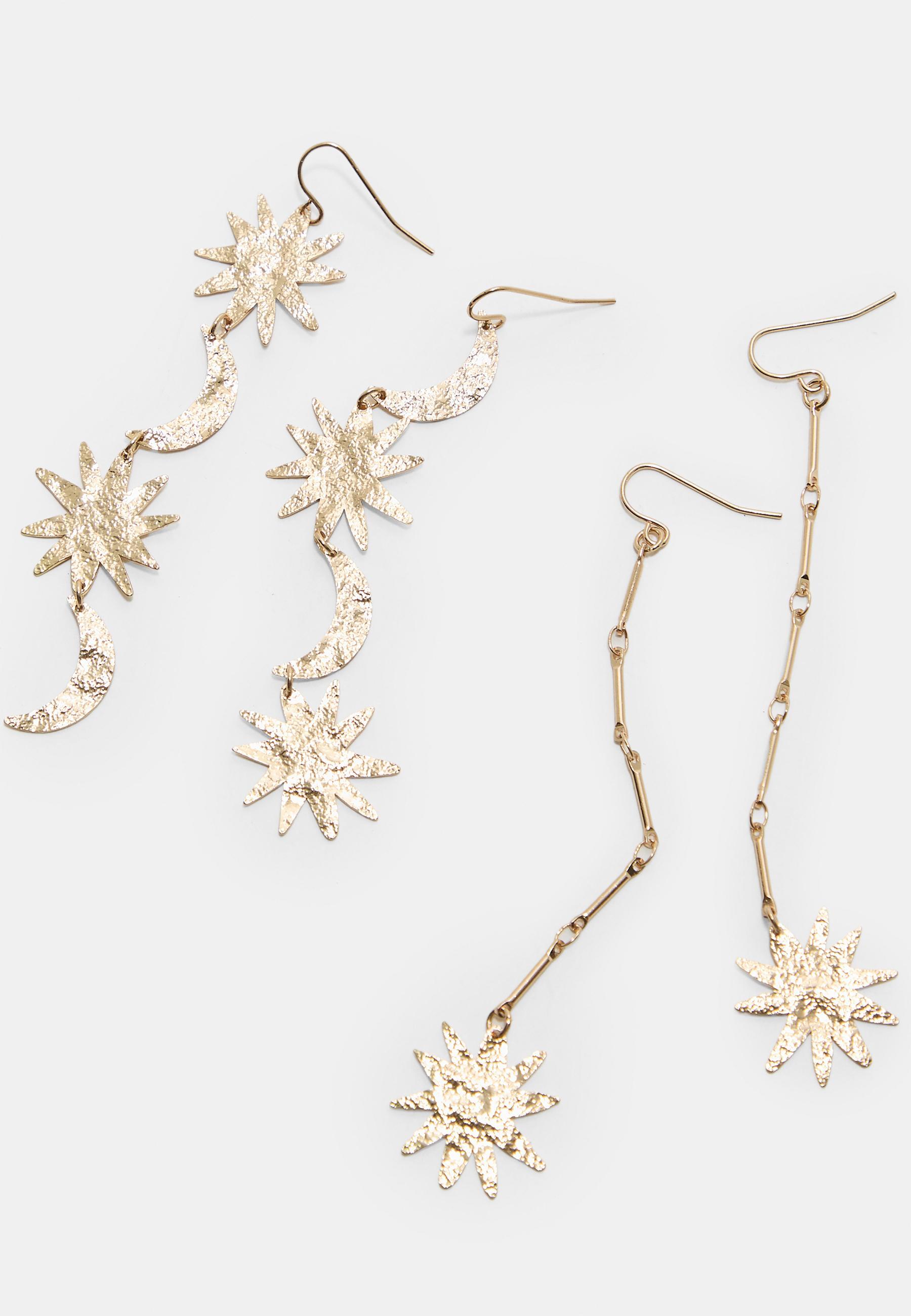 STRADIVARIUS Набор из 2 серег-подвесок в виде луны и солнца, золотой
