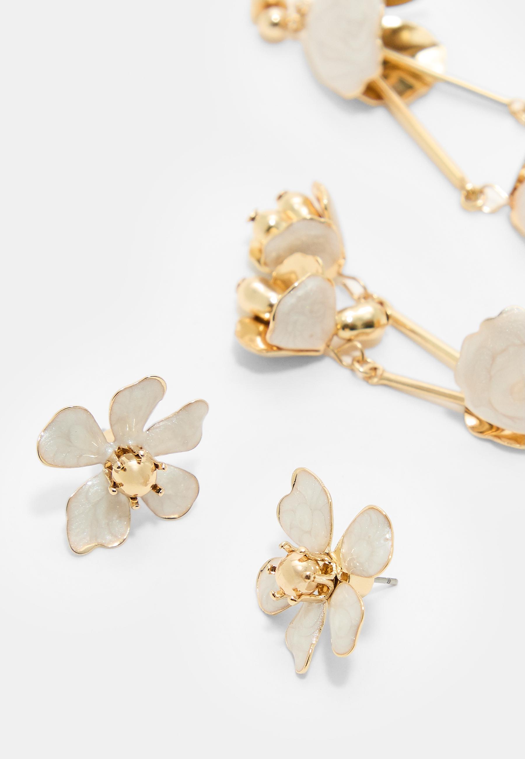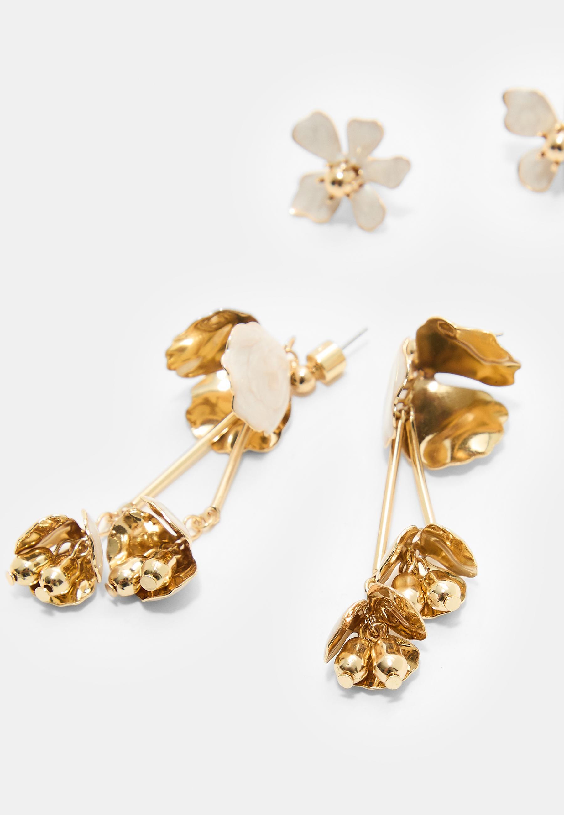 STRADIVARIUS Набор из 2 цветочных сережек, экрю