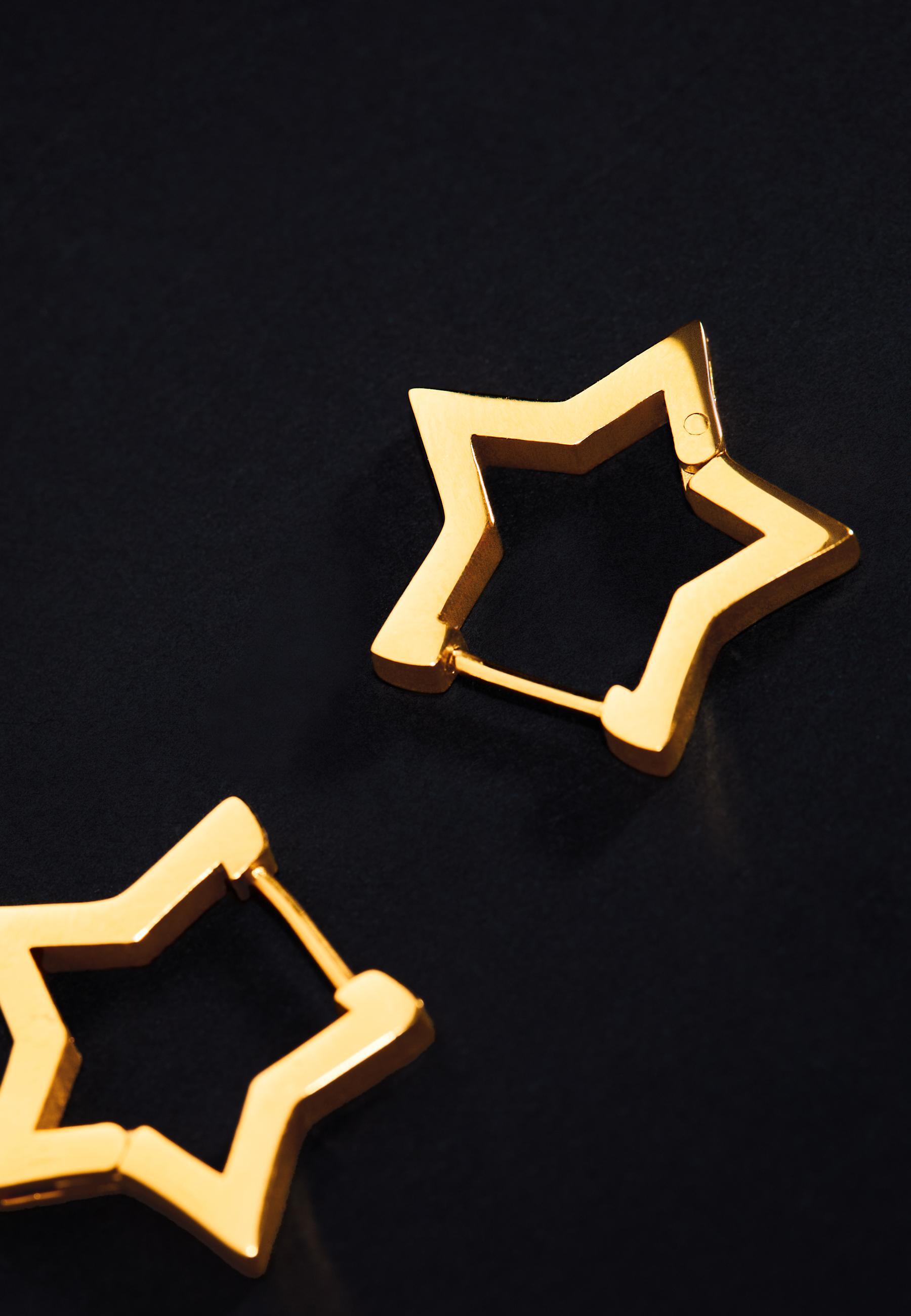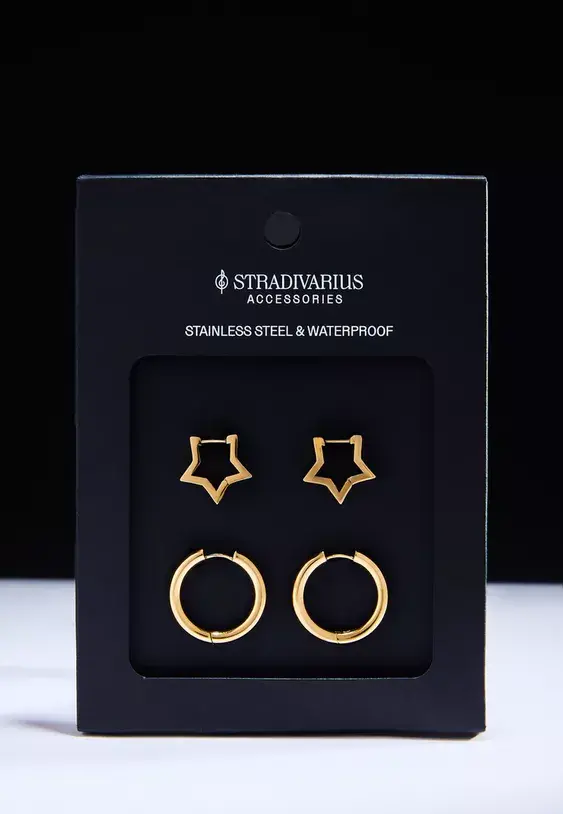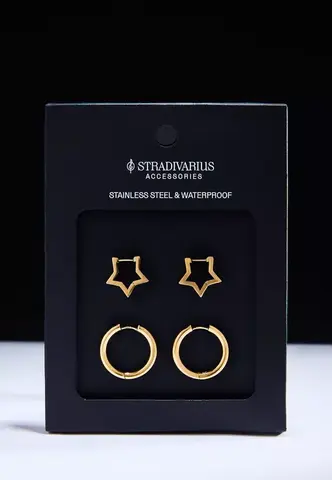 STRADIVARIUS Набор из 2 водонепроницаемых серег-колец и звезд, желтый