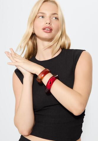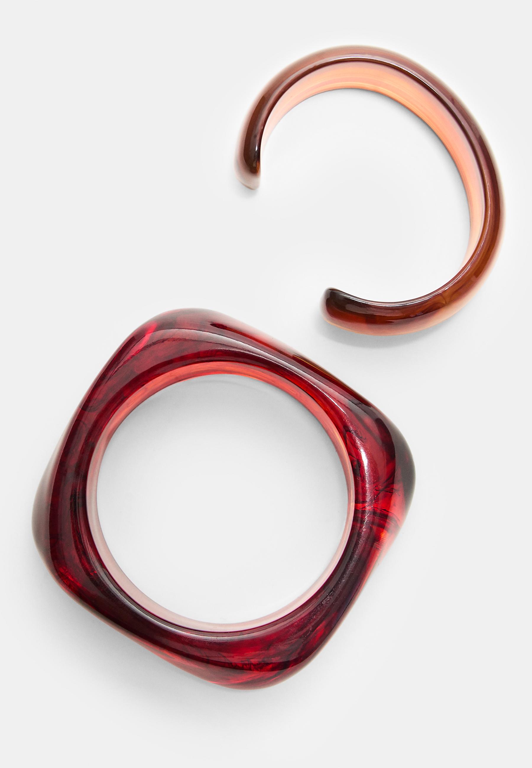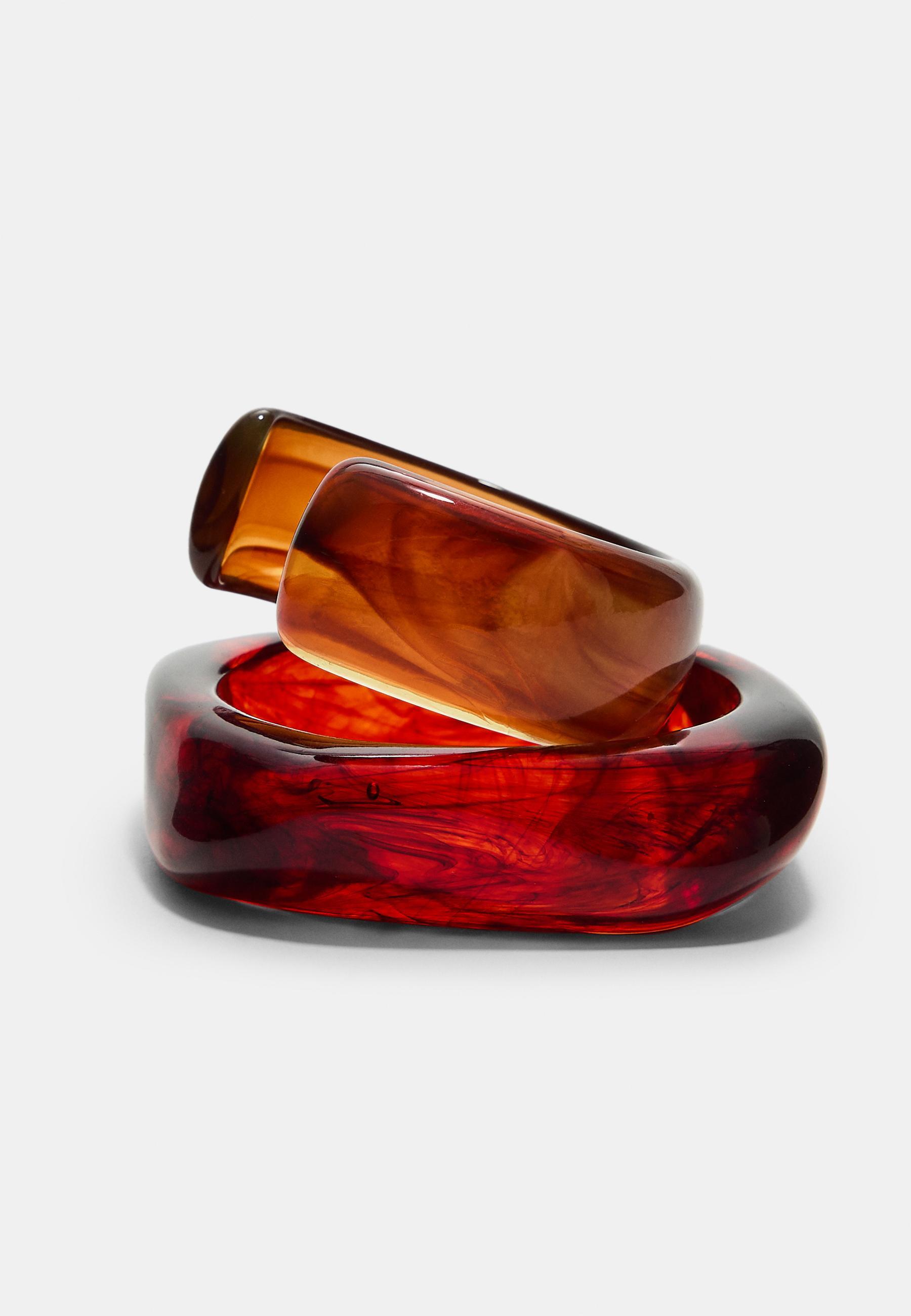 STRADIVARIUS Набор из 2 жестких браслетов, горчичный