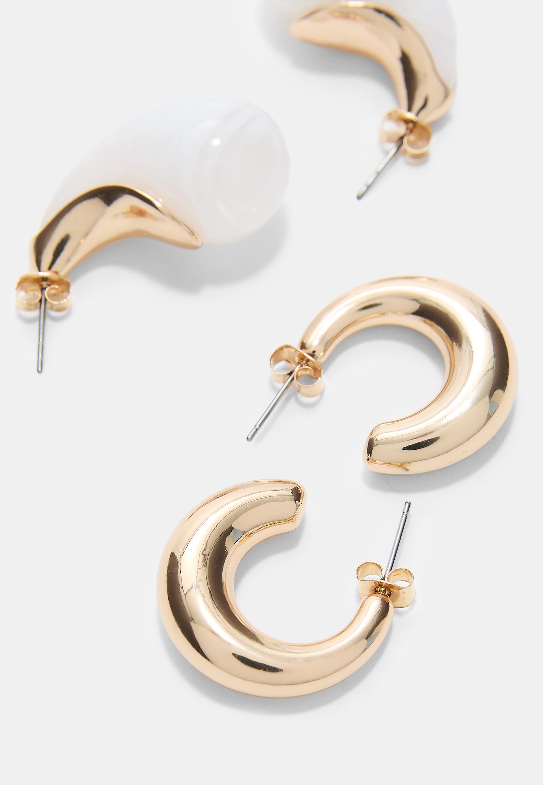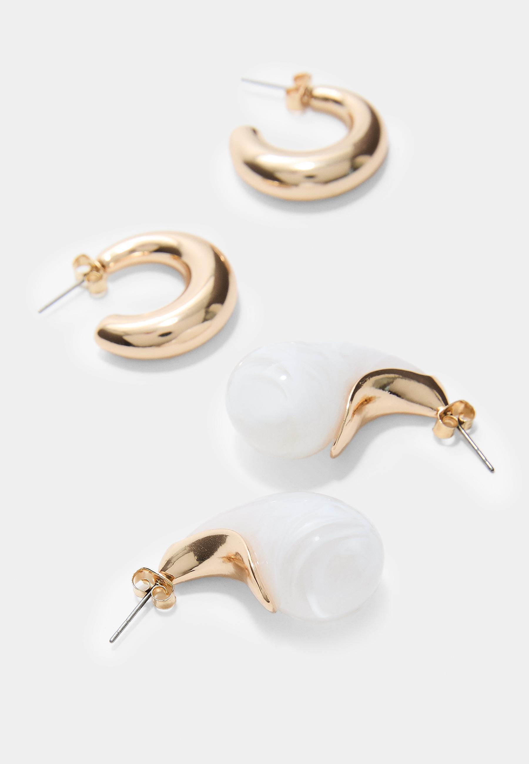 STRADIVARIUS Набор из 2 пар сережек-капель и колец, экрю