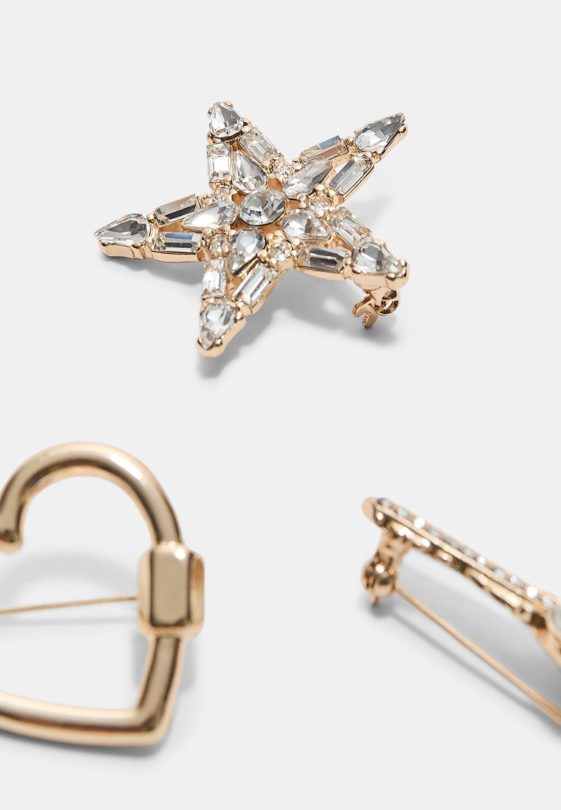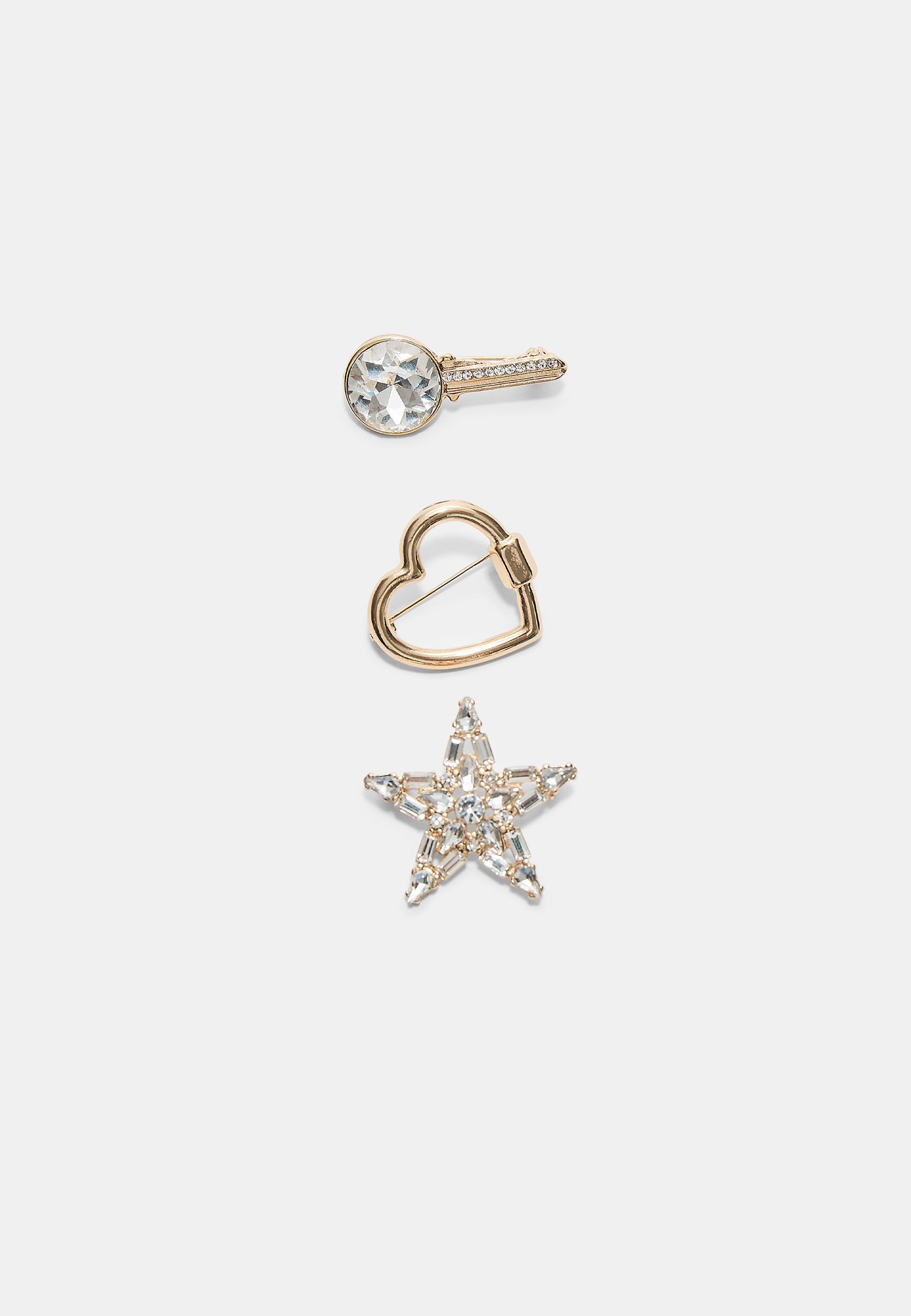 Stradivarius Набор из 3 брошей-звездочек с контрастными стразами, золотой
