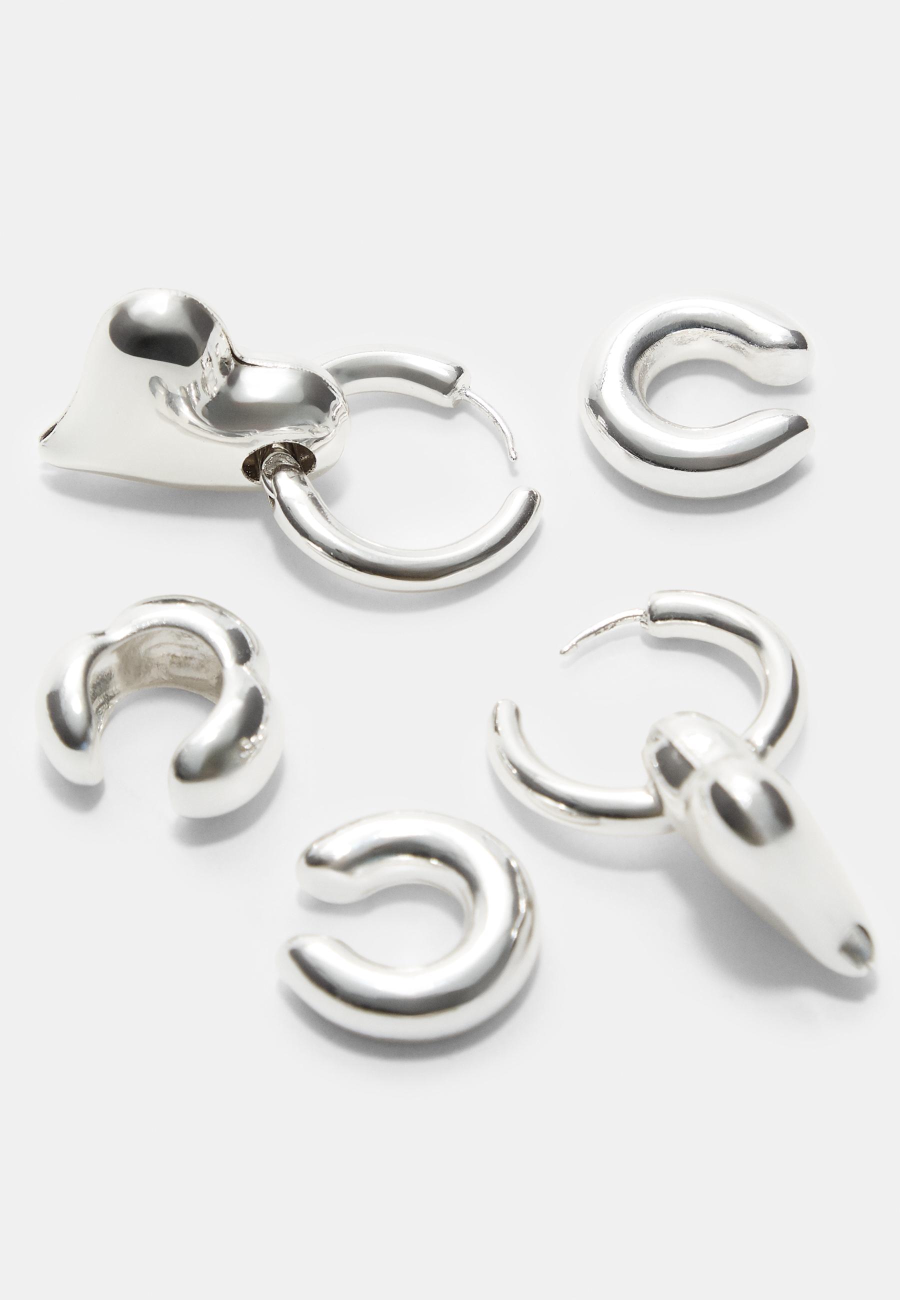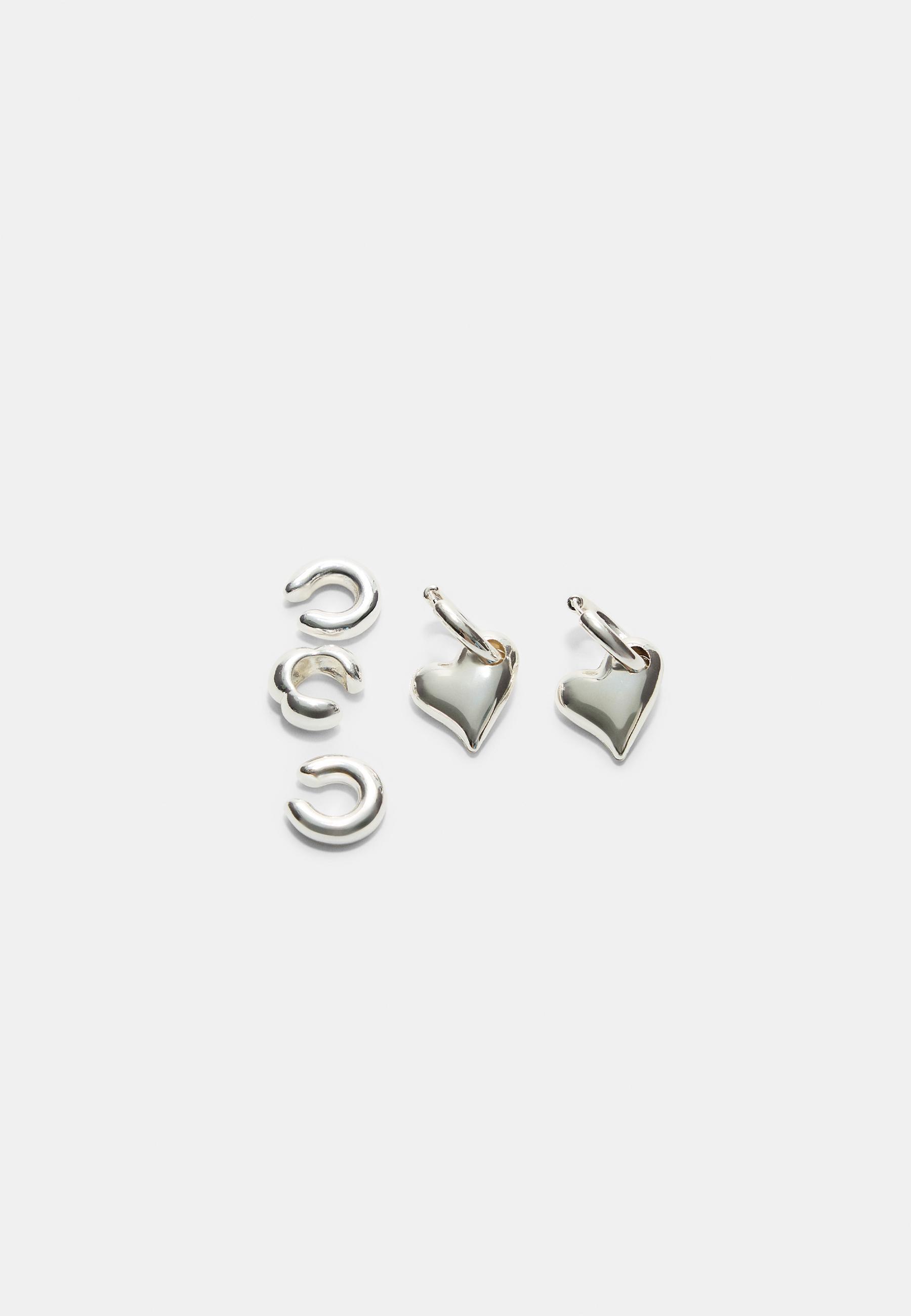 STRADIVARIUS Набор из 3 каффов и сережек в форме сердца, серый