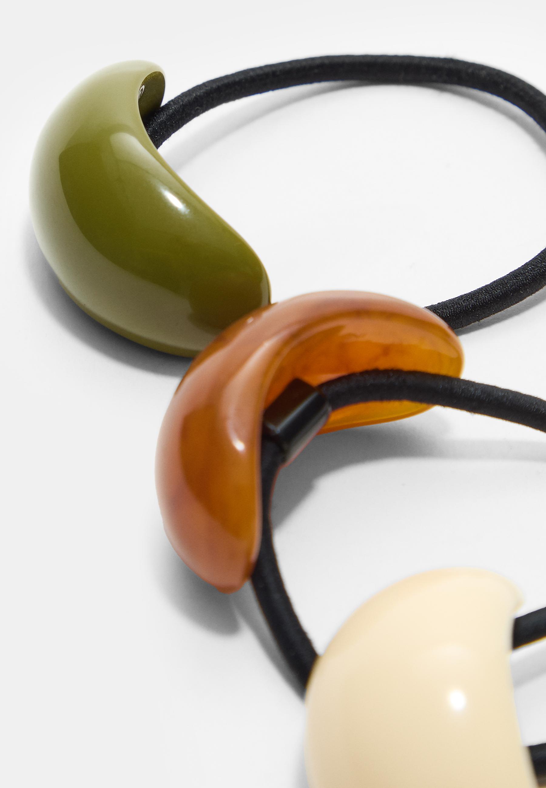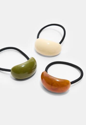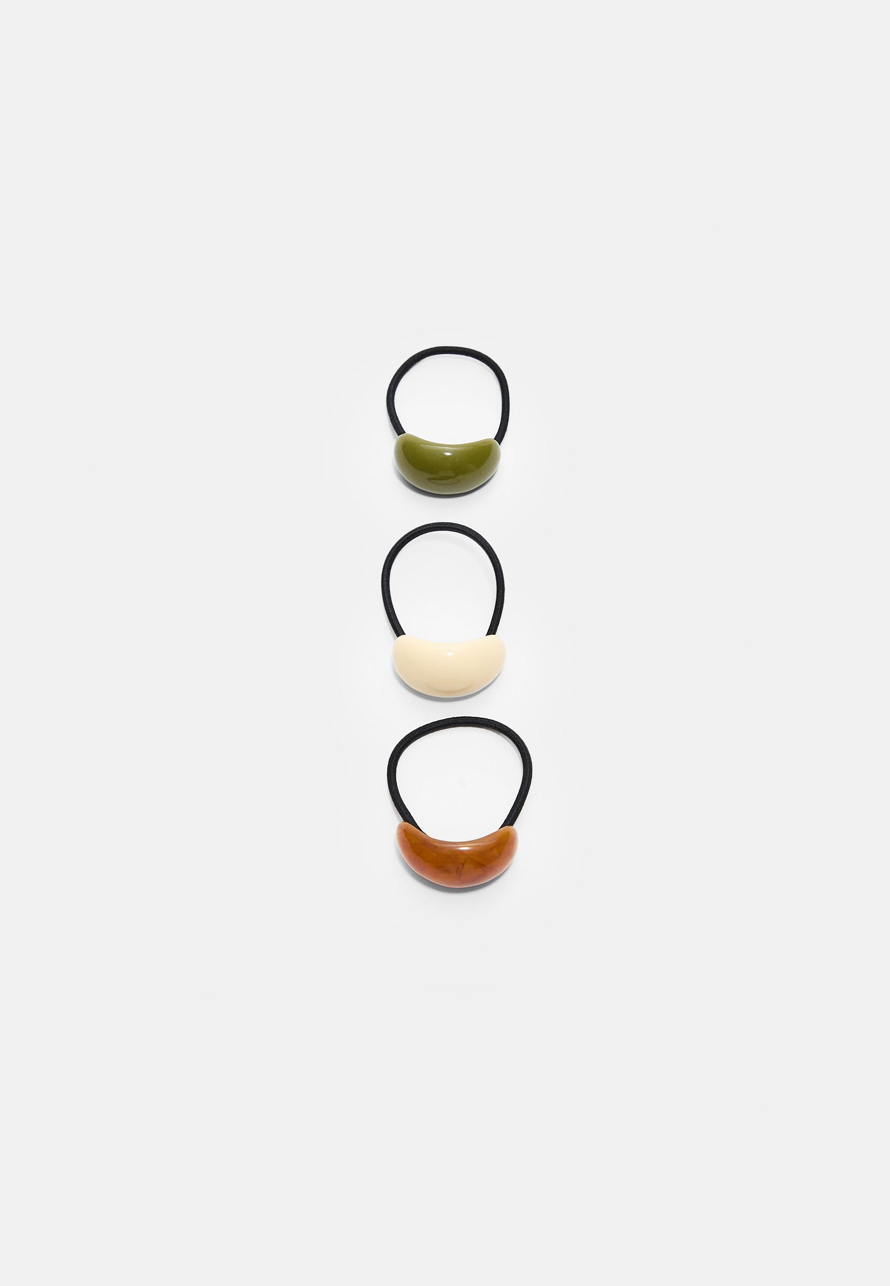 STRADIVARIUS Набор из 3 контрастных объемных резинок для волос, экрю