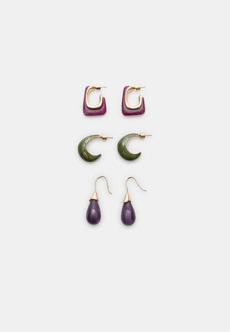 STRADIVARIUS Набор из 3 контрастных сережек-колец и капель, сиреневый