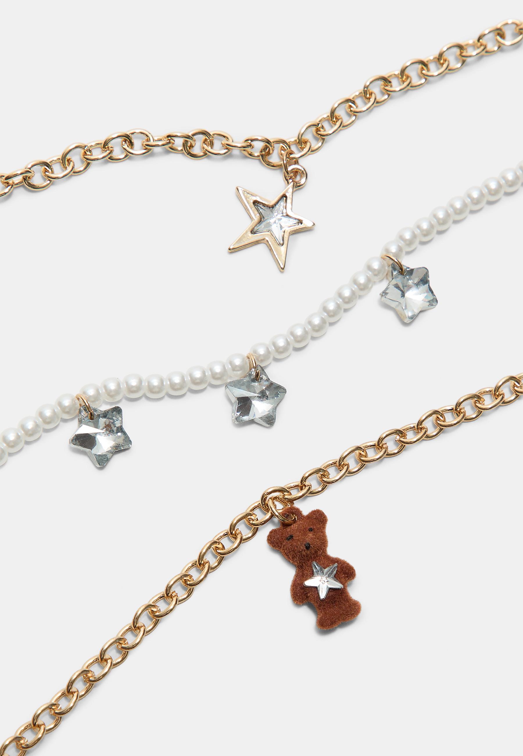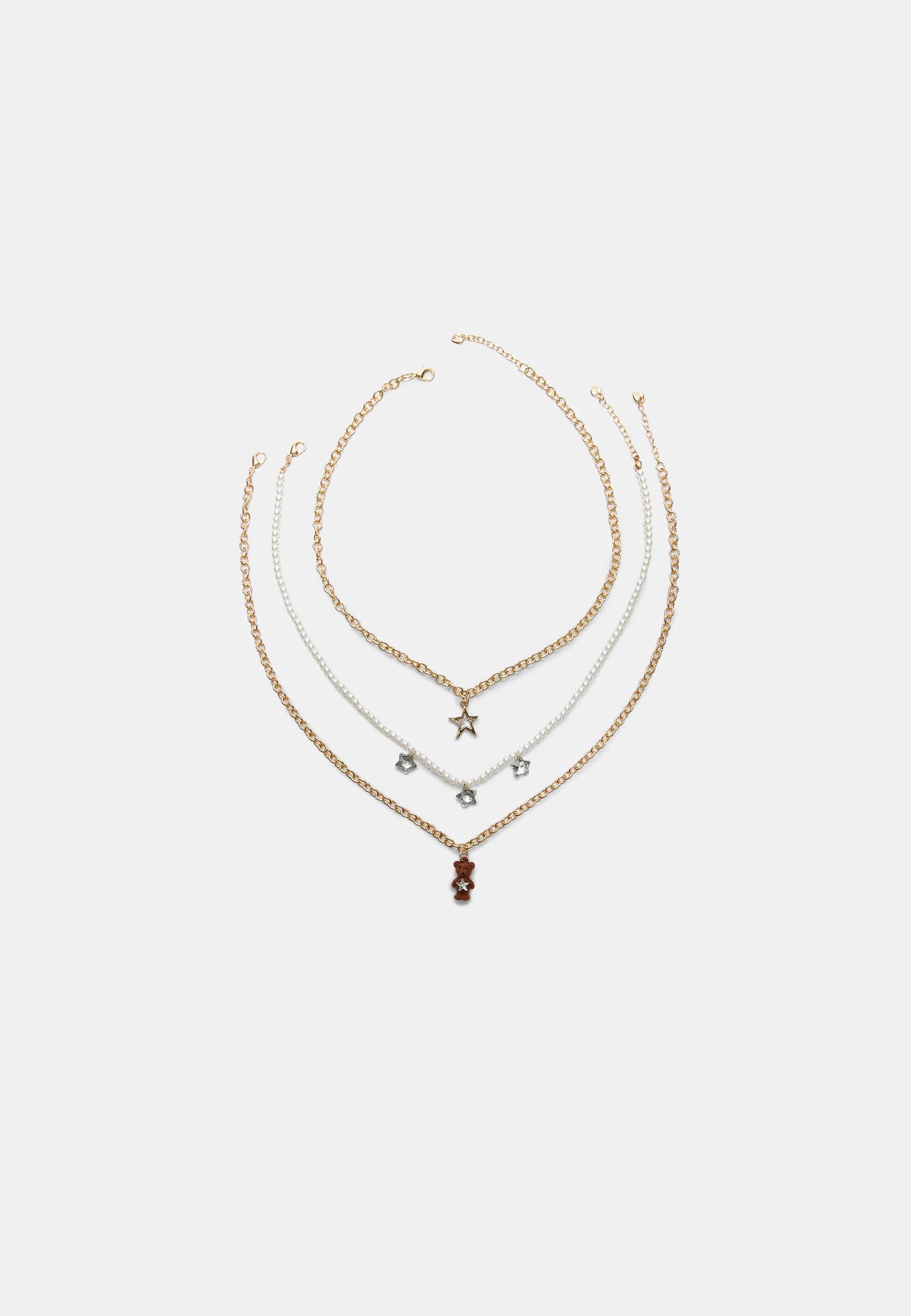 STRADIVARIUS Набор из 3 ожерелий с плюшевыми мишками, золотой