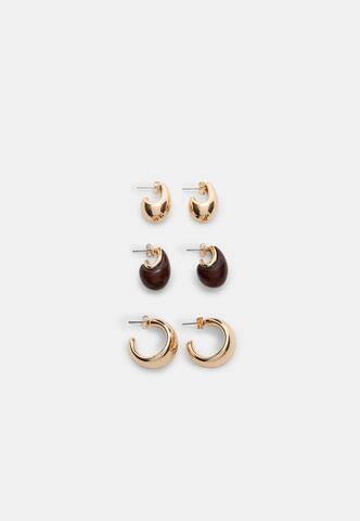 STRADIVARIUS Набор из 3 пар объемных мини-сережек, коричневый