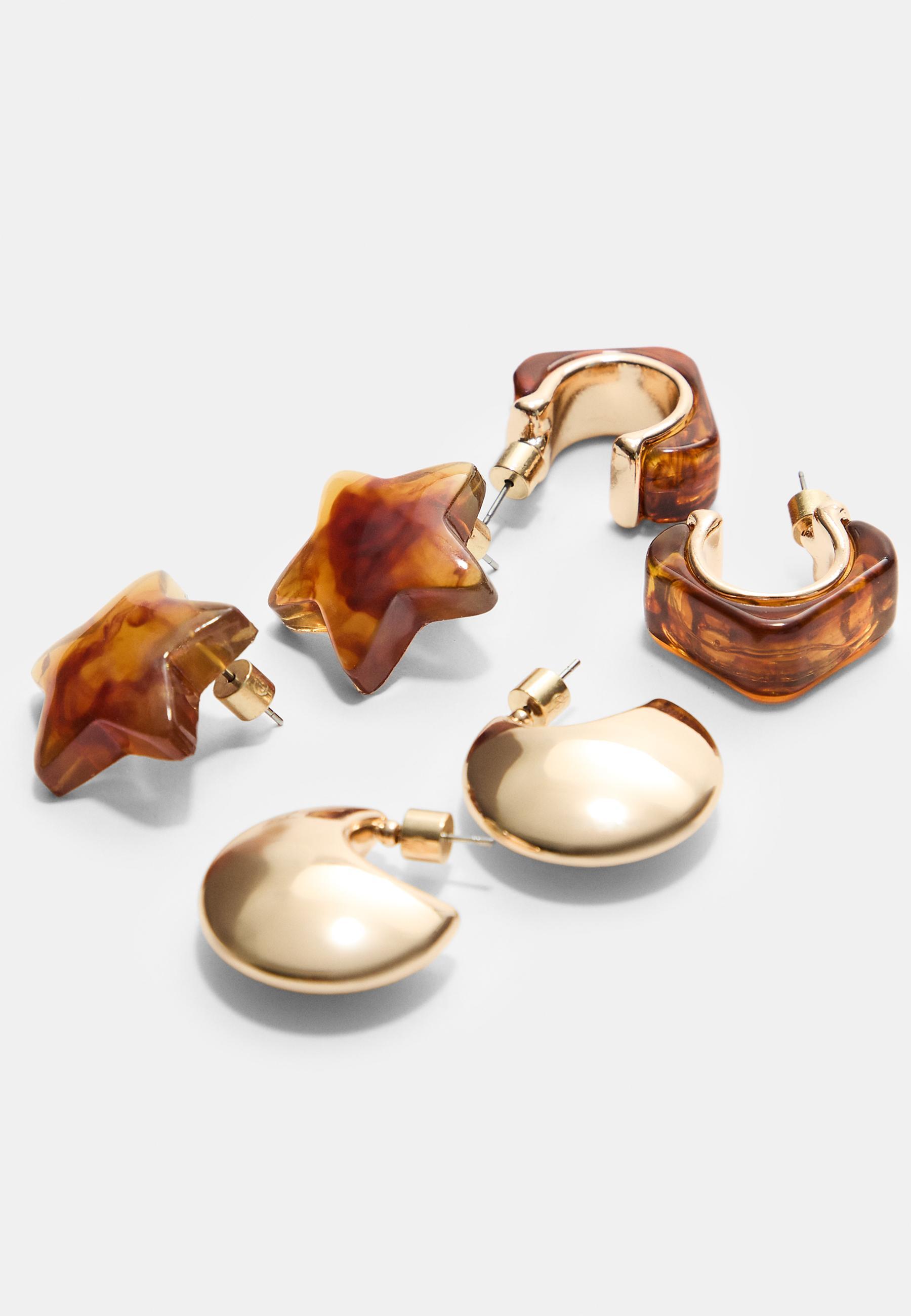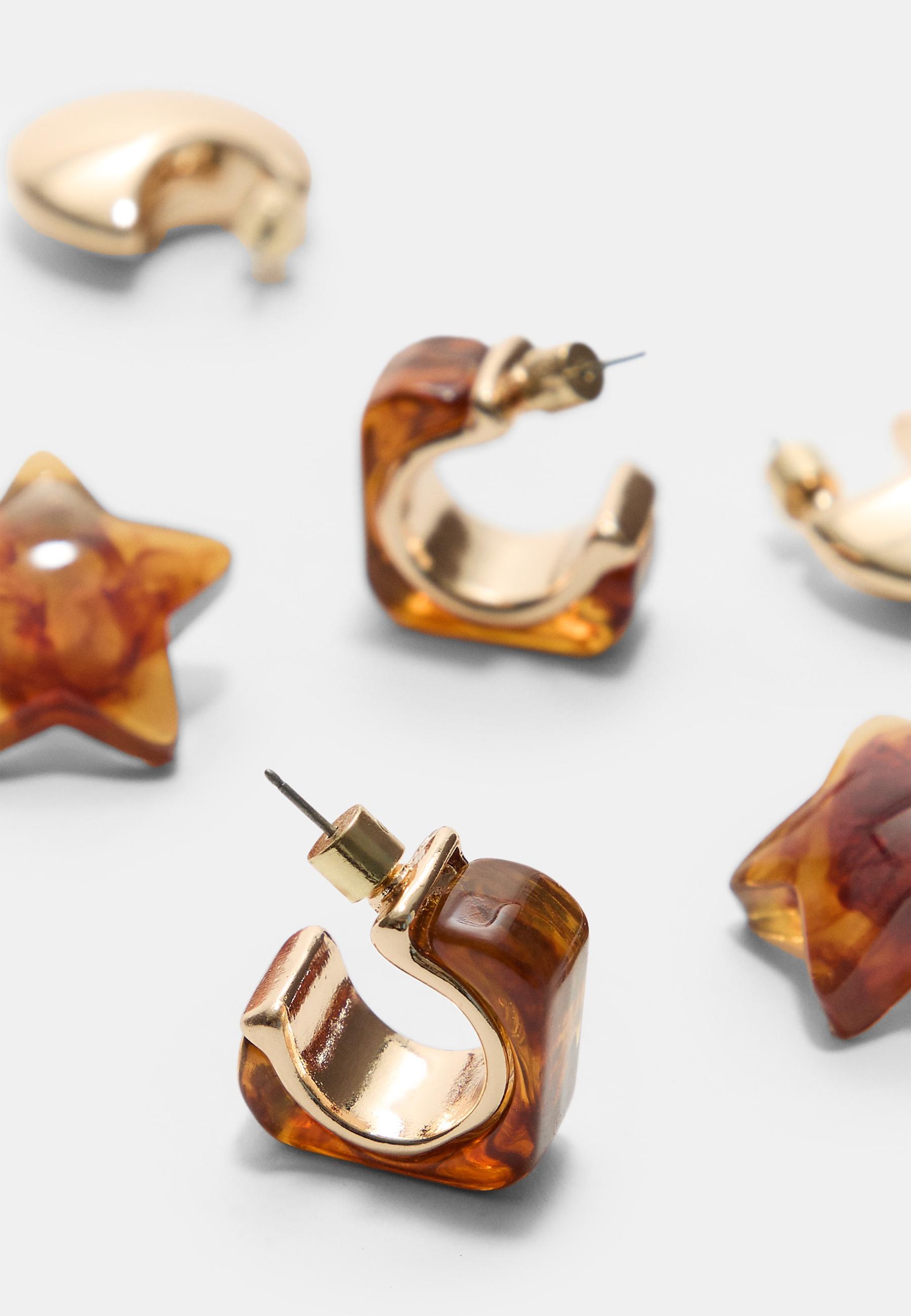 STRADIVARIUS Набор из 3 пар серег-звезд, горчичный