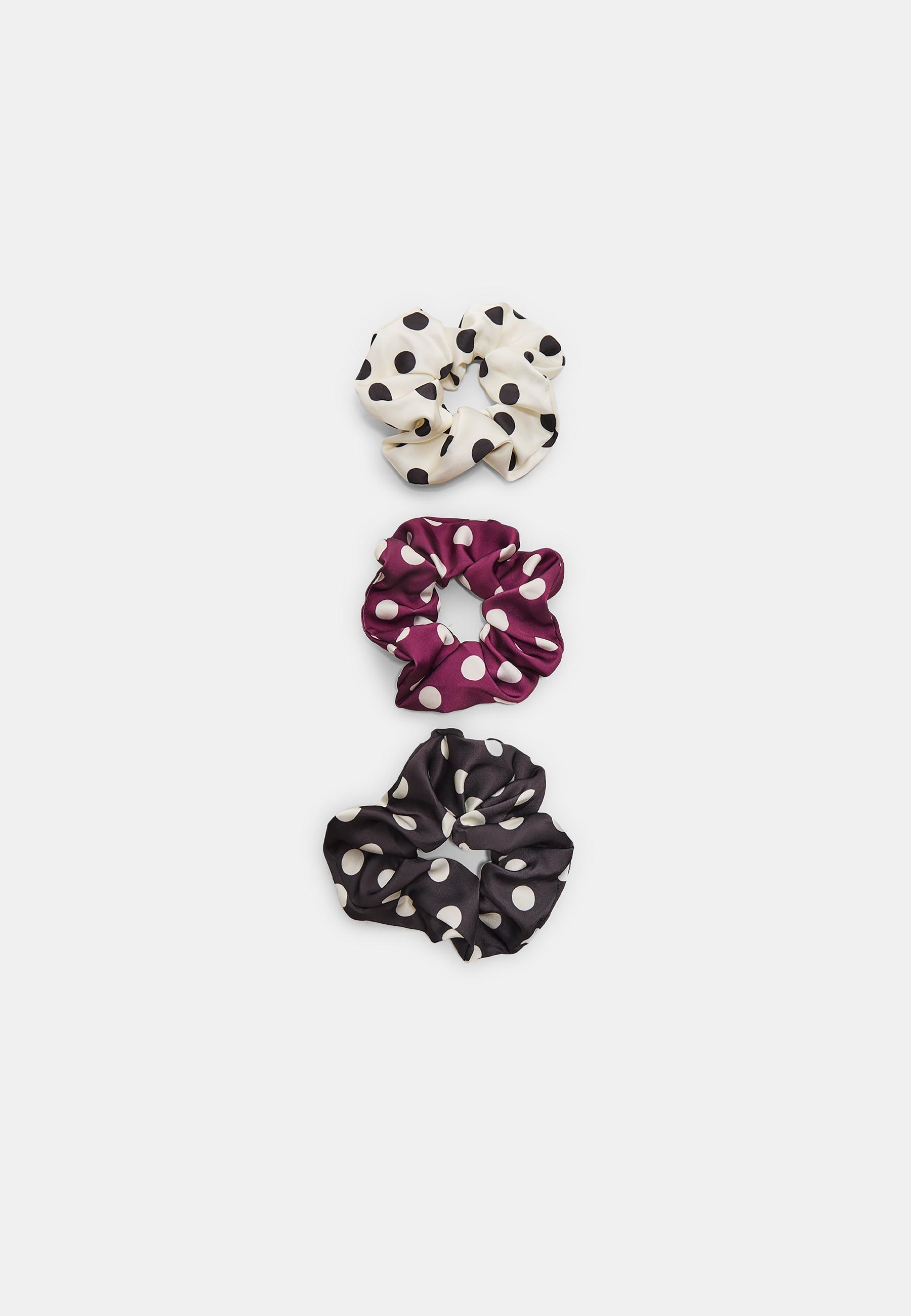 STRADIVARIUS Набор из 3 резинок для волос в горошек, черный