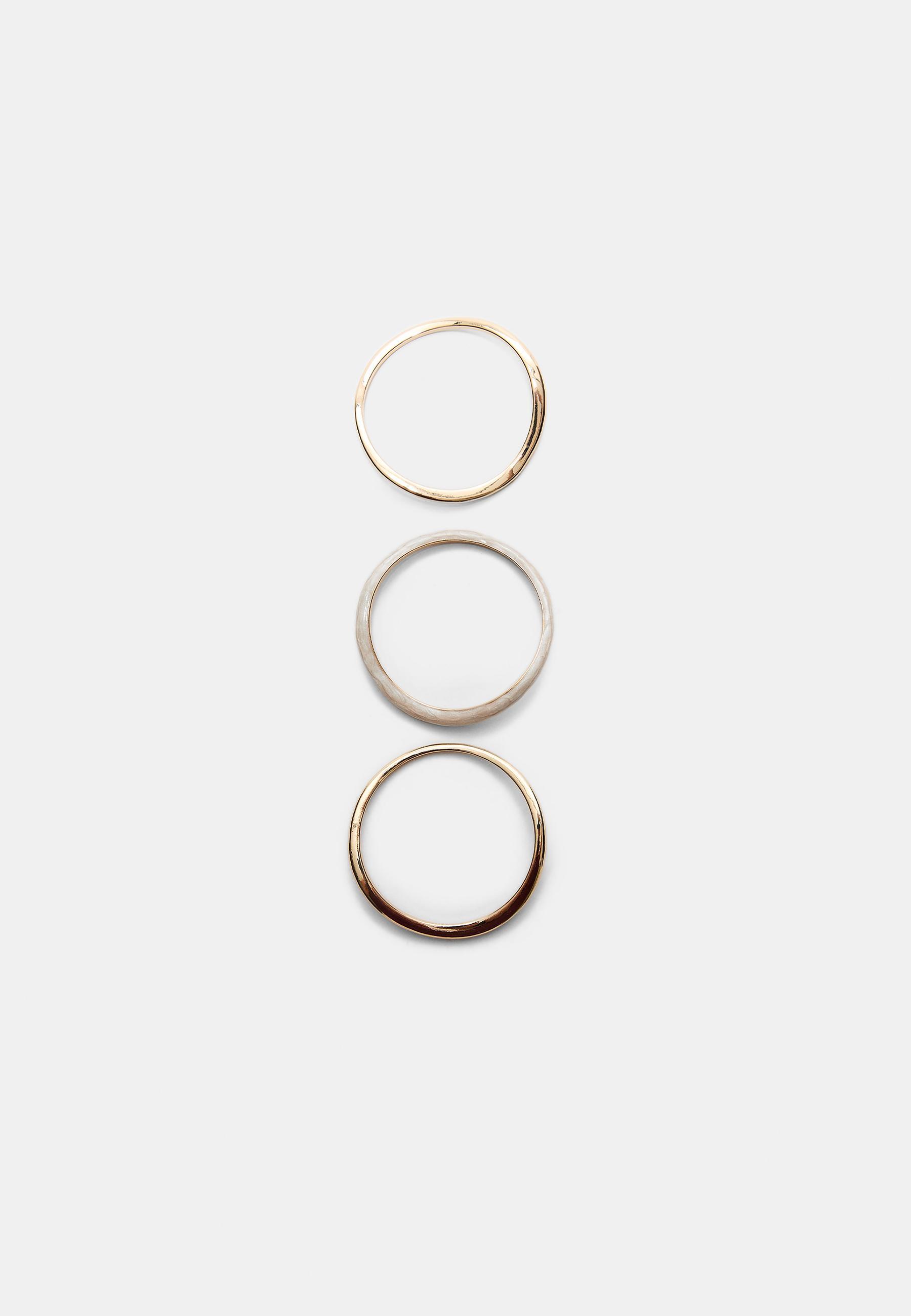 STRADIVARIUS Набор из 3 жестких эмалированных браслетов, золотой