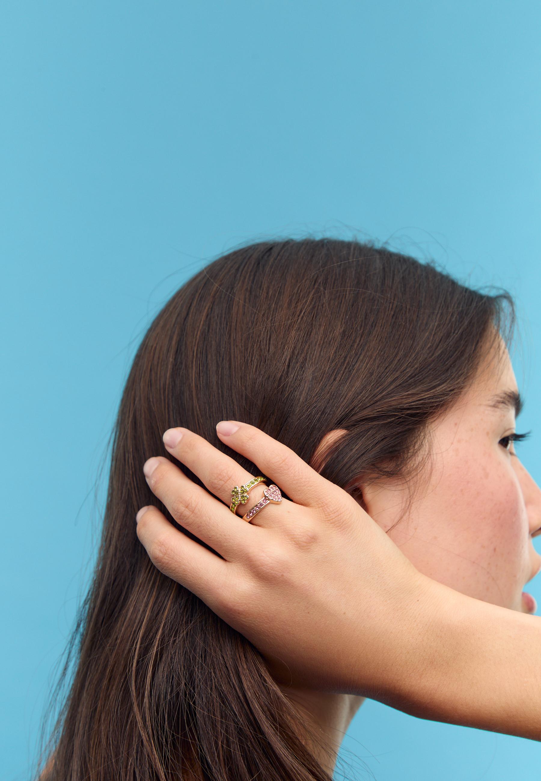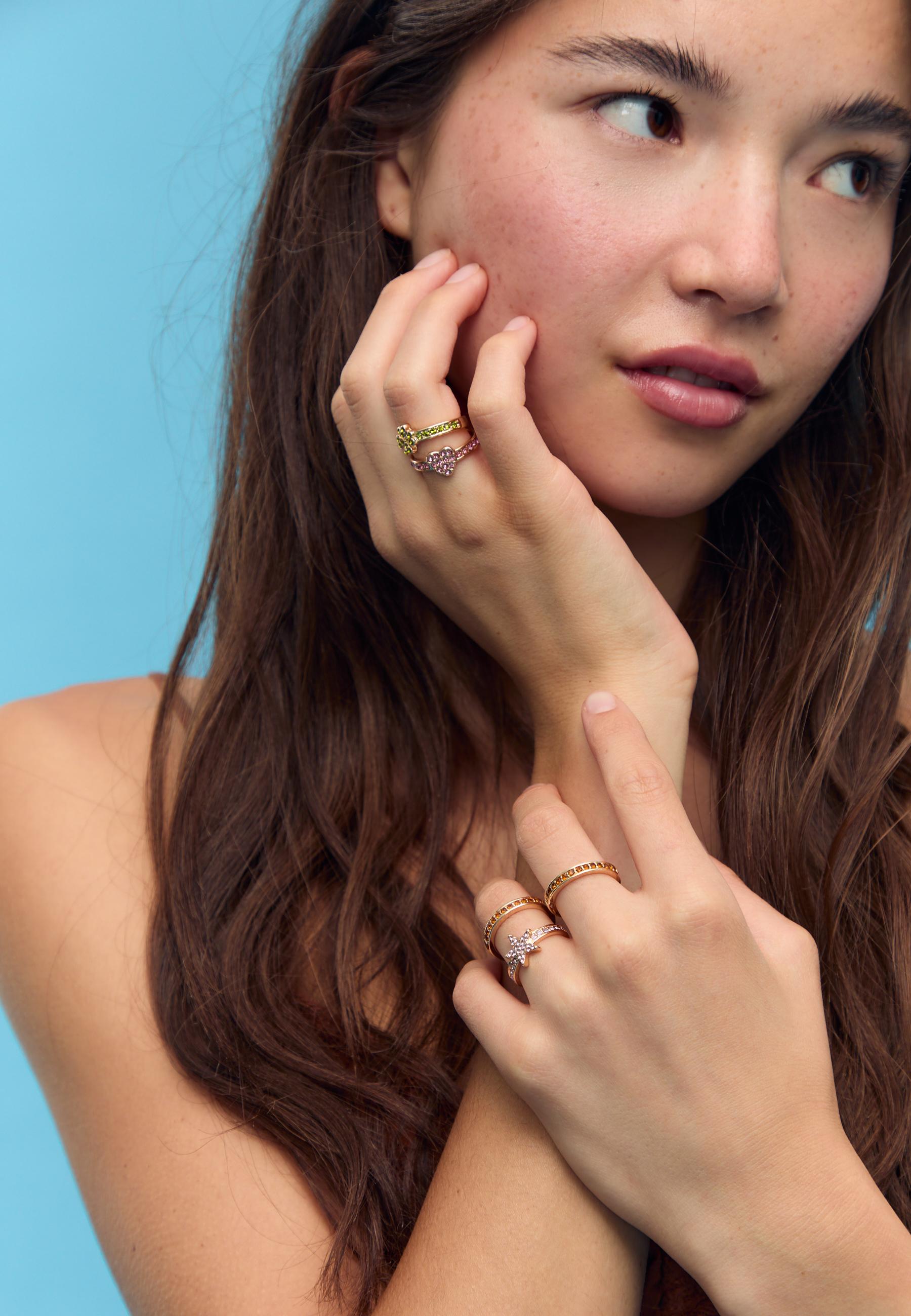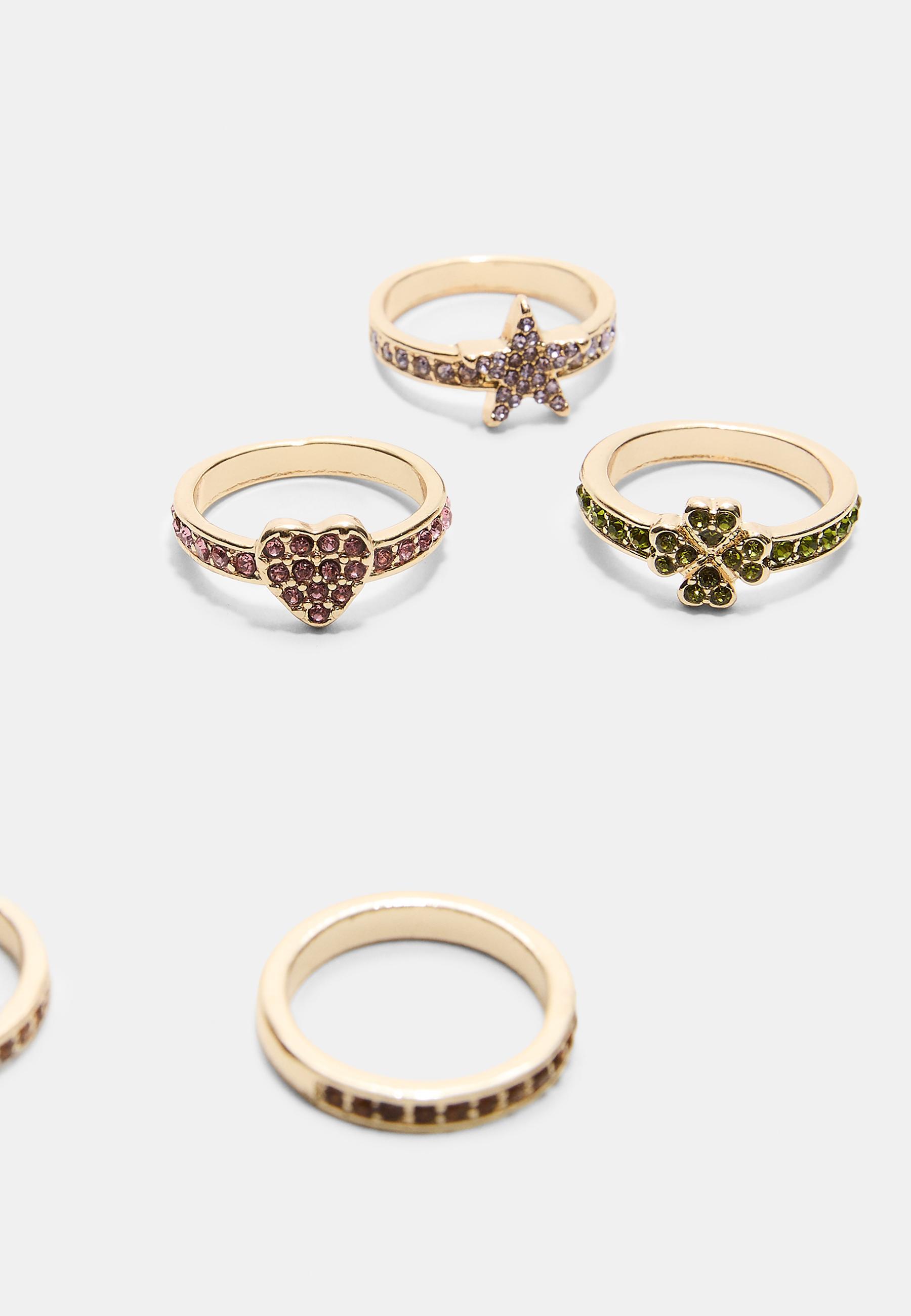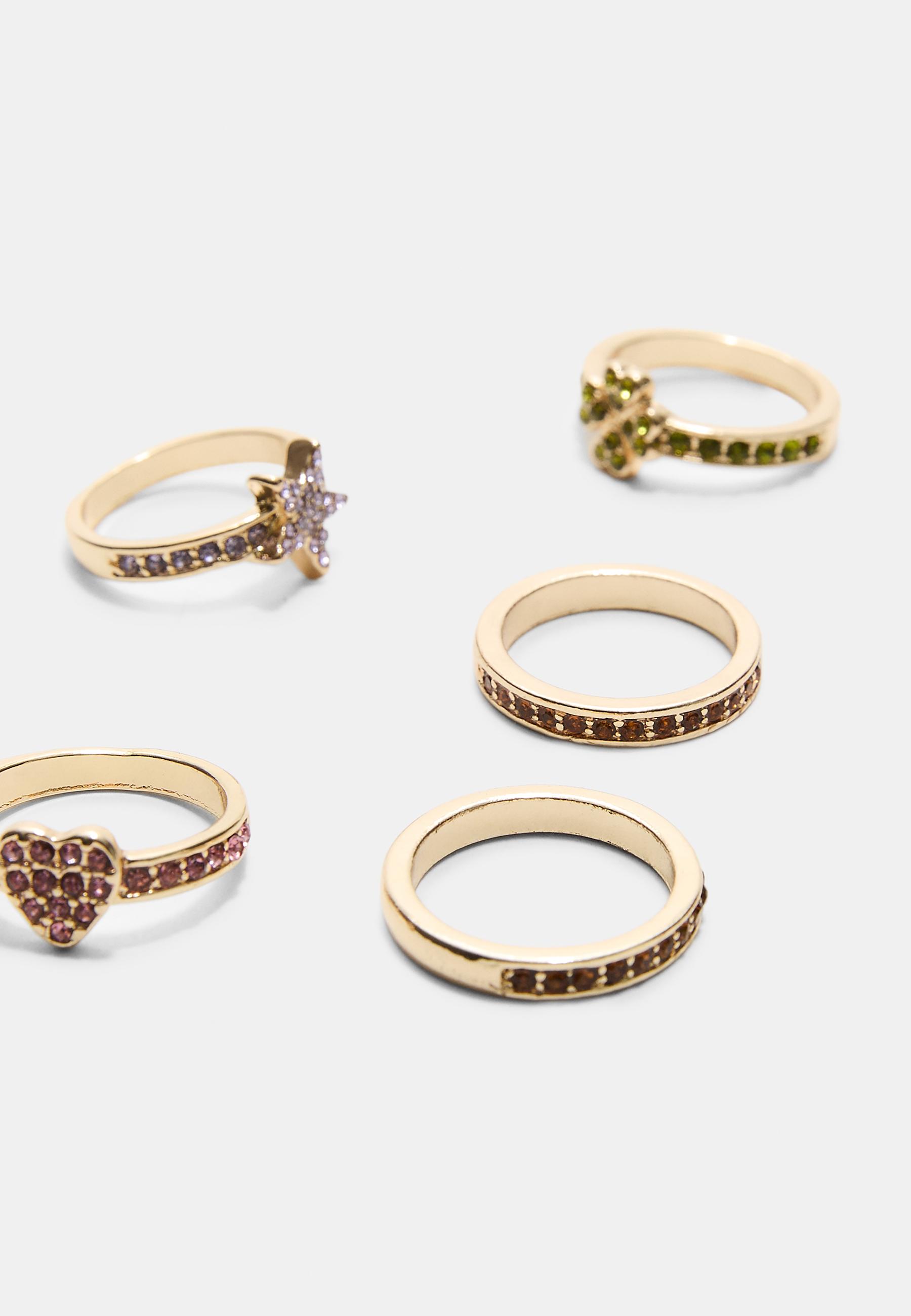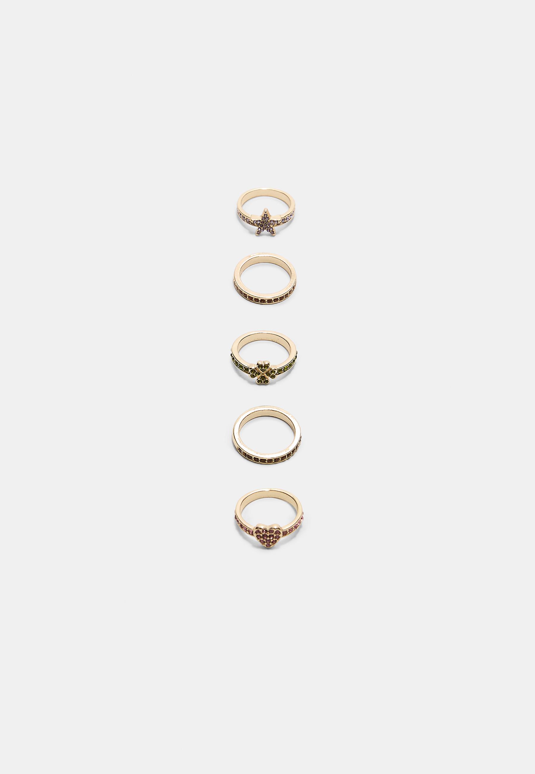 STRADIVARIUS Набор из 5 колец со стразами, золотой