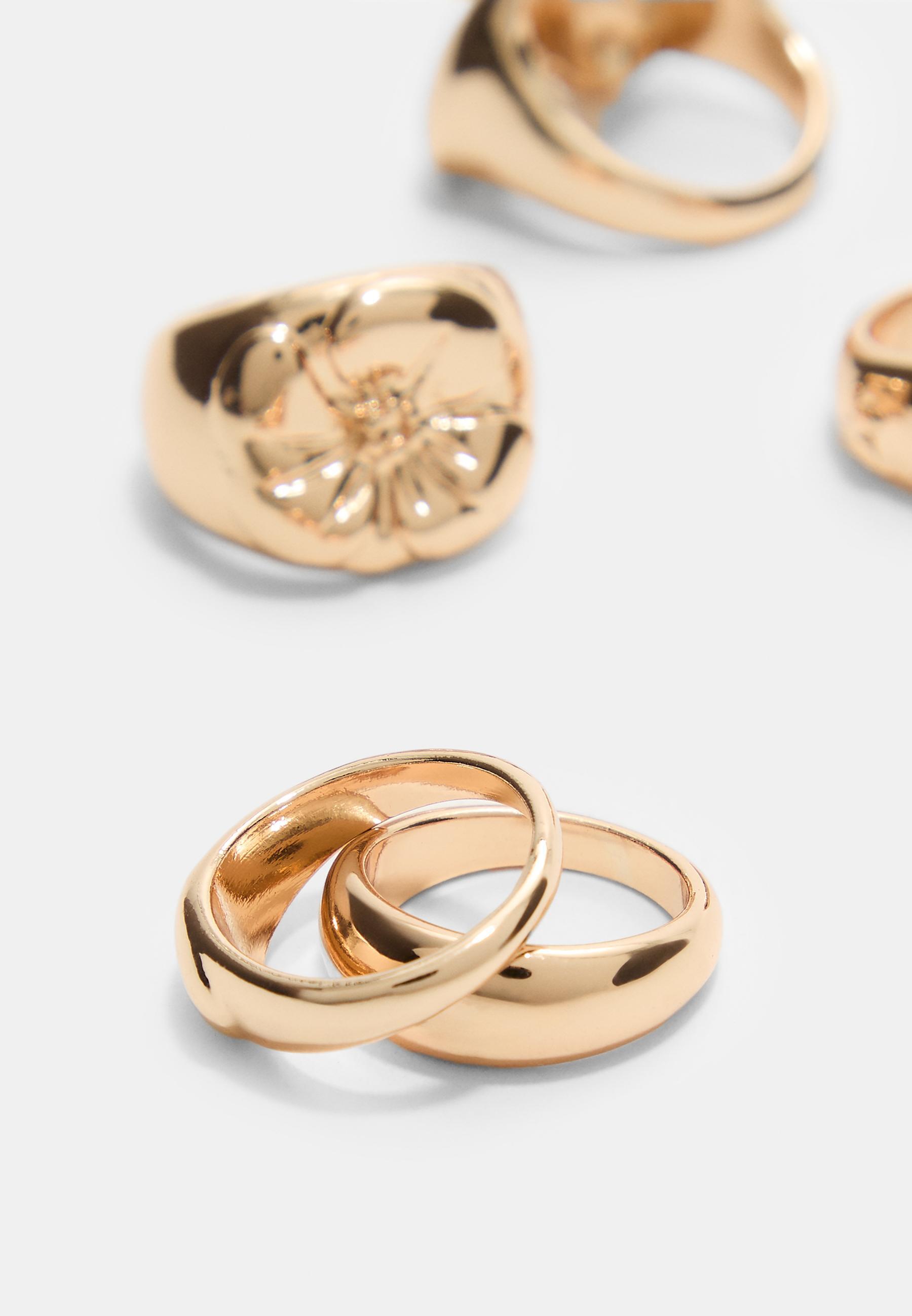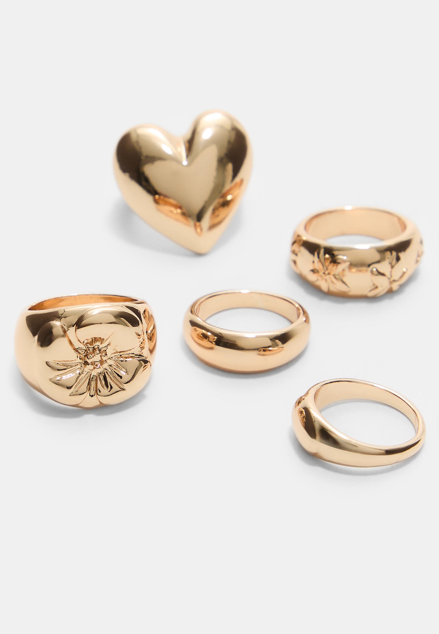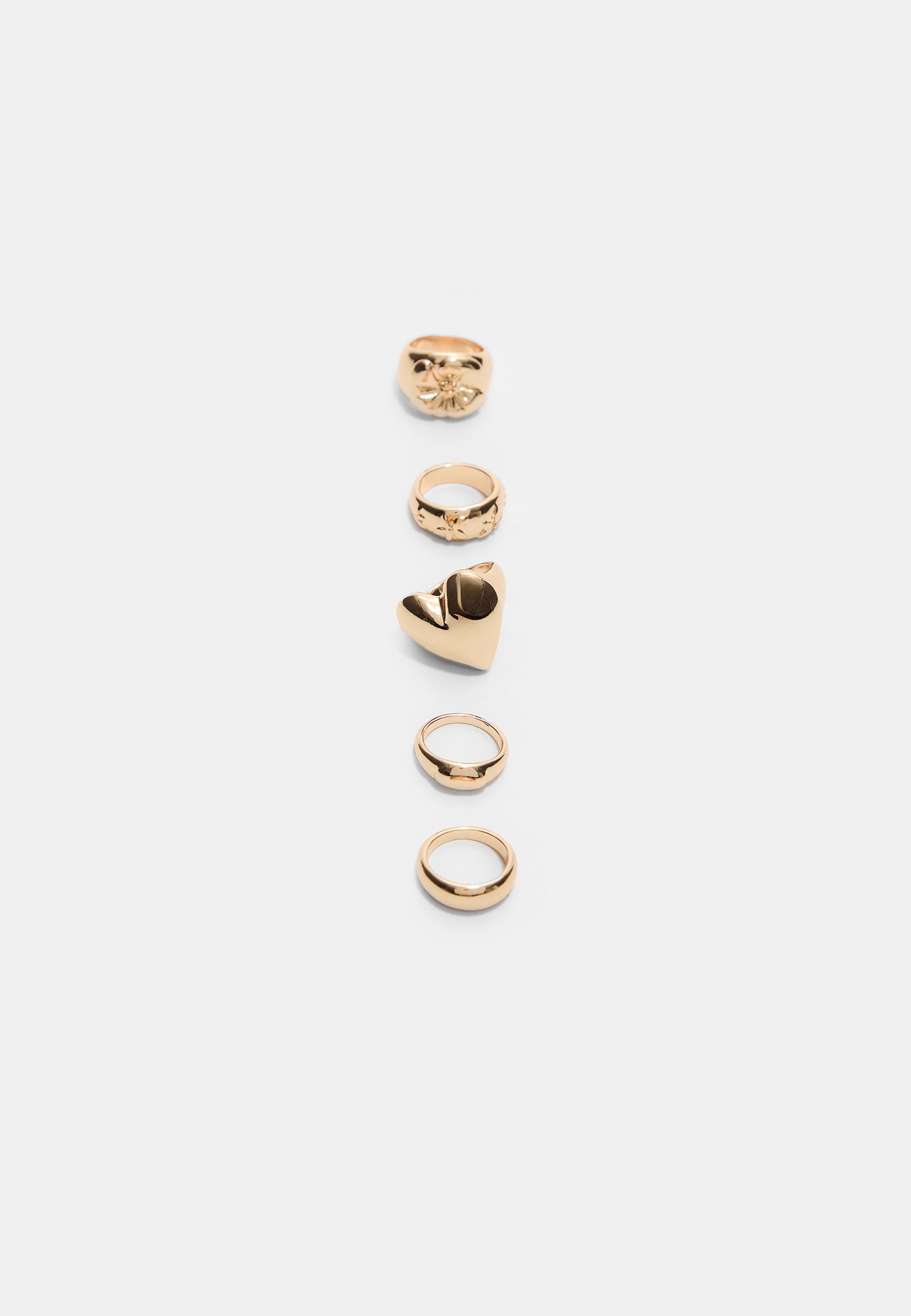 STRADIVARIUS Набор из 5 колец в виде цветов и сердец, золотой