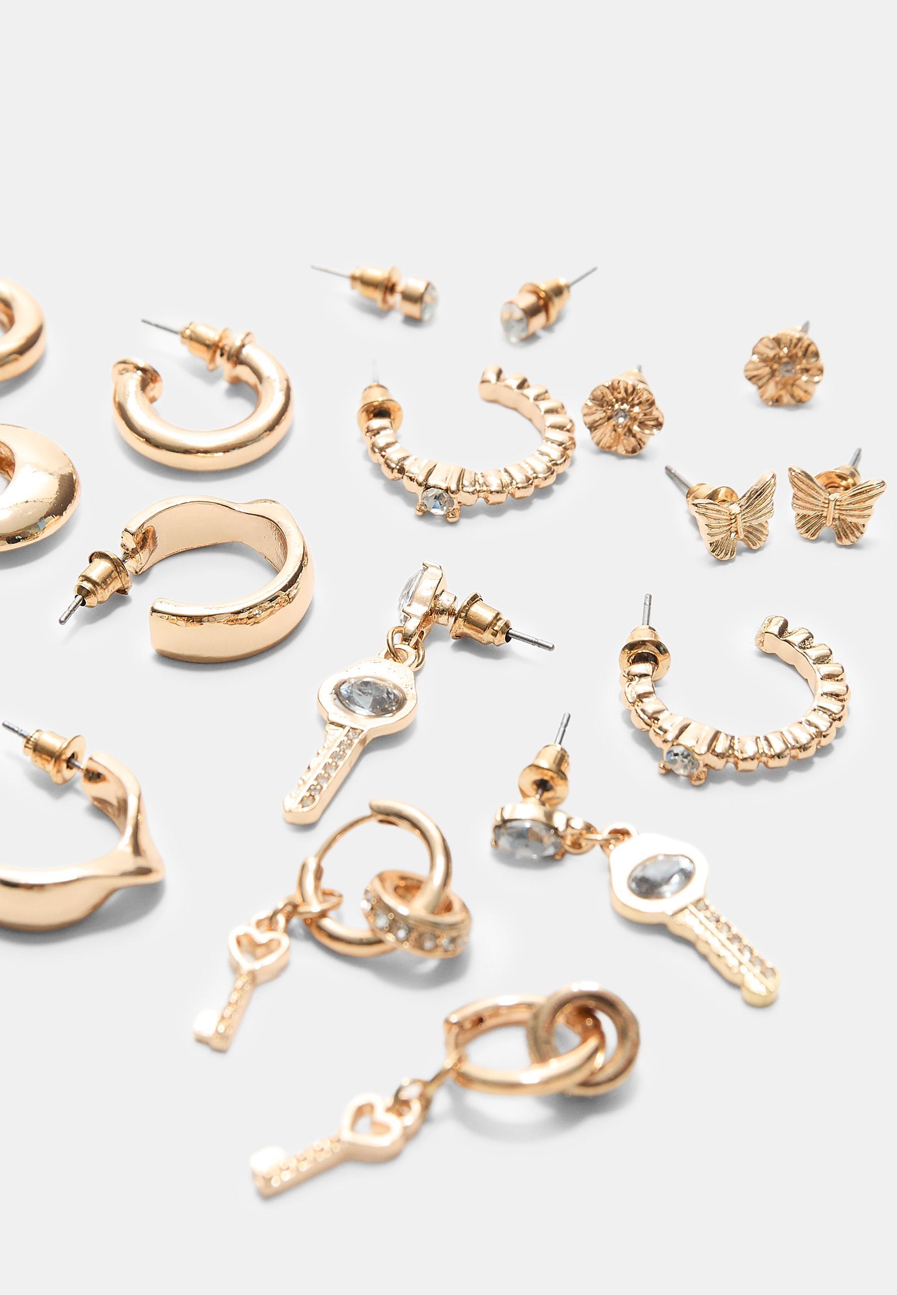 STRADIVARIUS Набор из 9 пар блестящих сережек, золотой