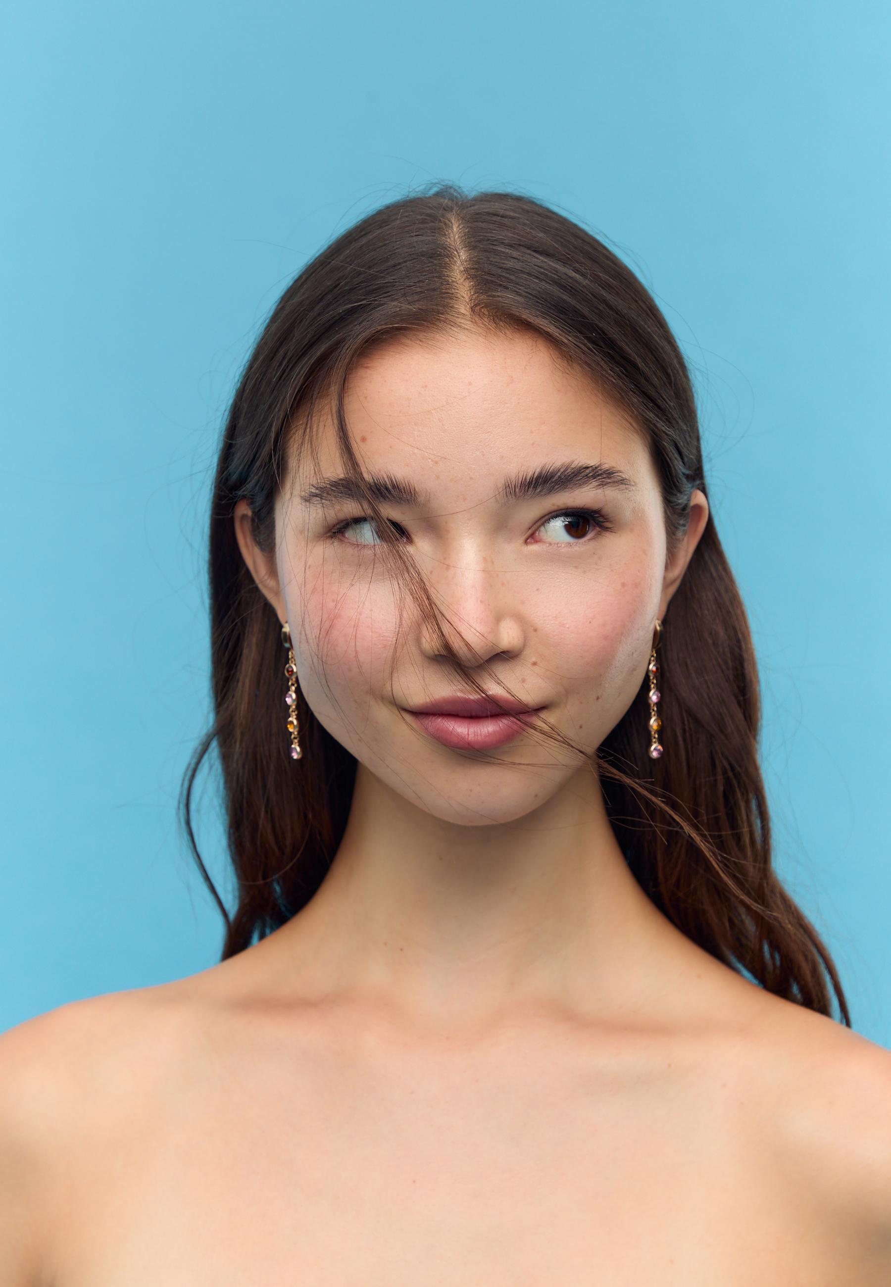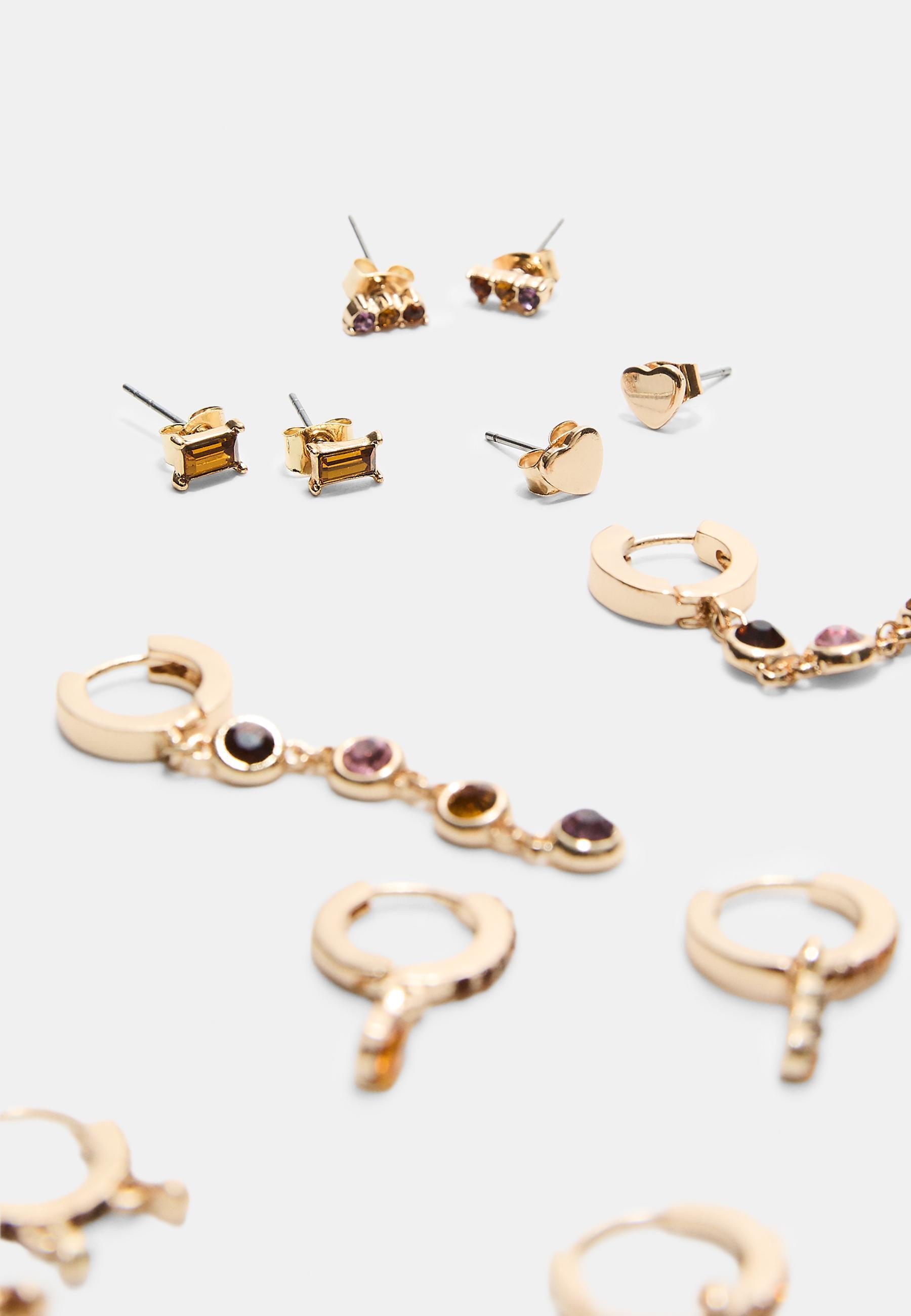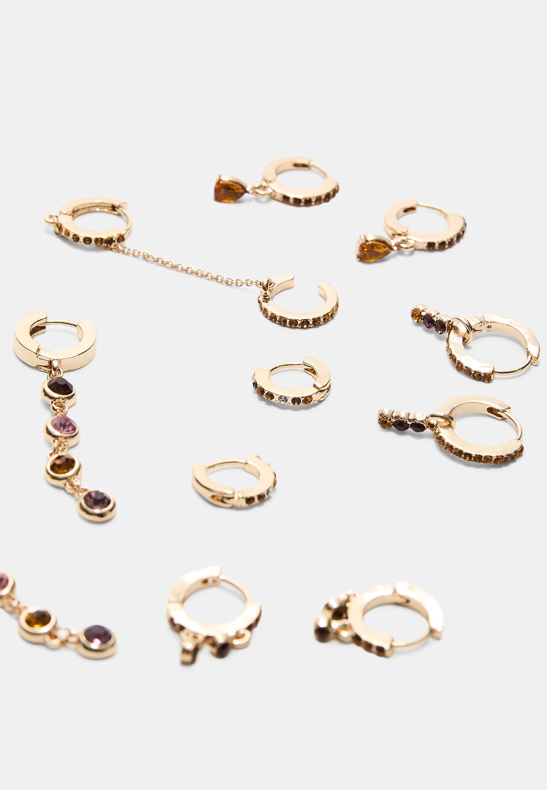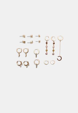 STRADIVARIUS Набор из 9 пар сережек со стразами, золотой
