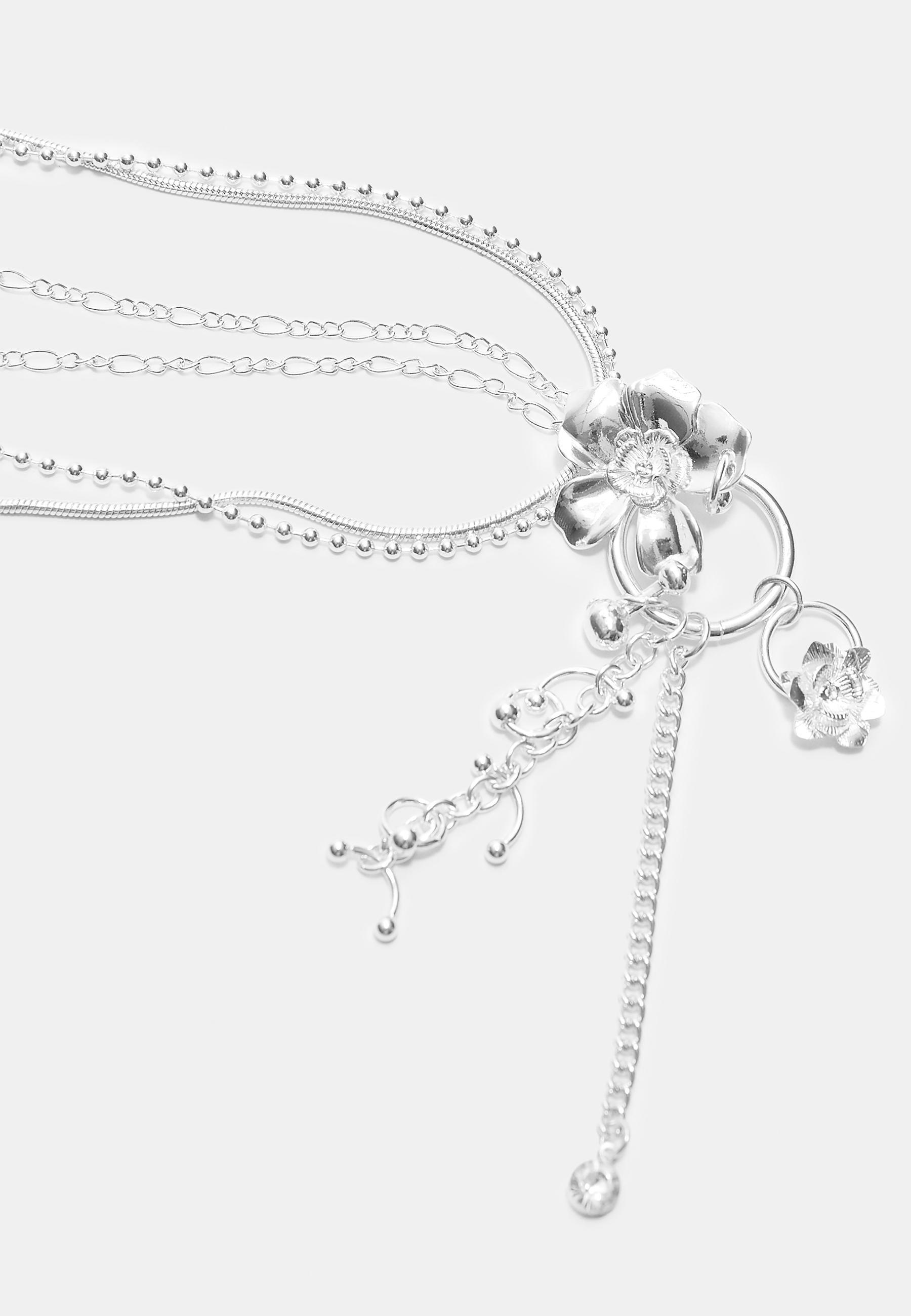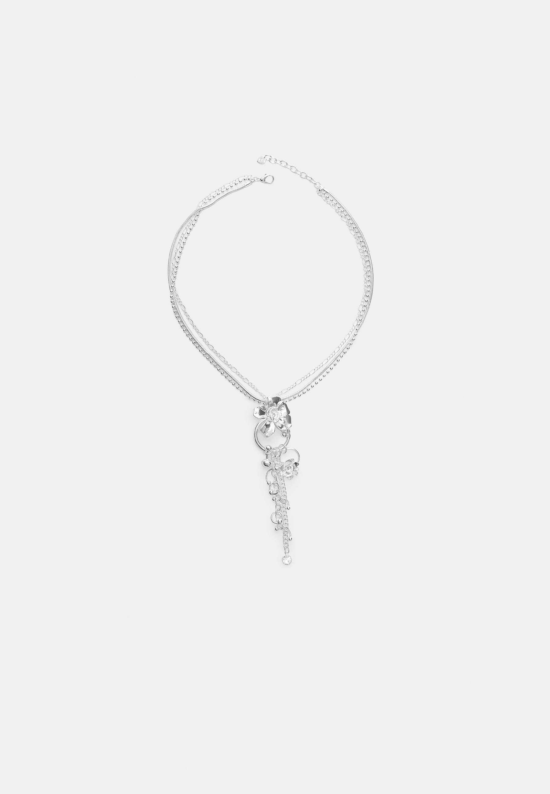 STRADIVARIUS Ожерелье из каскадных цветочных цепочек, серый