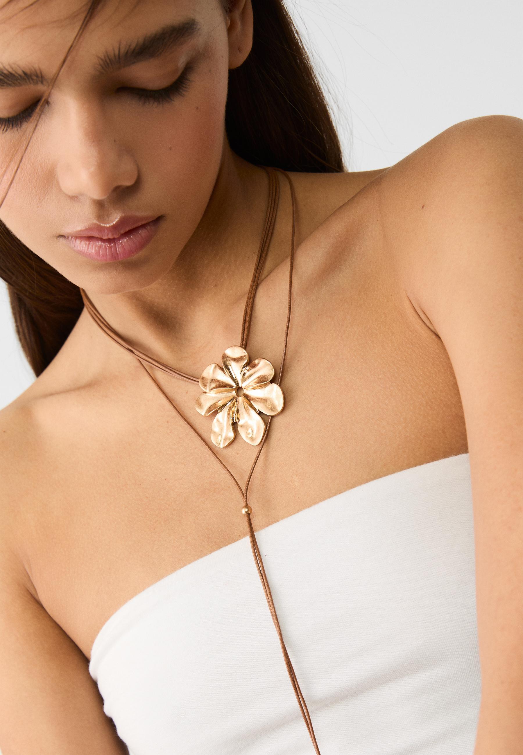 STRADIVARIUS Ожерелье с подвеской цветок, золотой