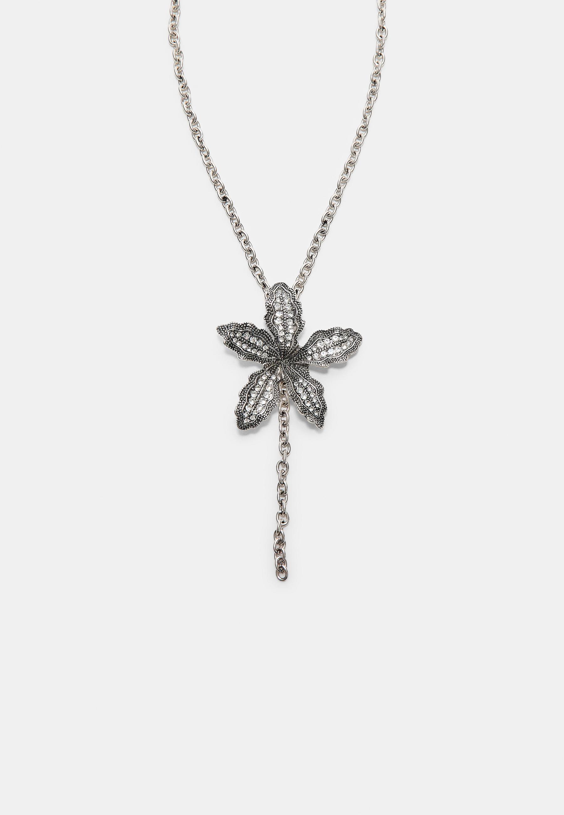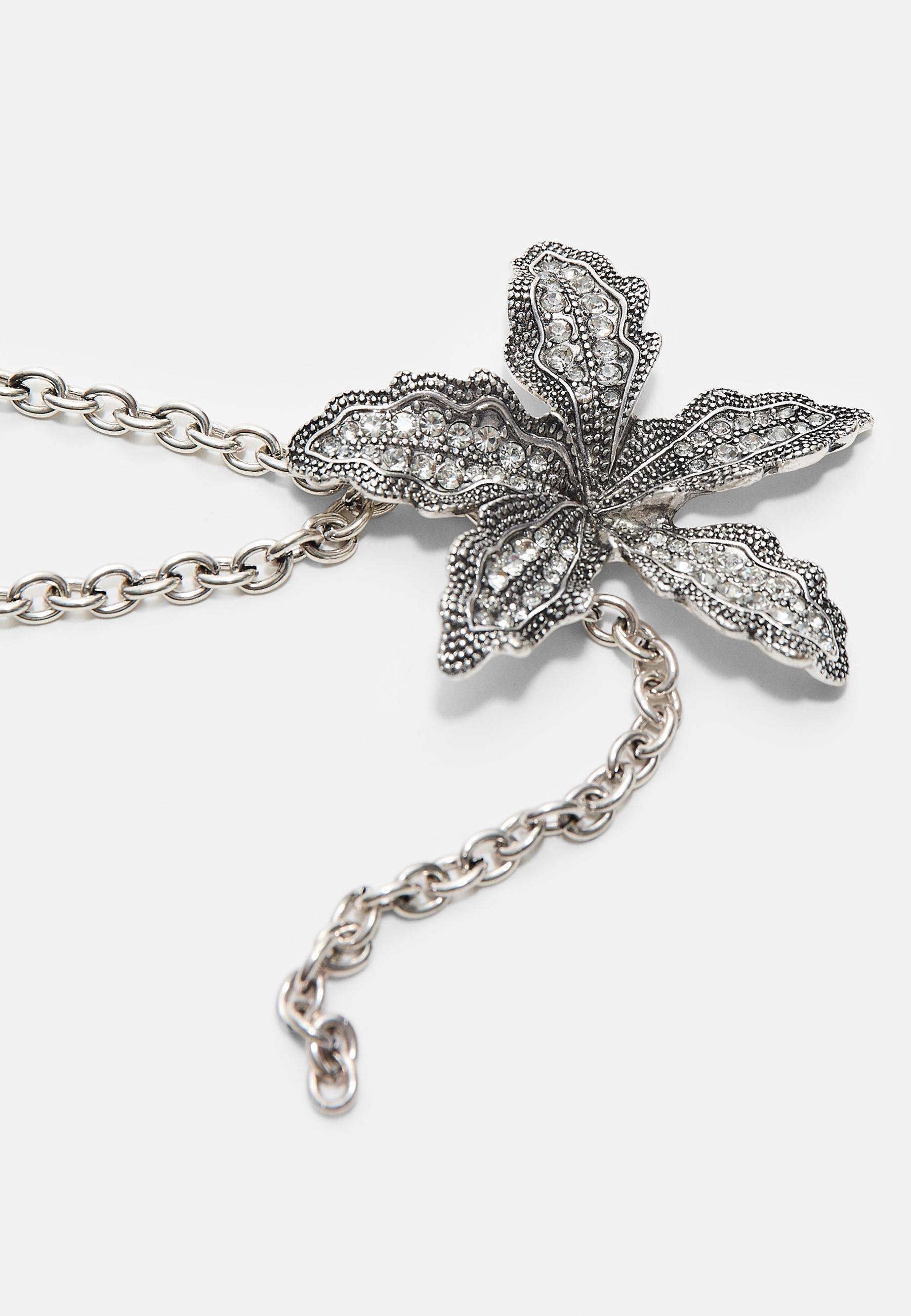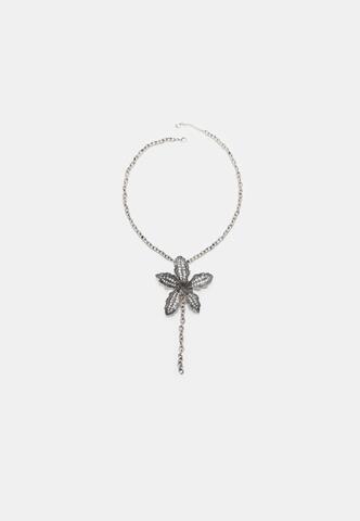 STRADIVARIUS Ожерелье цветок со стразами, серый