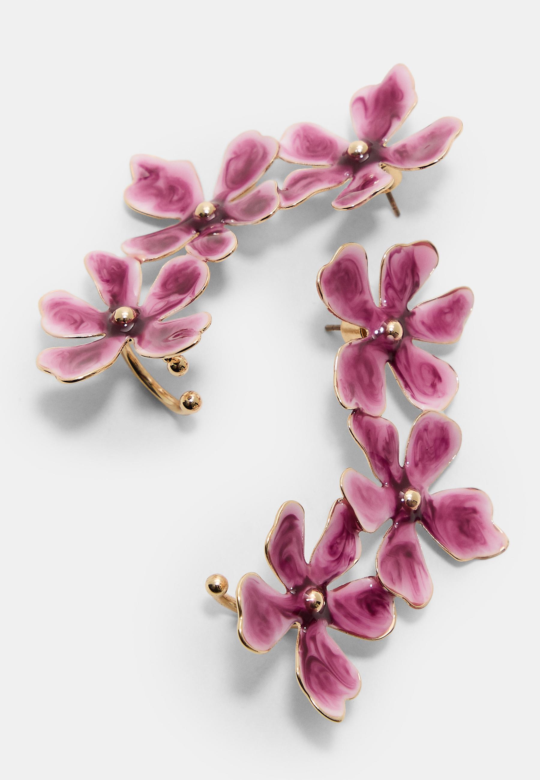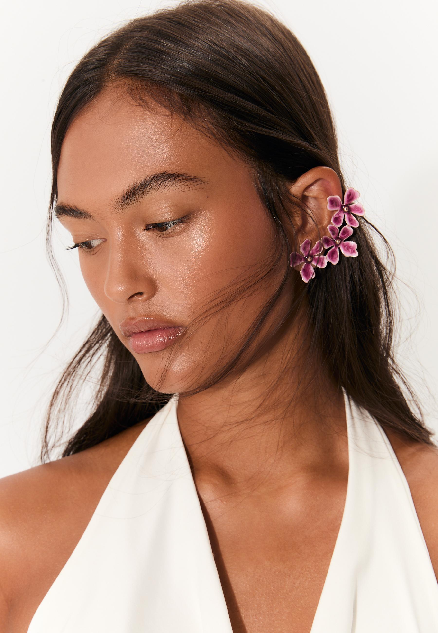 STRADIVARIUS Серьги-каффы с цветочным принтом, цвет фуксии