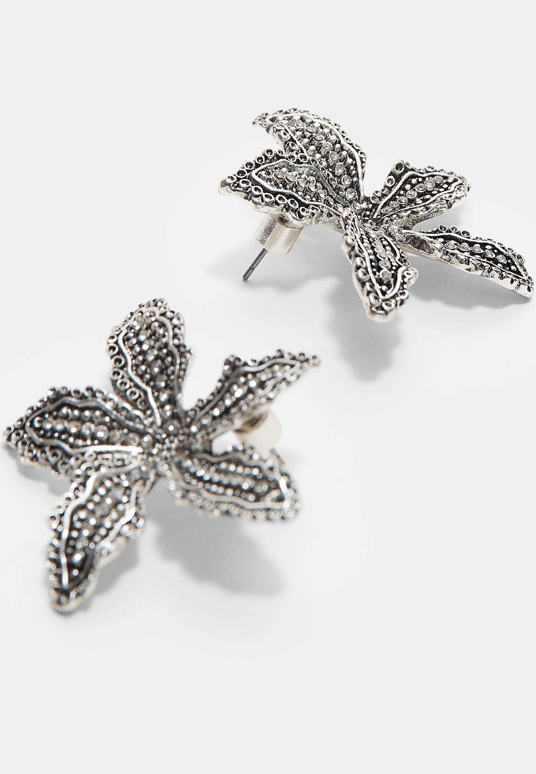STRADIVARIUS Серьги с цветочными стразами, серый
