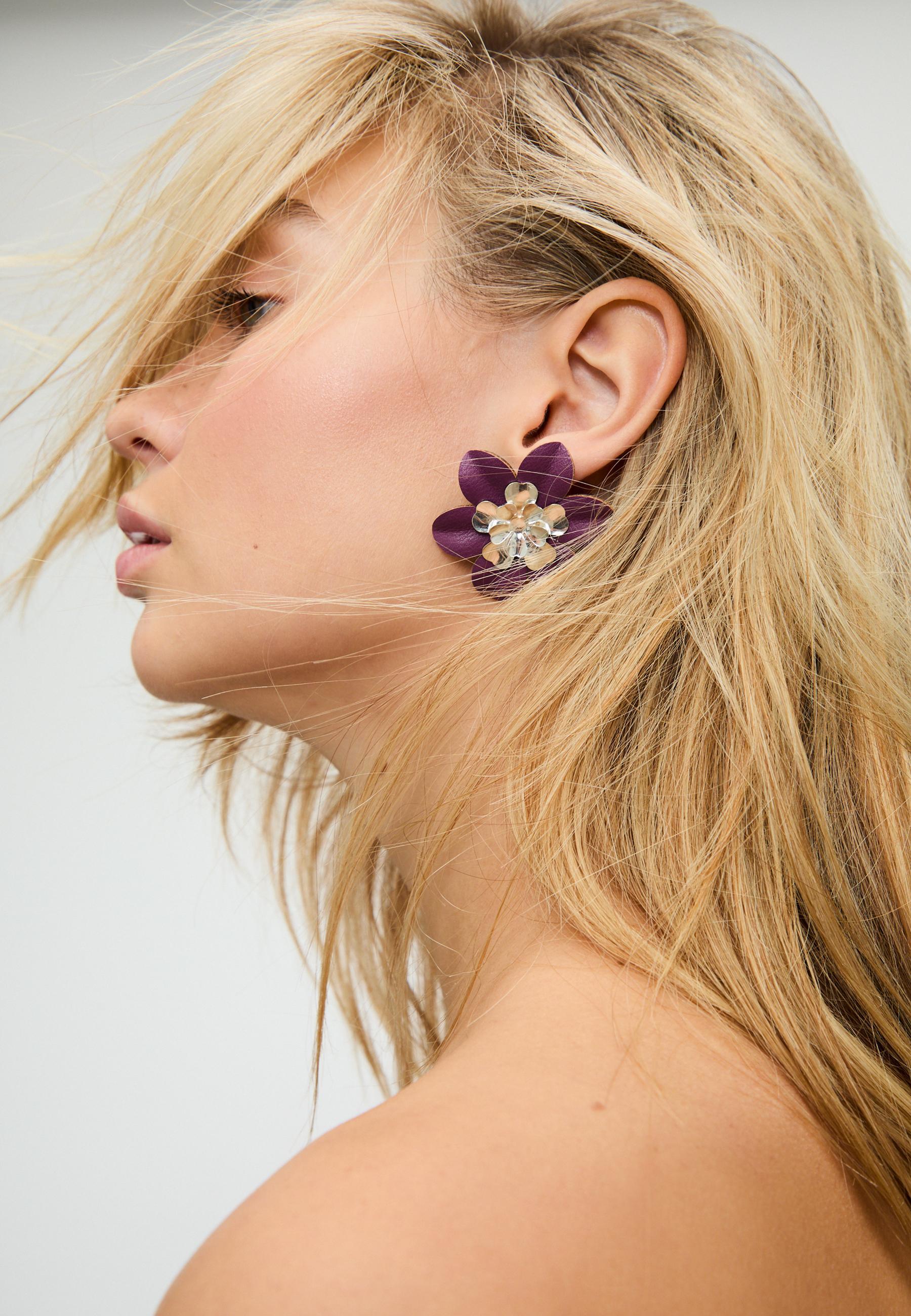 STRADIVARIUS Серьги-цветы с контрастным эффектом кожи, темно-фиолетовый