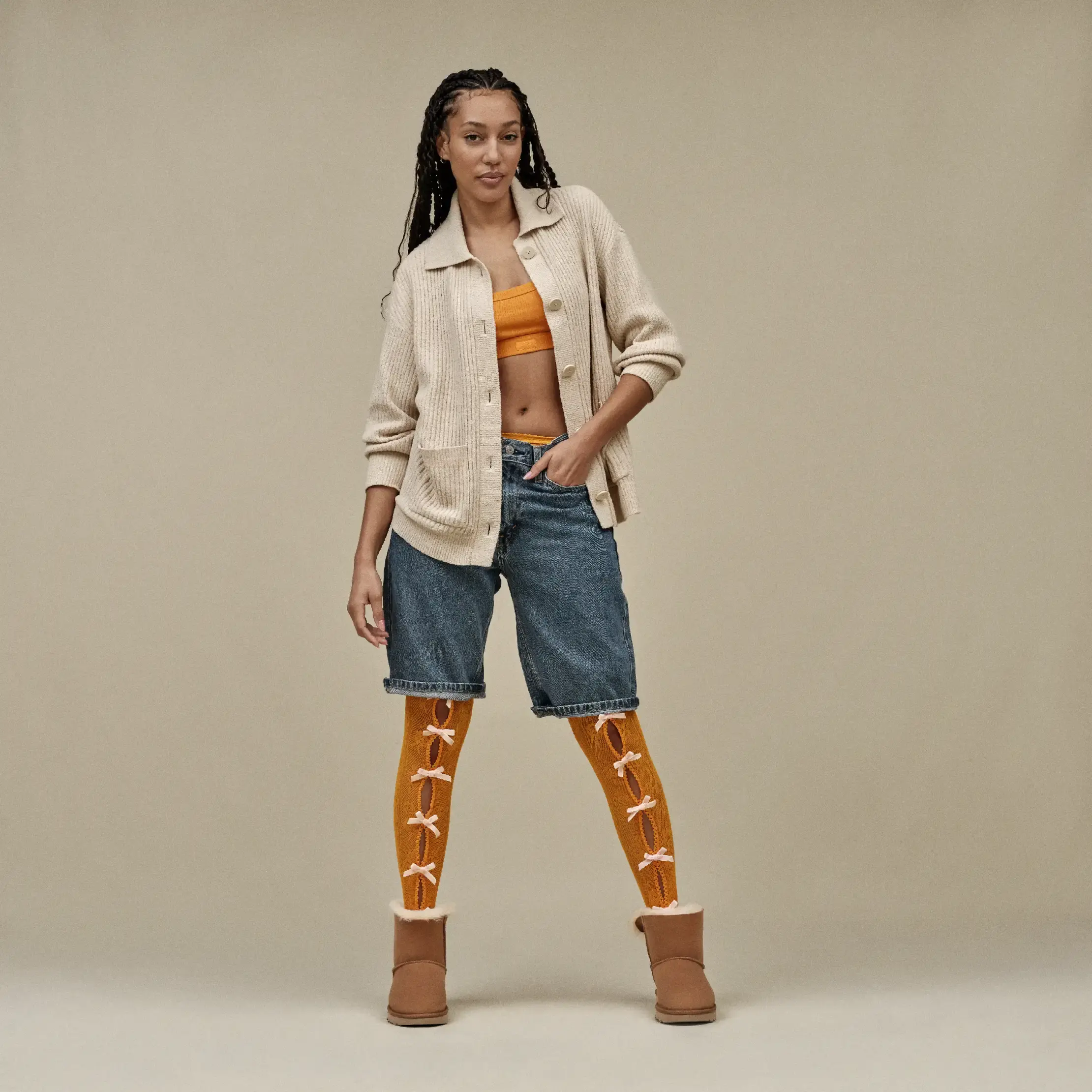 Мы добавили атласные бантики к нашей самой культовой модели, добавив ей нежности и женственности. Эти универсальные ботинки из мягкой овчины отличаются двумя новыми особенностями: водоотталкивающей обработкой и лёгкой подошвой, которая обеспечивает дополнительную амортизацию, прочность и сцепление. Они прекрасно сочетаются практически с любой одеждой, от спортивного стиля до струящихся платьев.
