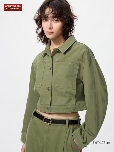 UNIQLO Короткая джинсовая куртка, оливково-зеленый