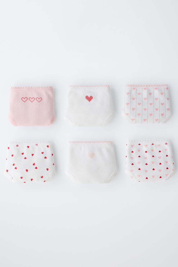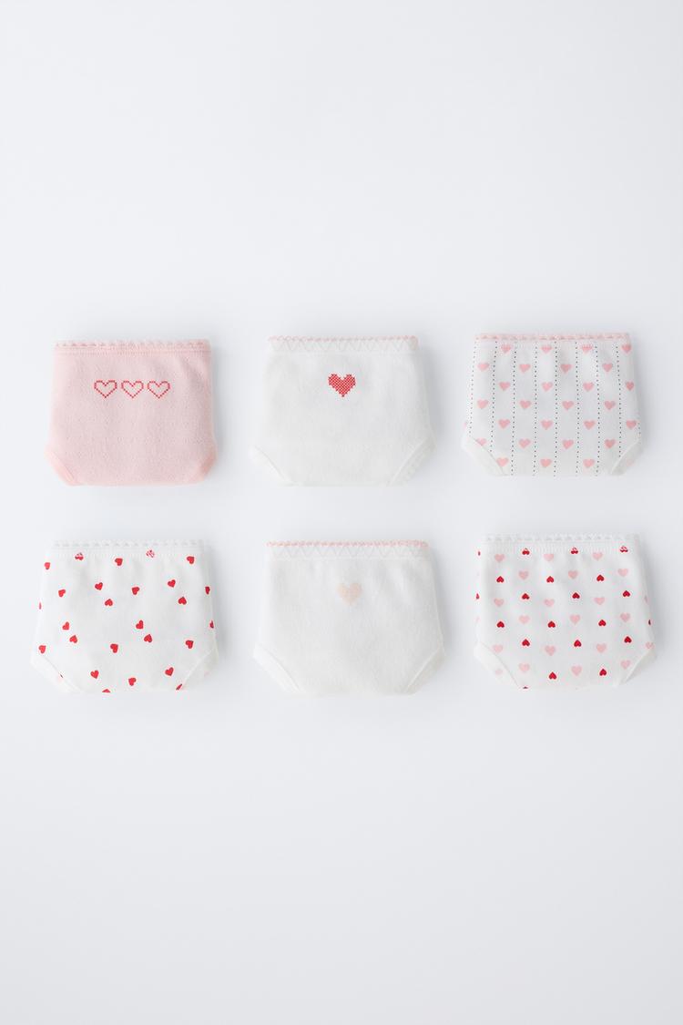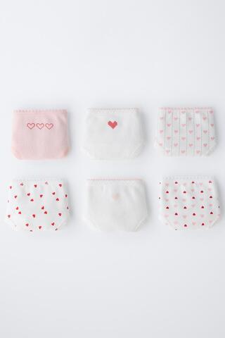 Набор из шести трусов с эластичным поясом. Принт в виде сердец.