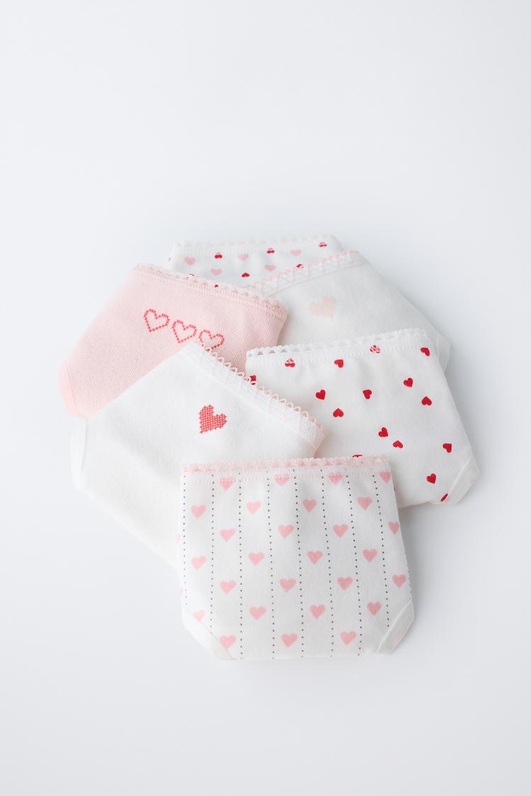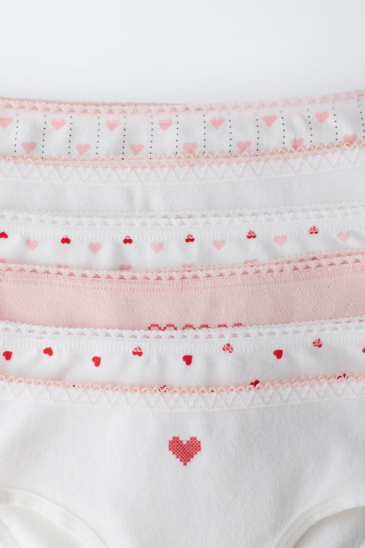 ZARA АБОР ИЗ ШЕСТИ ТРУСОВ С ПРИНТОМ «СЕРДЦА», ЭКРЮ