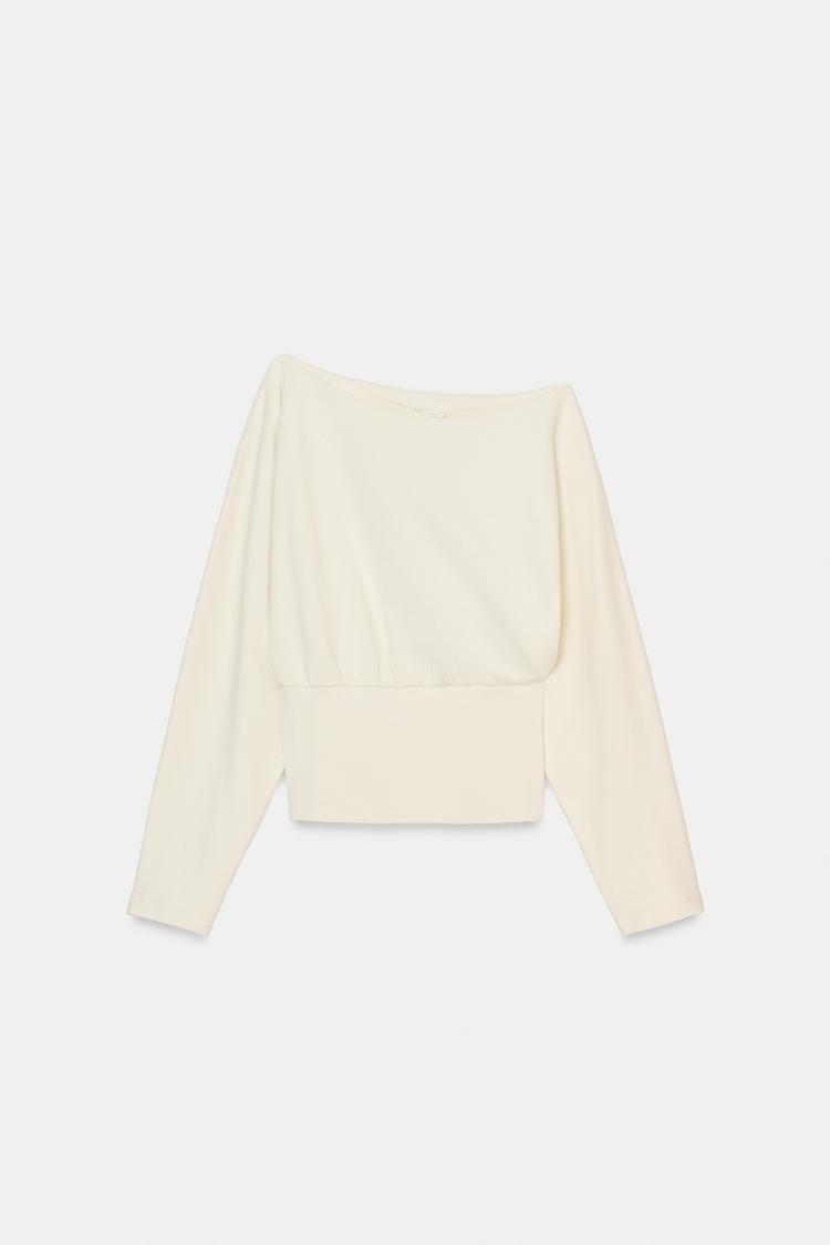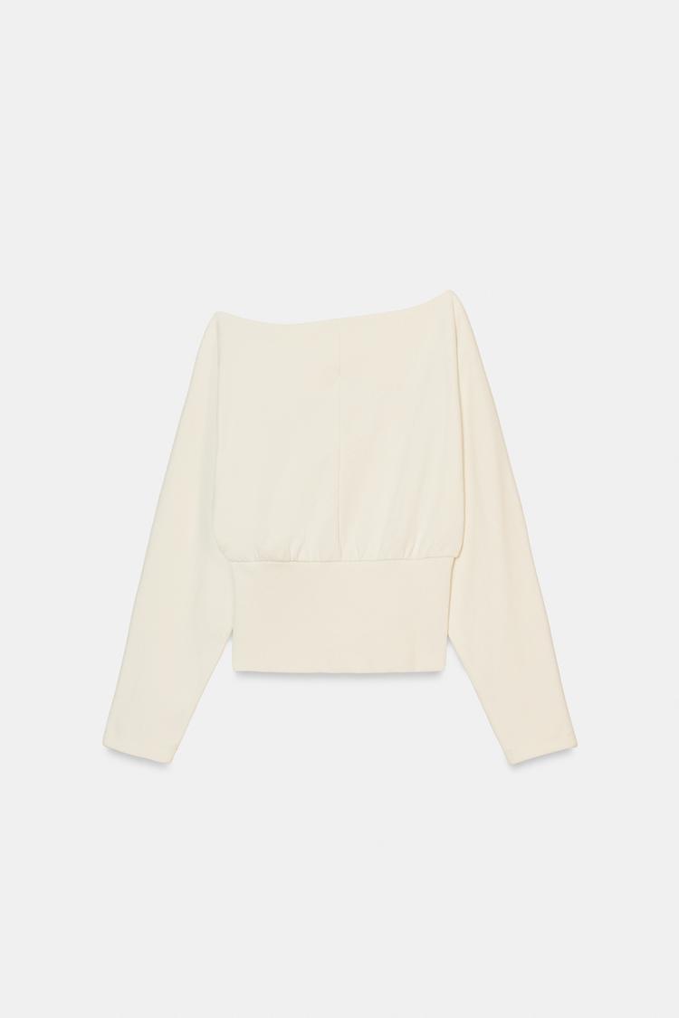 ZARA АСИММЕТРИЧНАЯ ХЛОПКОВАЯ ТОЛСТОВКА, ЭКРЮ