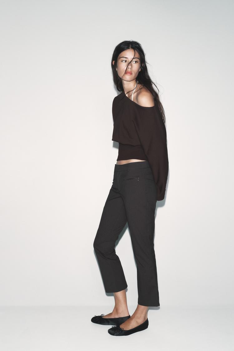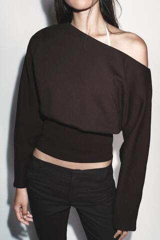 ZARA АСИММЕТРИЧНАЯ ХЛОПКОВАЯ ТОЛСТОВКА, ШОКОЛАДНЫЙ