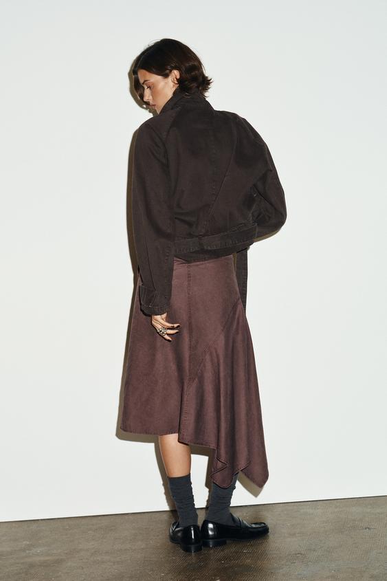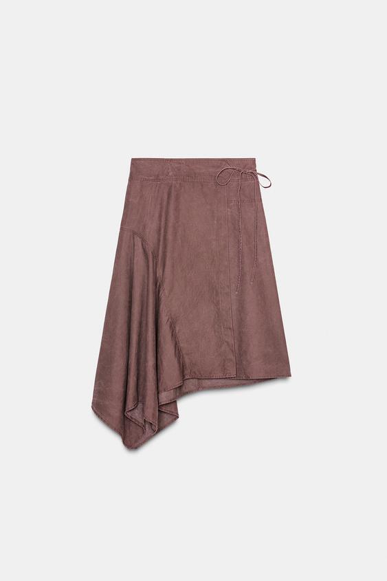 ZARA АСИММЕТРИЧНАЯ ЮБКА-ПАРЕО С ЭФФЕКТОМ ПОСТИРАННОСТИ, ТЕМНО-БОРДОВЫЙ